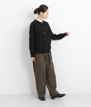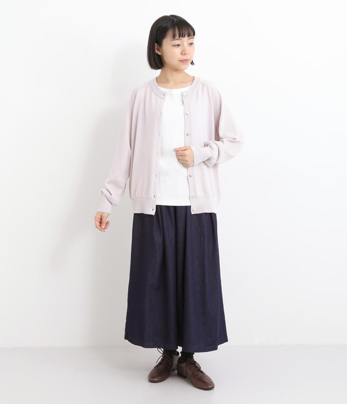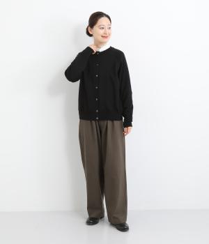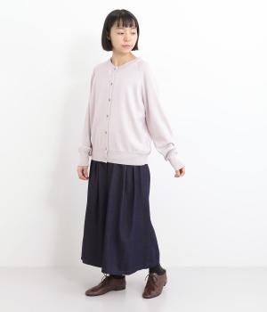 クラシカルなシルエットが魅力的なクルーネックのカーディガン。ストンとストレートな形はエレガントさを演出してくれます。全体的にゆとりのあるつくりで、重ね着にも◎。様々なシチュエーションで使用できる定番アイテムです。