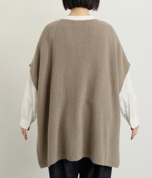 ほどよいゆとりを持たせたワイドなかたちで、体のラインを拾いにくいデザインです。肩を落としたポンチョ風のシルエットが自然な丸みをつくり、女性らしい印象をつくります。サイドスリットが抜け感を演出し、カジュアルにもきれいめにも合わせやすい万能な一枚です。