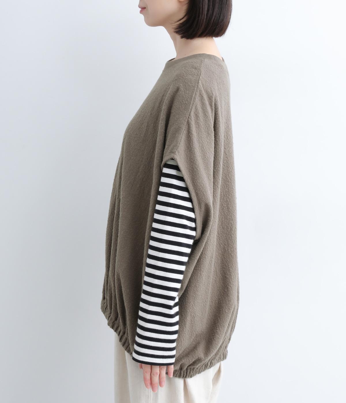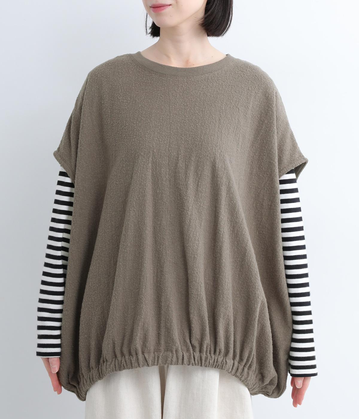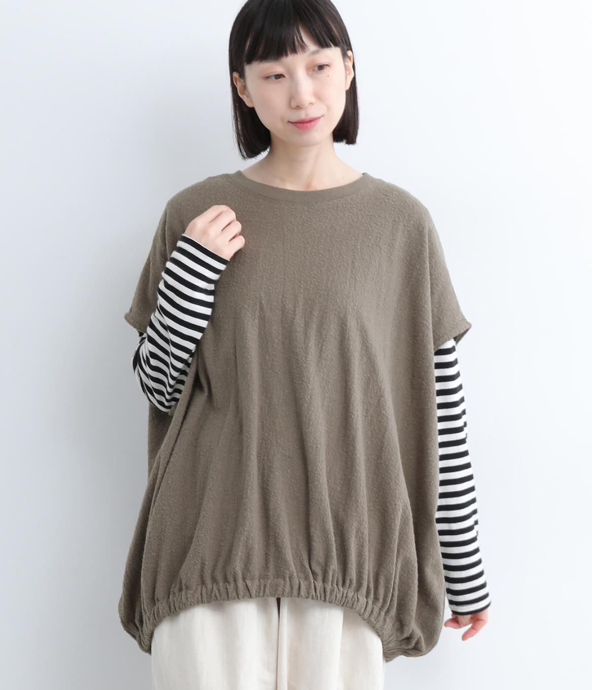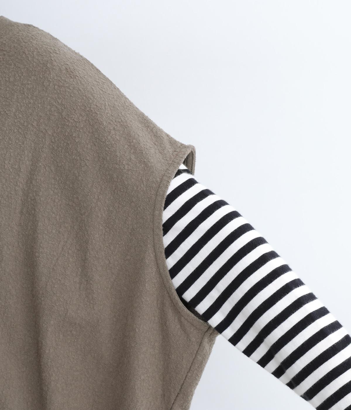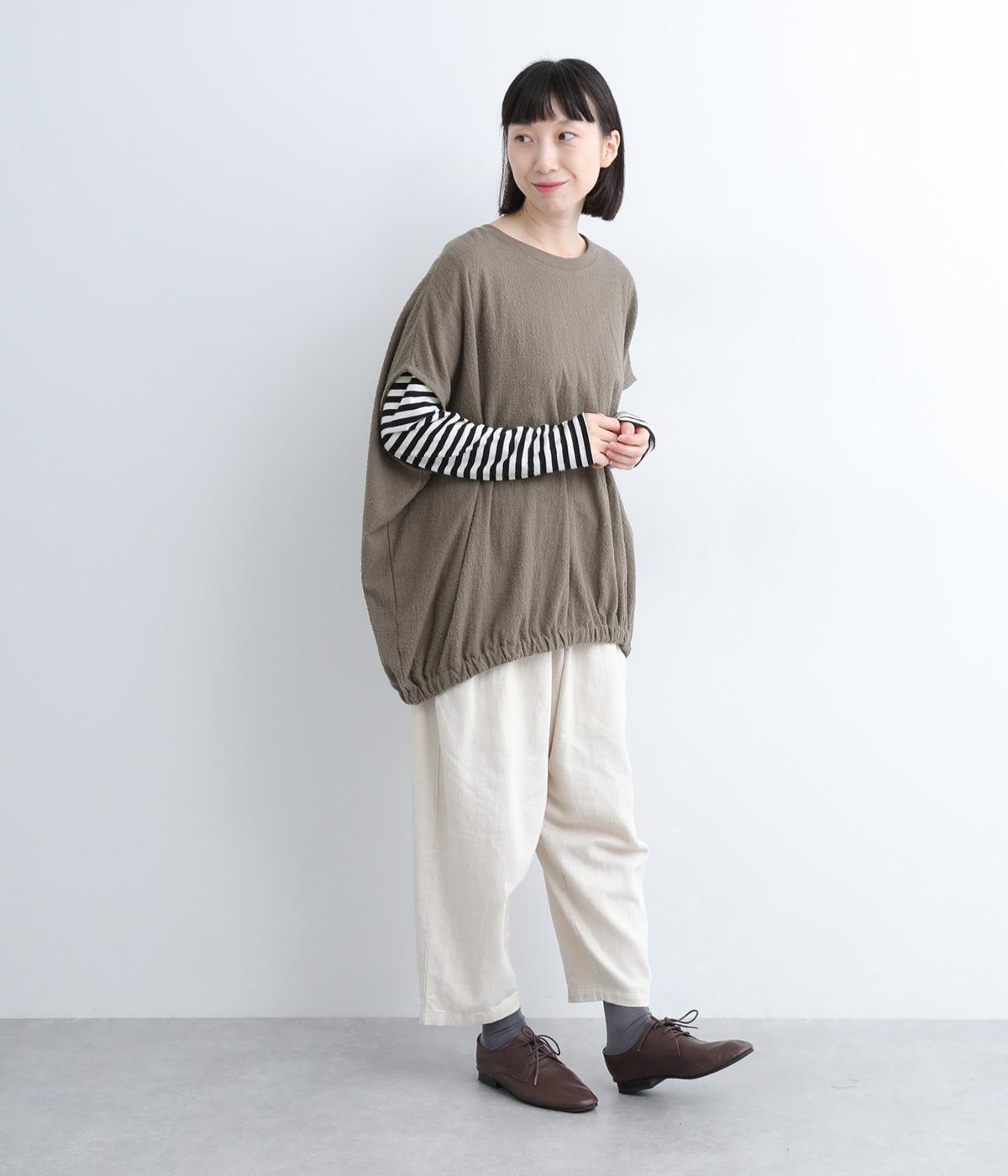 体を包み込むようにたっぷりとしたシルエットが目を惹きます。ゴム入りの裾がきゅっとメリハリをつけて立体感のあるラインを演出。着こなしのメインになるようなベストで、一枚持っているとスタイルチェンジに重宝します。