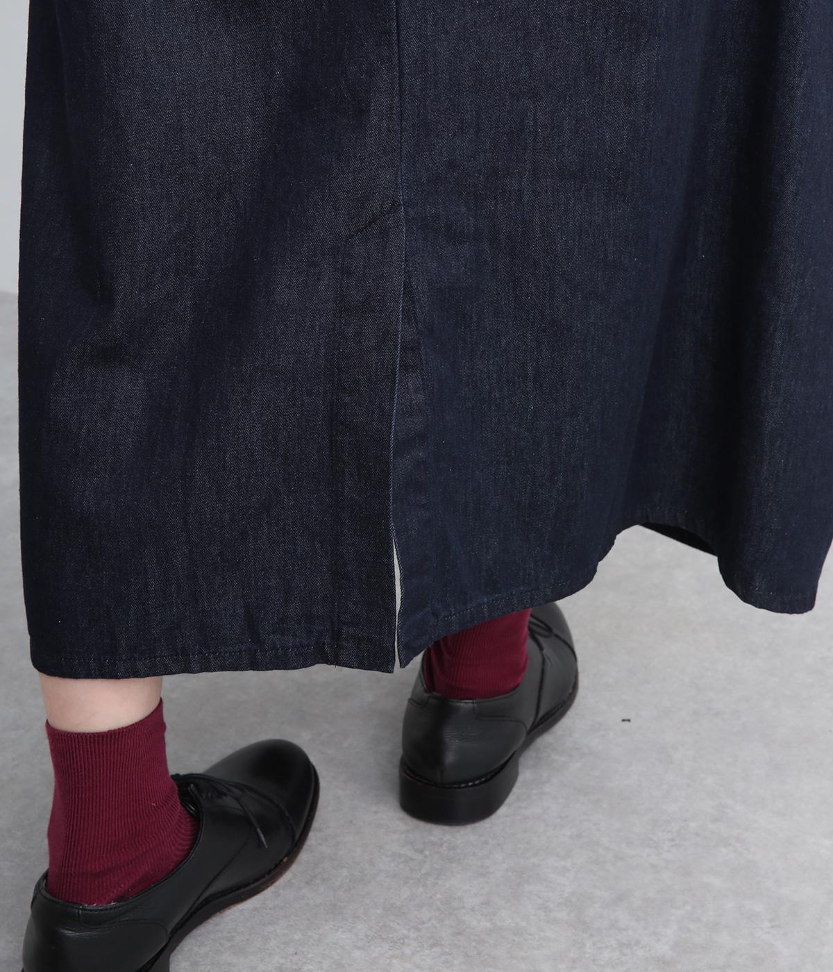 やわらかく肌なじみのいいライトオンスのデニム地を使用。デニムながら重すぎず軽やかな着心地で、落ち感もよくシルエットを美しく見せてくれます。