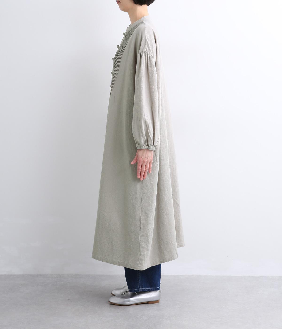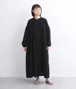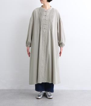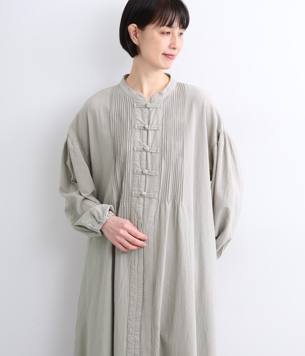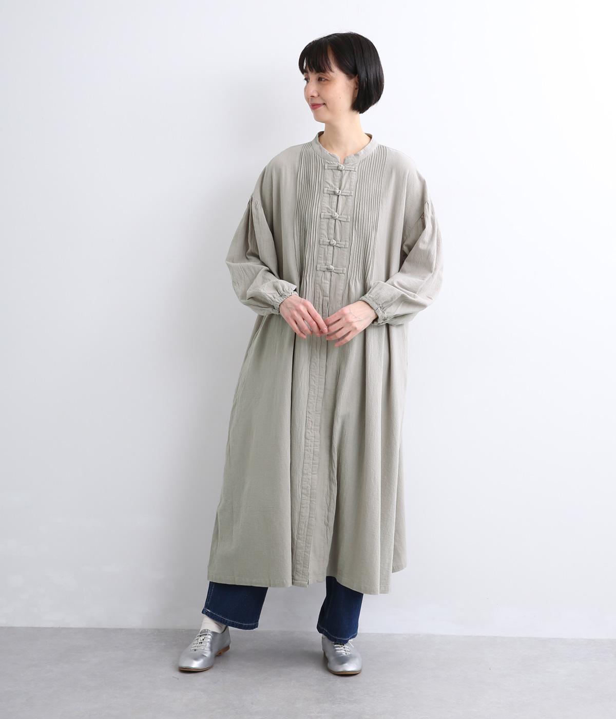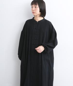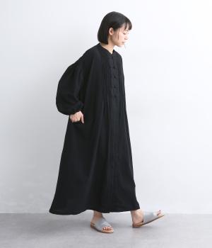 チャイナボタンと繊細なピンタックがアクセントのワンピースです。肩を落としたドルマンスリーブで身体のラインをやさしく包み、ゆったりとしたシルエットに。袖口はゴム仕様でさりげない丸みを添え、ほどよく存在感のあるデザインが装いに変化をもたらします。