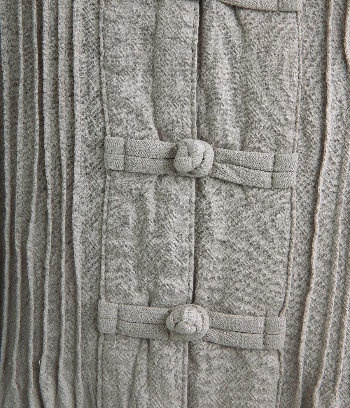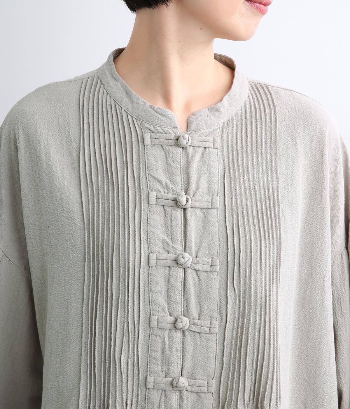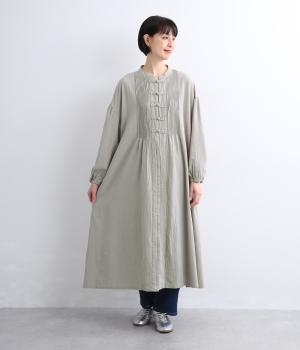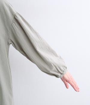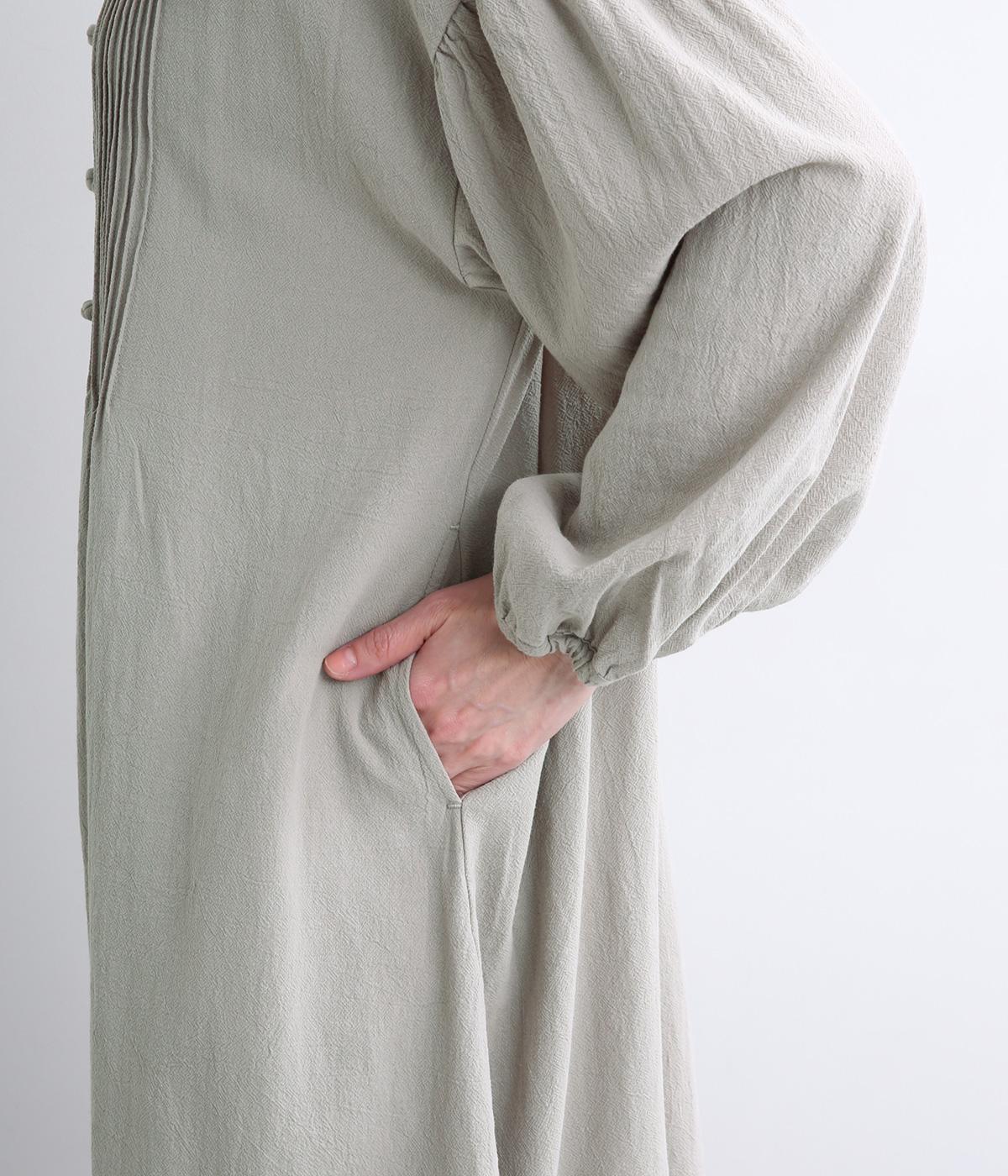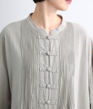 チャイナボタンと繊細なピンタックがアクセントのワンピースです。肩を落としたドルマンスリーブで身体のラインをやさしく包み、ゆったりとしたシルエットに。袖口はゴム仕様でさりげない丸みを添え、ほどよく存在感のあるデザインが装いに変化をもたらします。