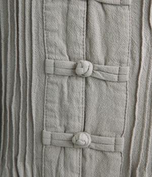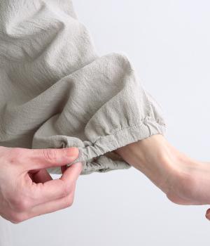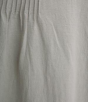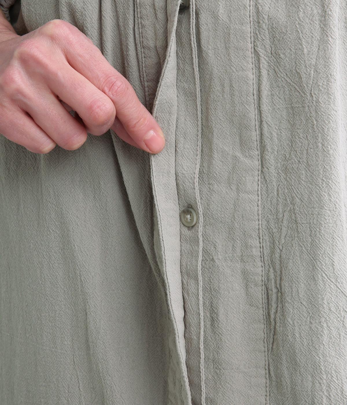 シボ感のある表面にほどよいハリを備えたコットンオックス生地を使用しています。ワッシャー加工をほどこしたニュアンスのあるシワ感が魅力です。さらりとした肌ざわりで、清涼感のある風合いに仕上げました。
