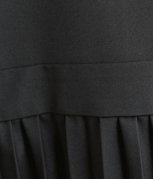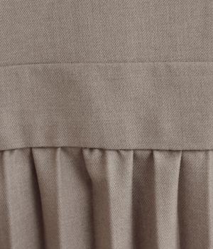 レーヨンを混紡したなめらかなドレープ性のある生地です。適度なハリ感を持ちあわせ、プリーツの縦ラインを美しくキープ。一枚でも透けにくく、安心して着用できます。