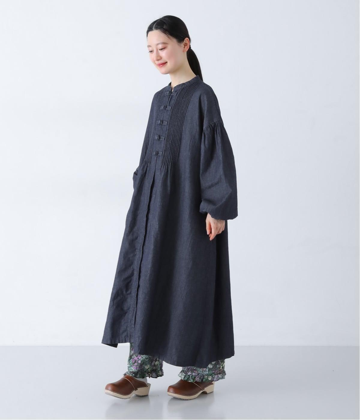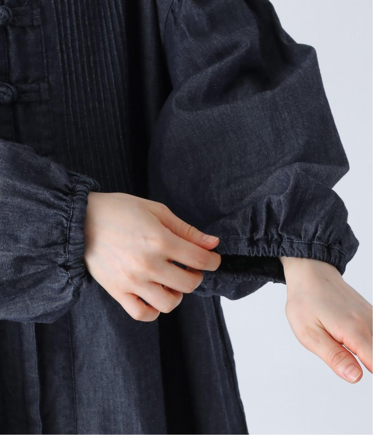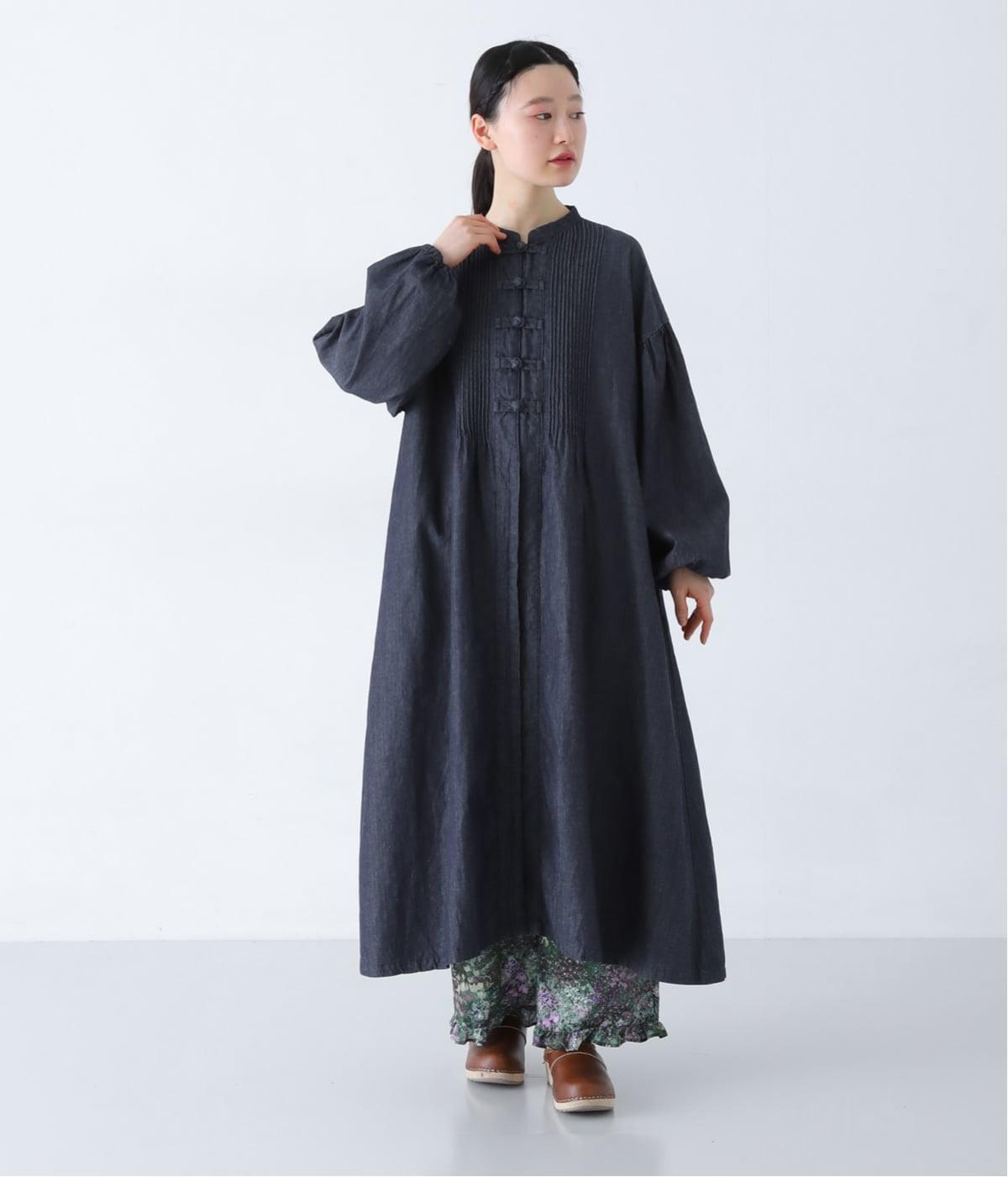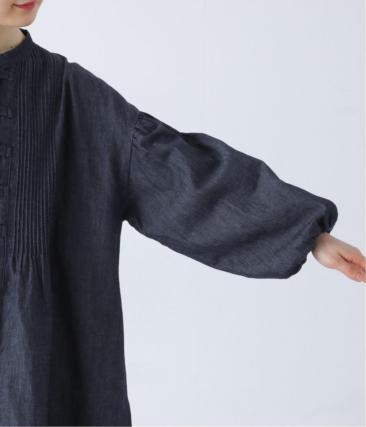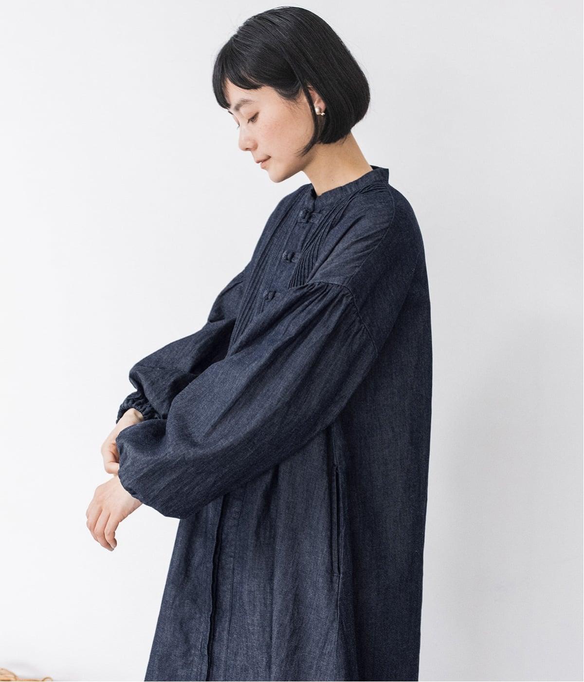チャイナボタンや繊細なピンタックが目を惹くコットンリネンデニムのブラウスとワンピース。
