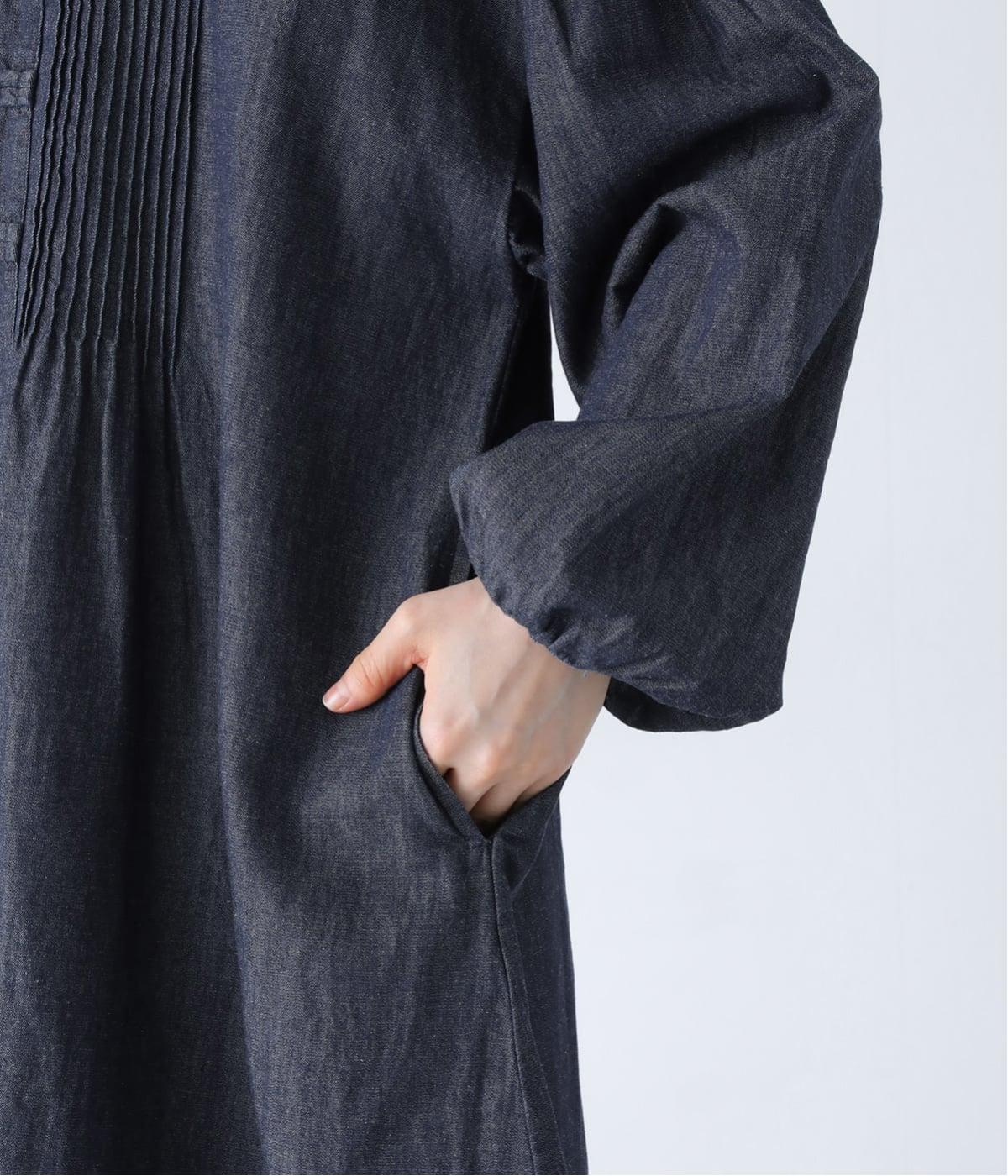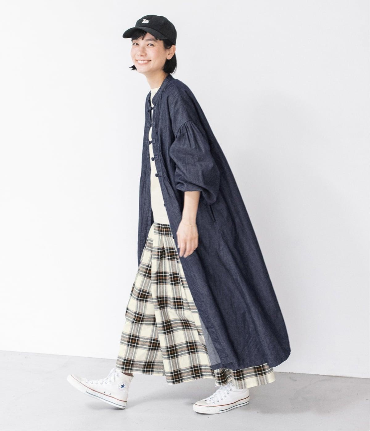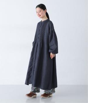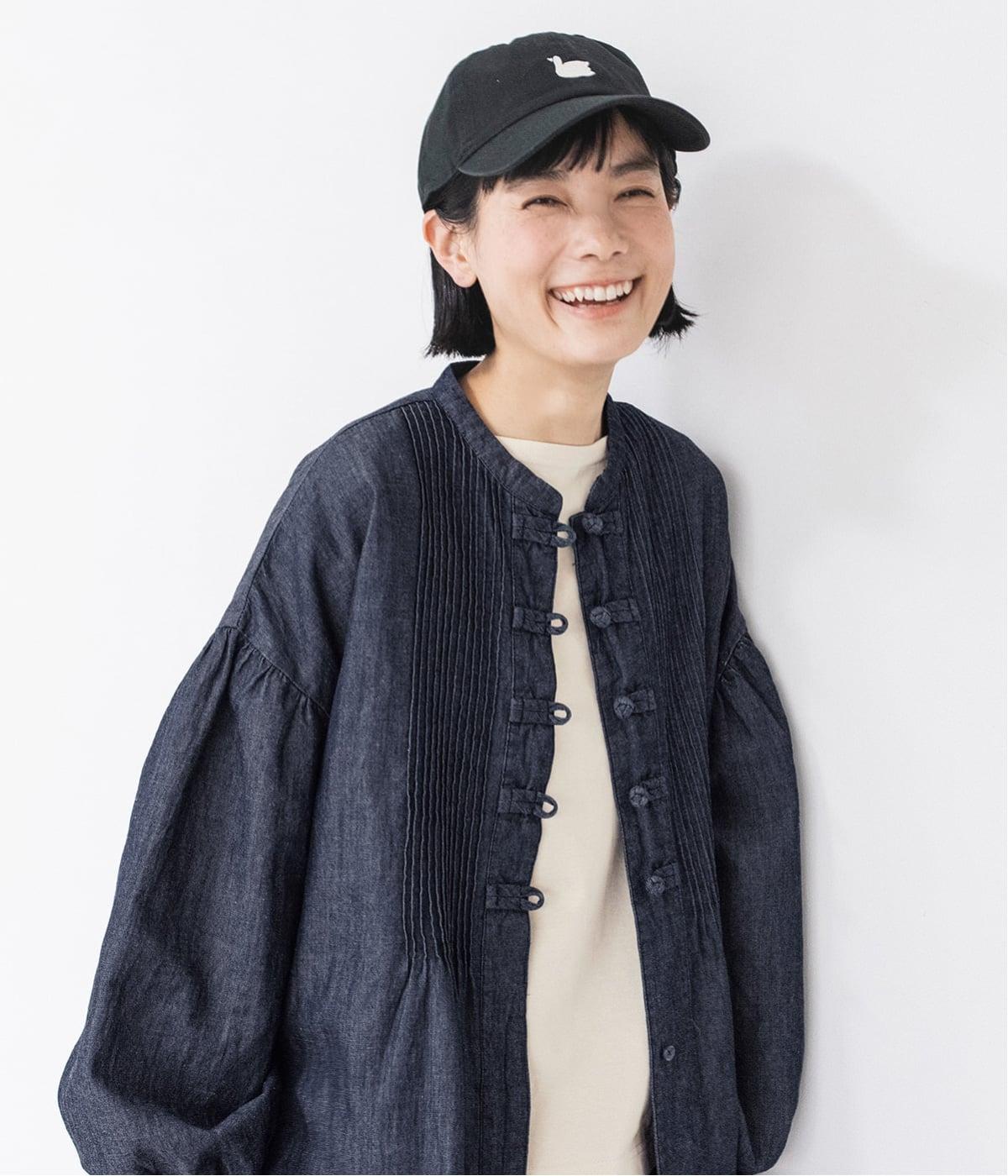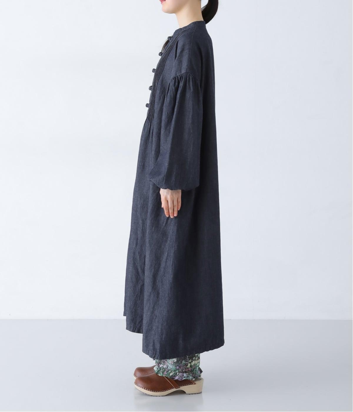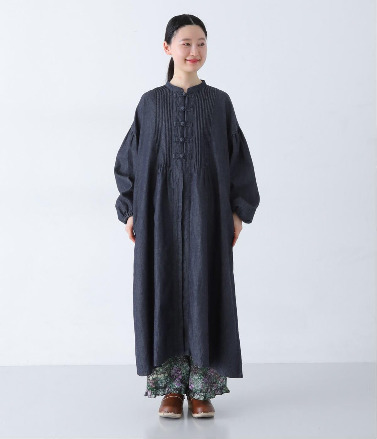 チャイナボタンや繊細なピンタックが目を惹くコットンリネンデニムのブラウスとワンピース。