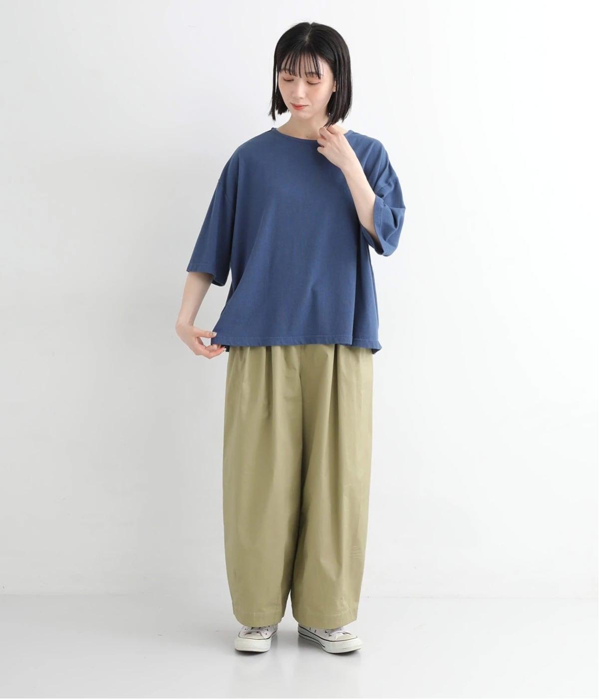 ウエストにはタックを入れることで、気になるお腹まわりもカバーしてすっきり。肌離れがよく涼しいだけでなく、脚のラインを拾わないのもワイドパンツの魅力です。