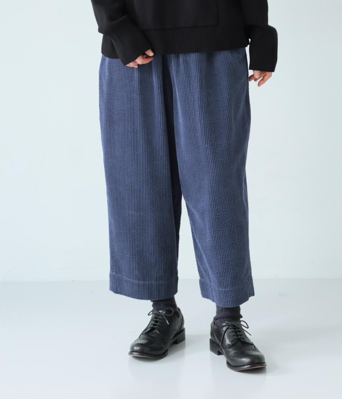 太畝のコーデュロイ生地を使用。やわらかさの中にもコーデュロイならではの縦の落ち感があり、こなれ感のあるカジュアルスタイルを演出してくれます。