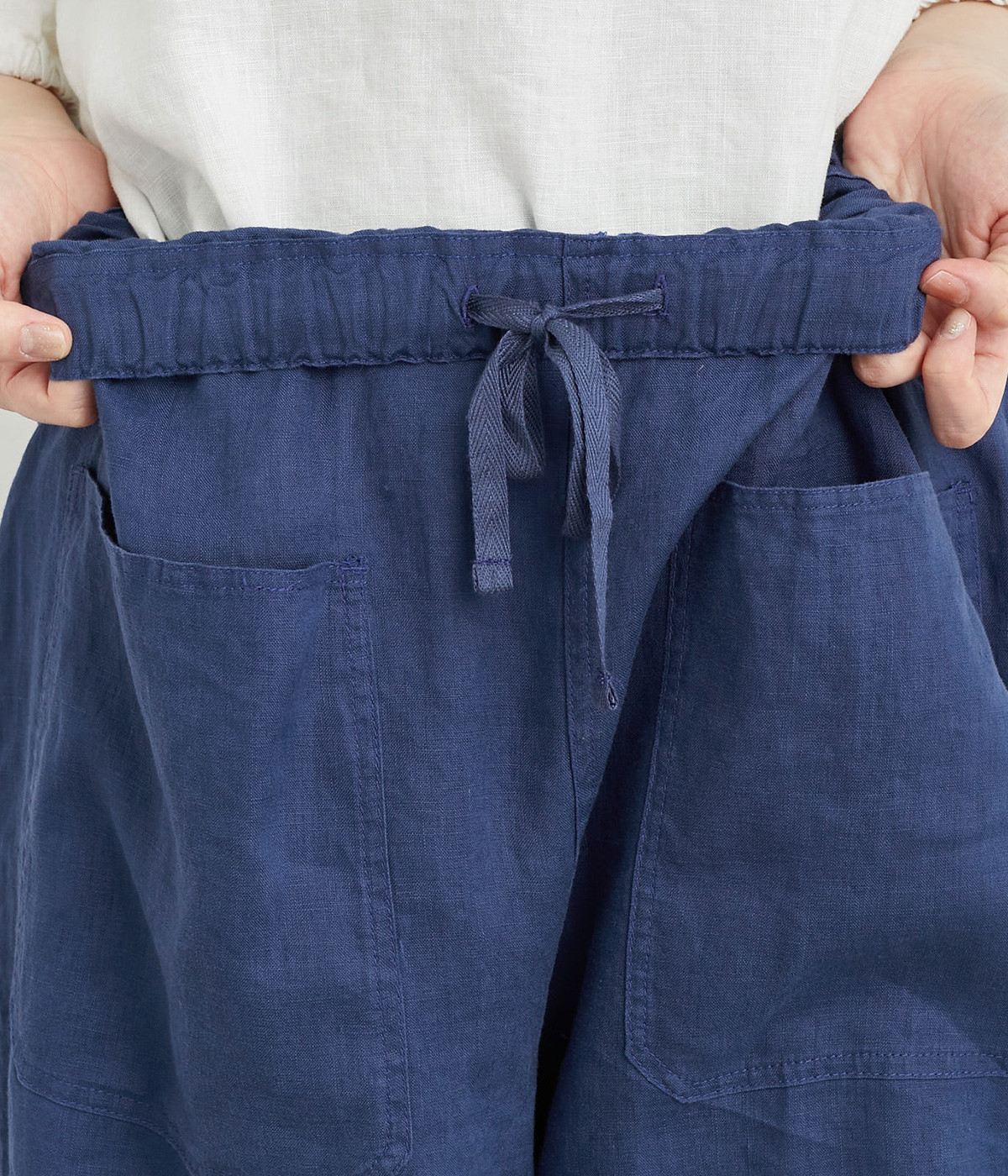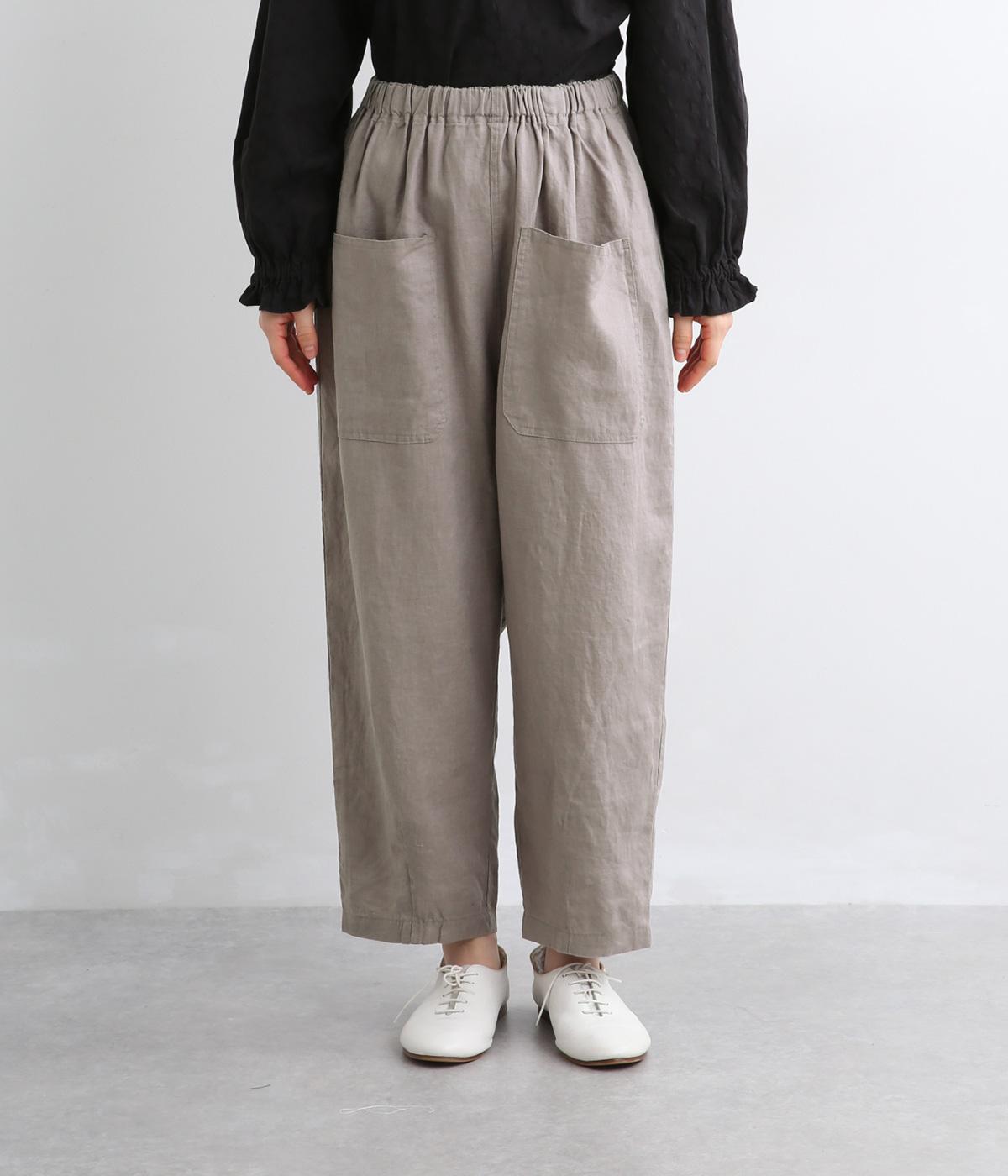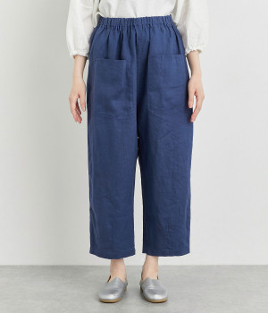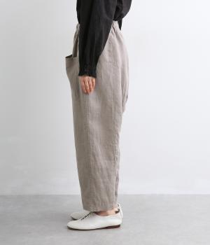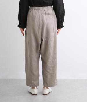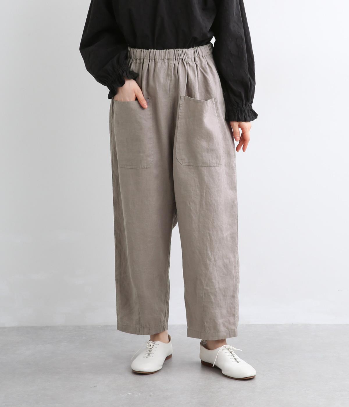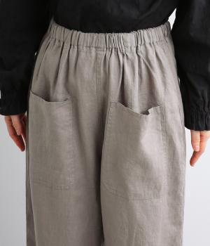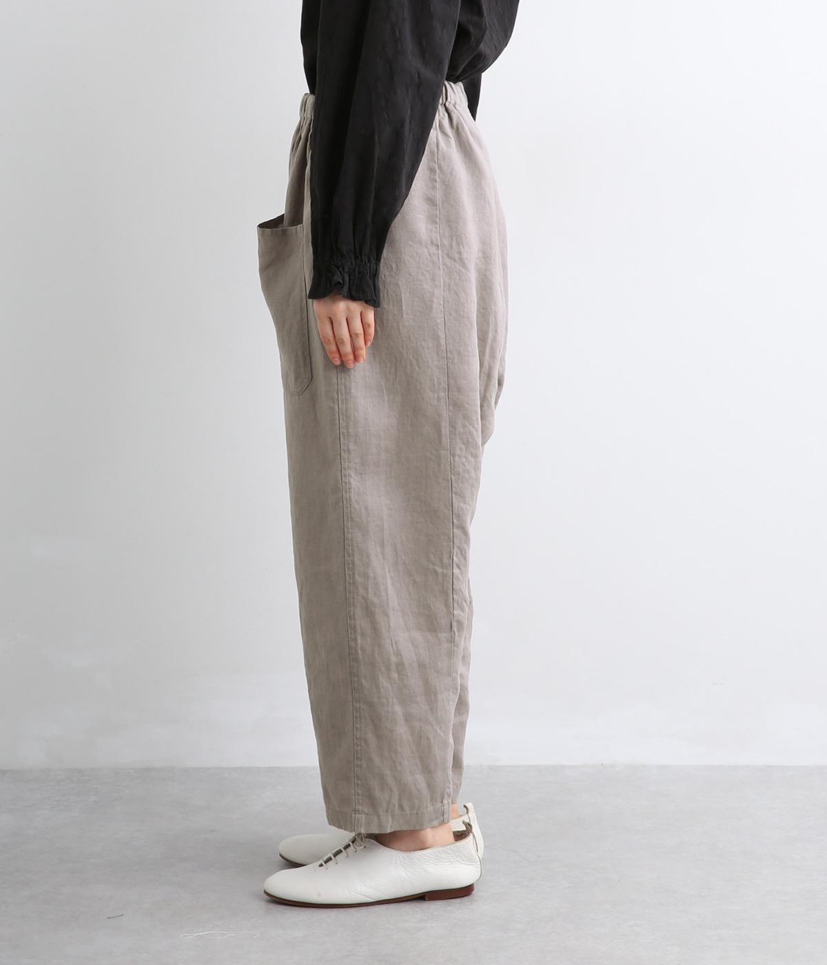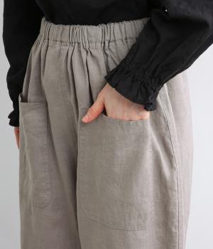 適度にしっかりとした質感にリネンならではの風合いやコシを感じるオックス生地を採用。厚手すぎないので使い勝手も良く、はくほどになじむリネンのエイジングもたのしみ。