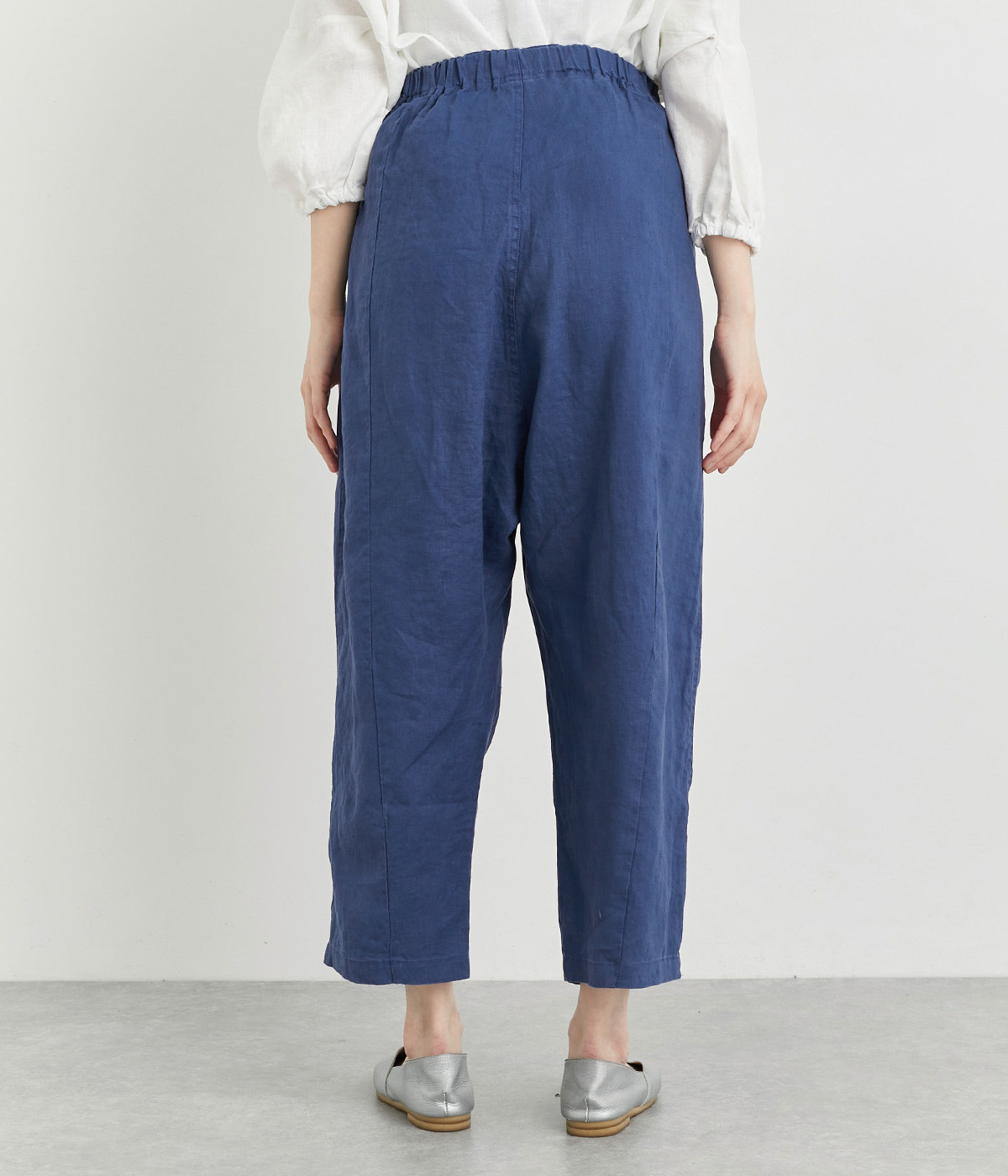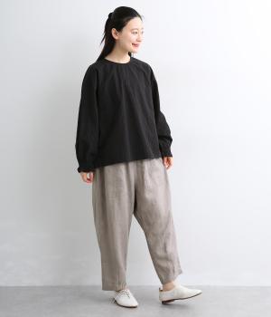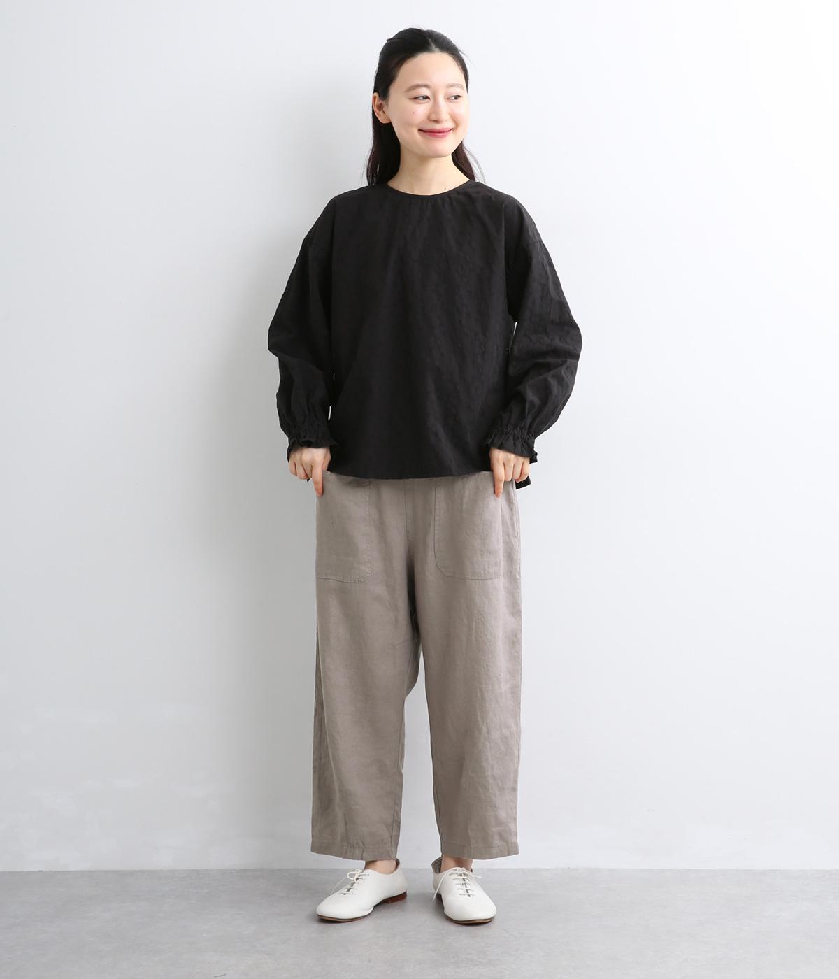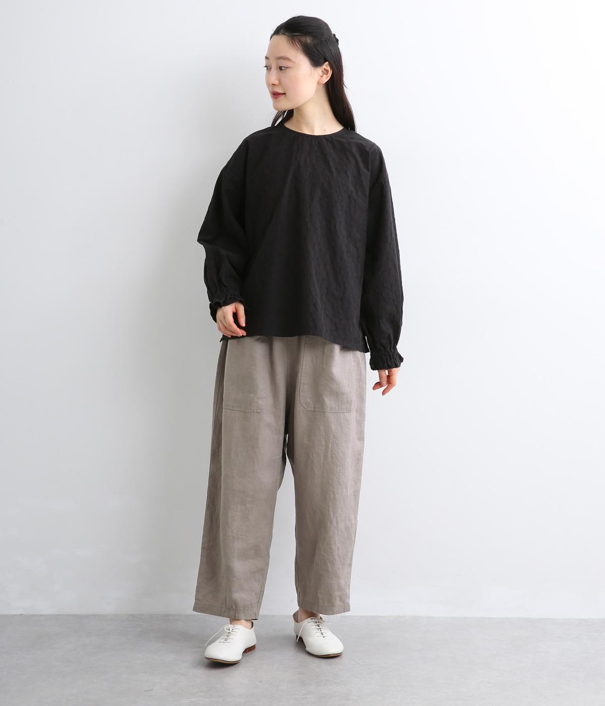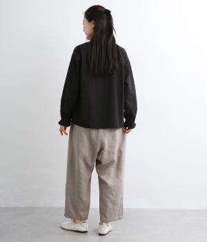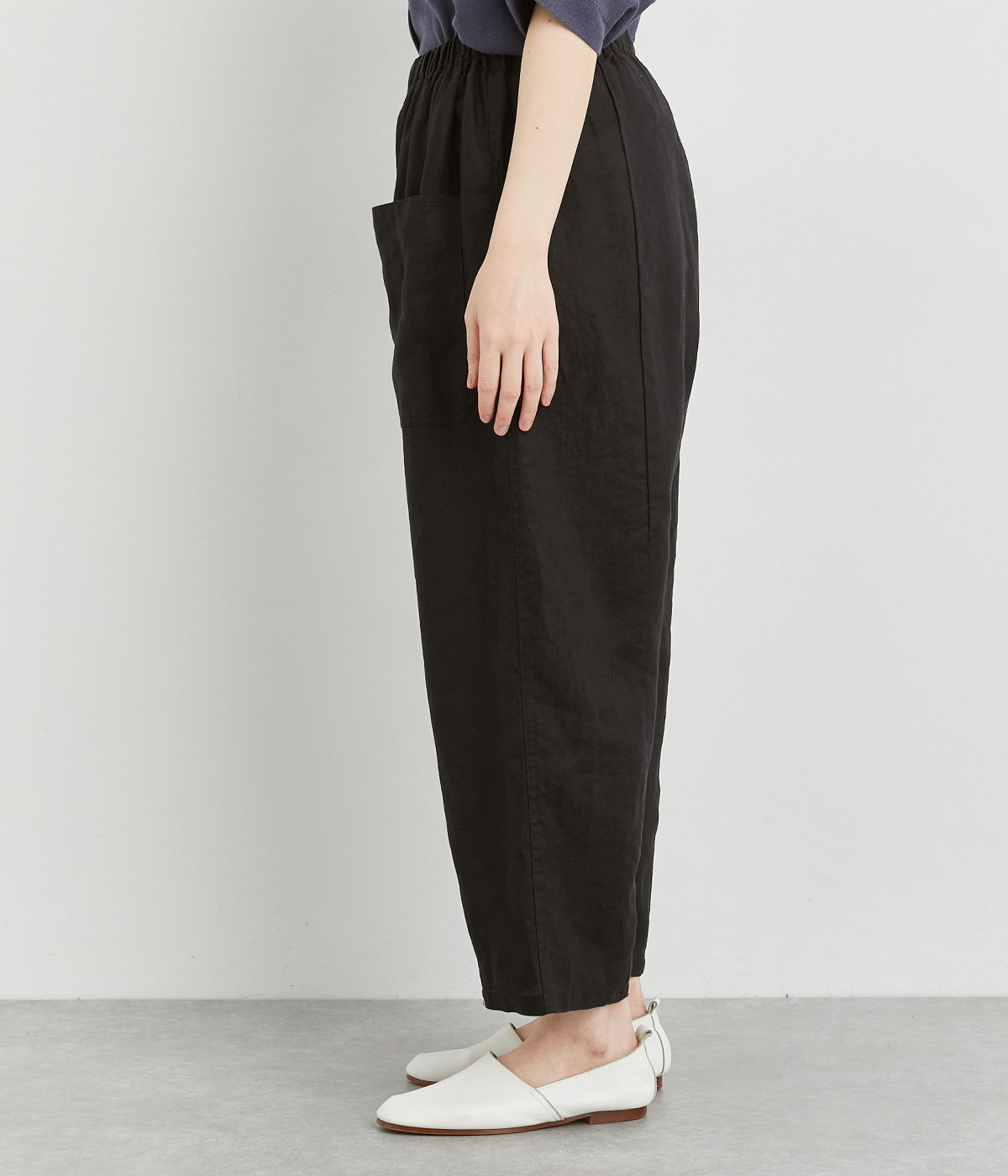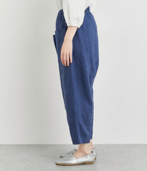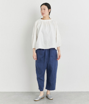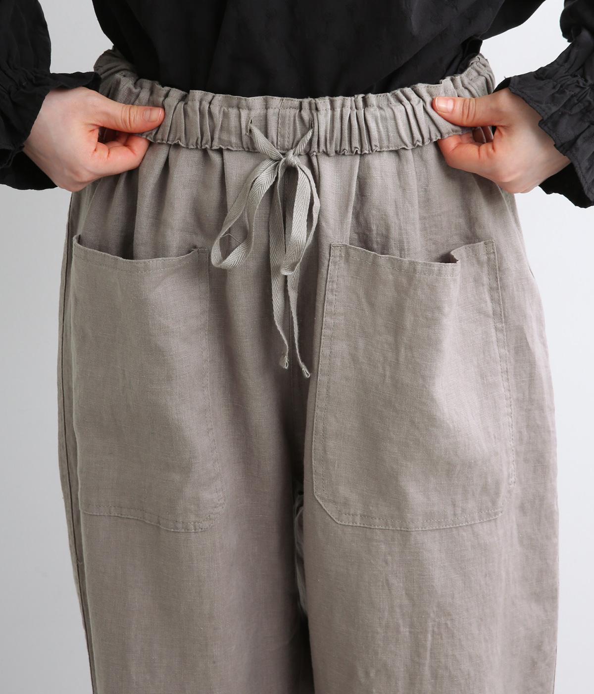 適度にしっかりとした質感にリネンならではの風合いやコシを感じるオックス生地を採用。厚手すぎないので使い勝手も良く、はくほどになじむリネンのエイジングもたのしみ。