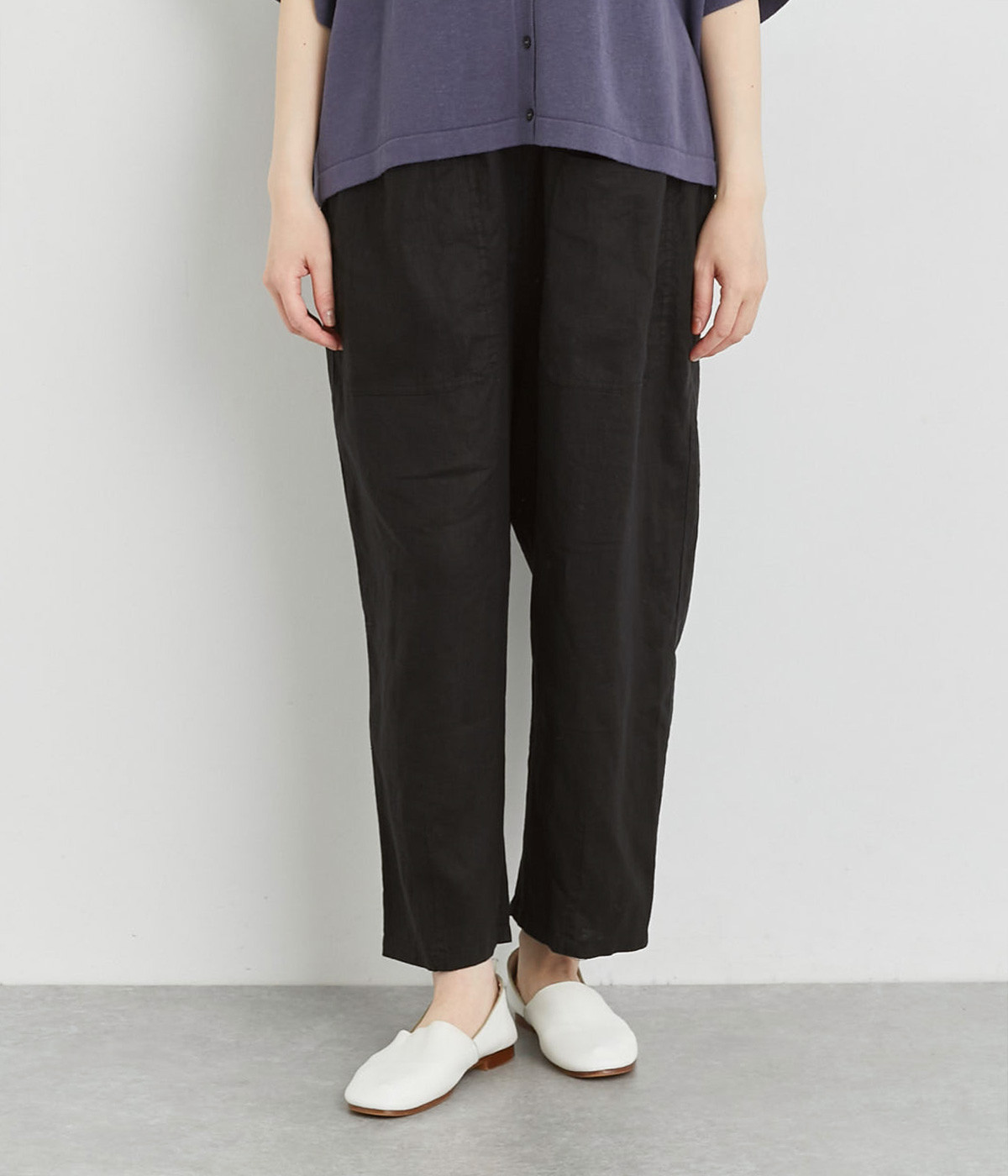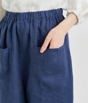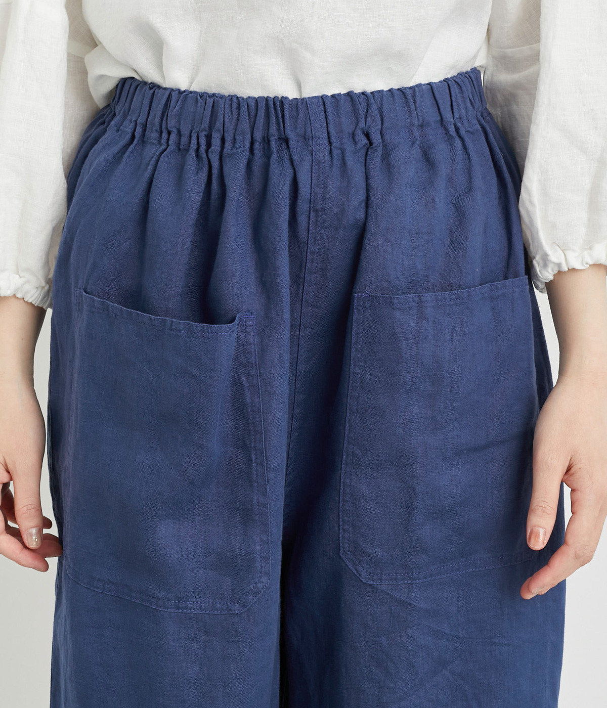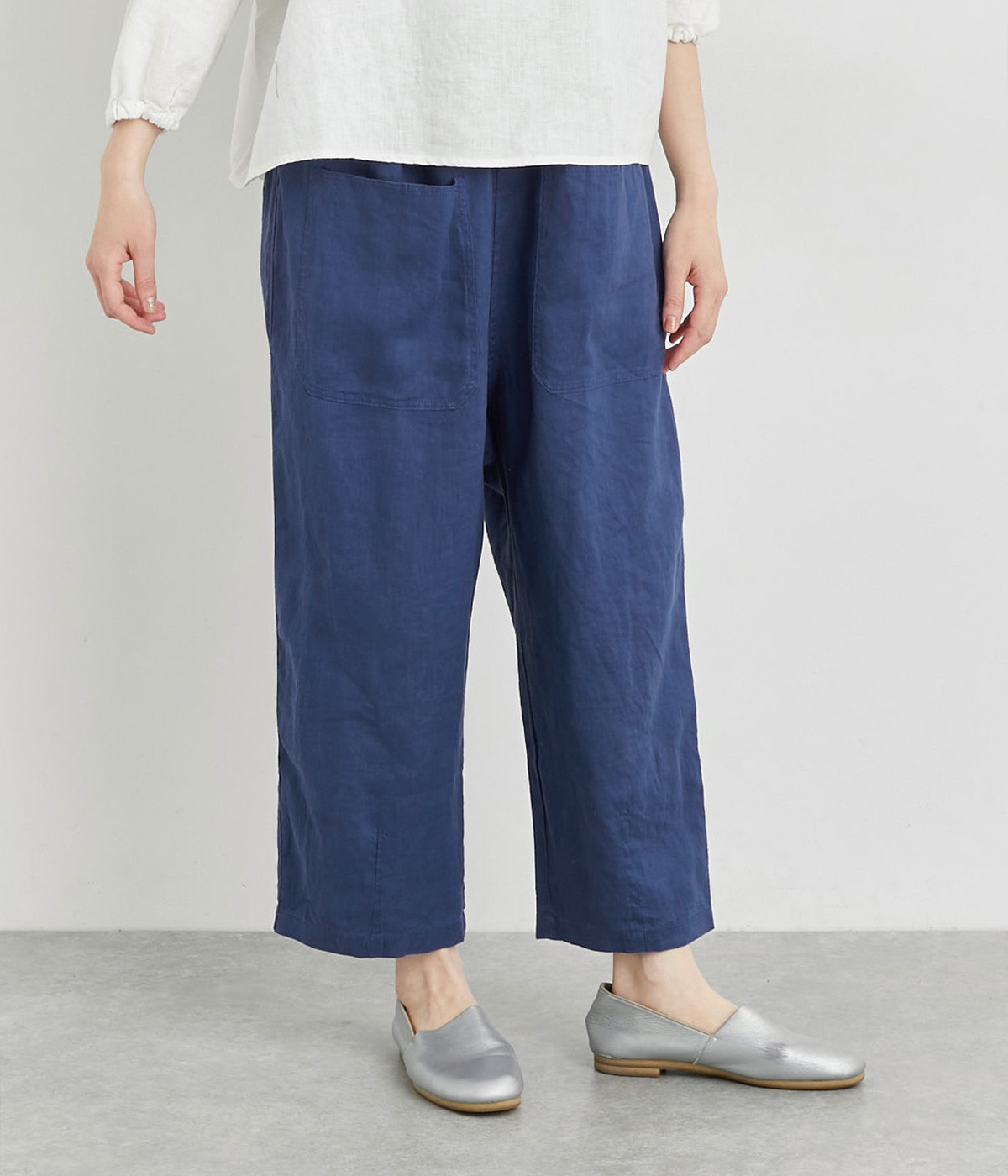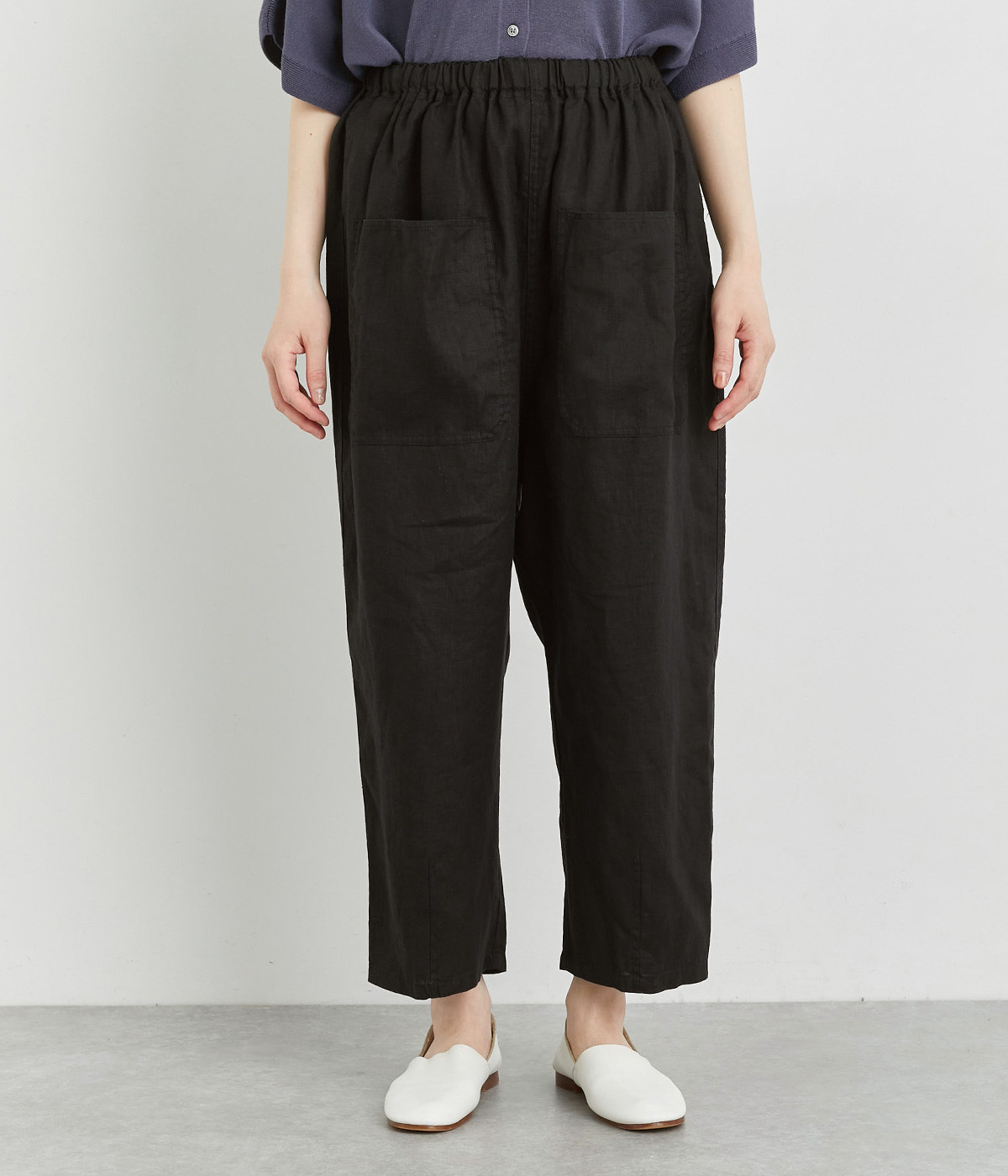 適度にしっかりとした質感にリネンならではの風合いやコシを感じるオックス生地を採用。厚手すぎないので使い勝手も良く、はくほどになじむリネンのエイジングもたのしみ。