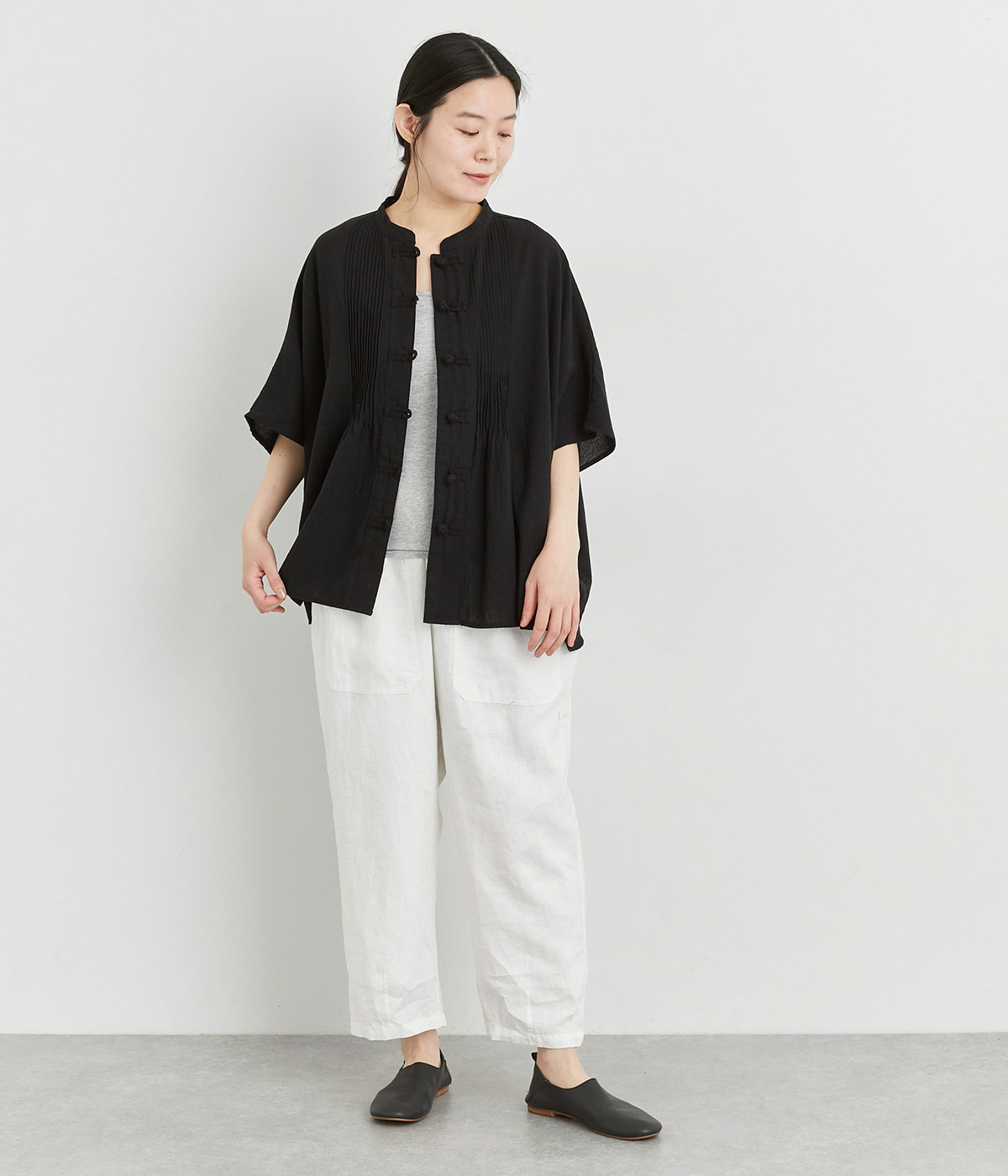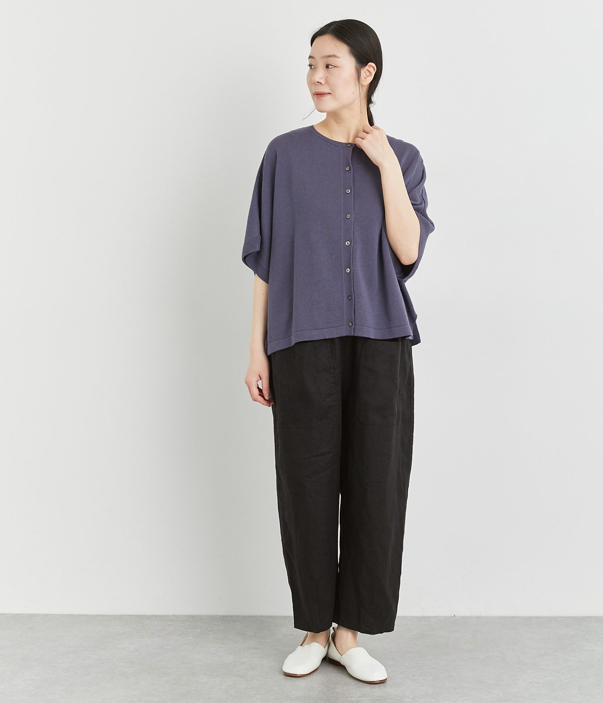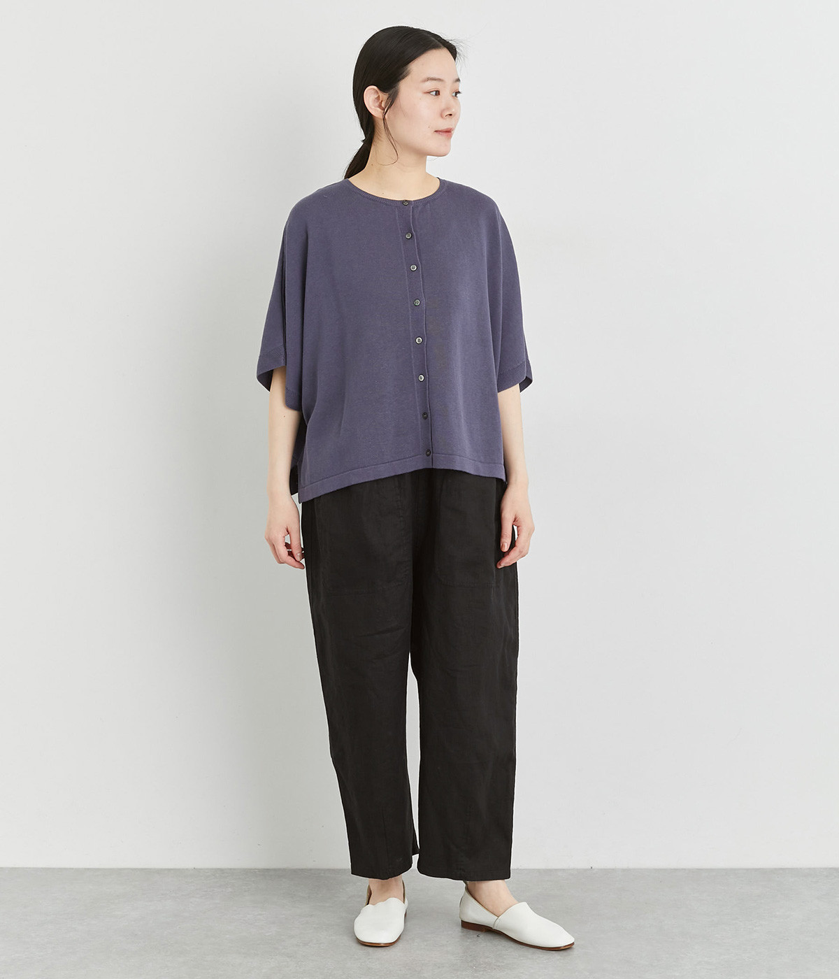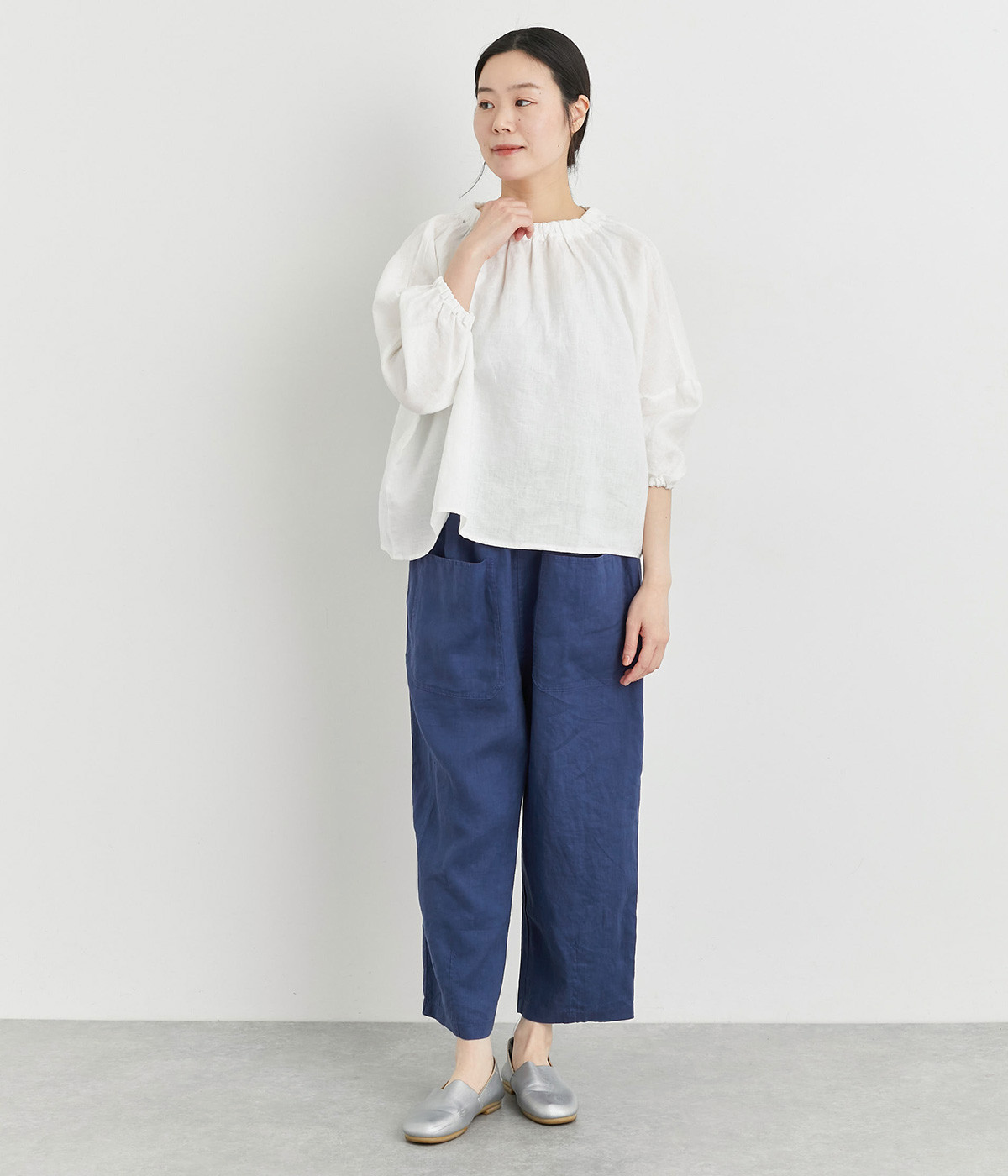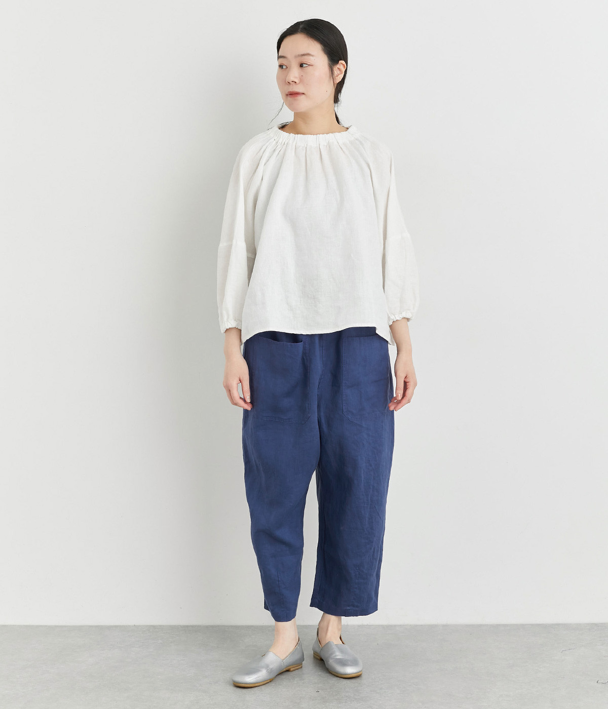 適度にしっかりとした質感にリネンならではの風合いやコシを感じるオックス生地を採用。厚手すぎないので使い勝手も良く、はくほどになじむリネンのエイジングもたのしみ。