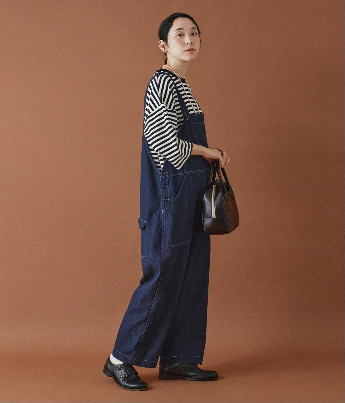 サロペットのワークテイストに、フリルブラウスの可愛げをひとさじ。ナチュラルな雰囲気とほどよい甘さのバランスが目を引く、洗練された着こなしです。