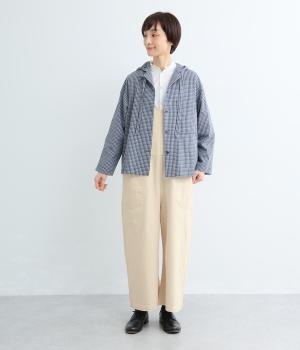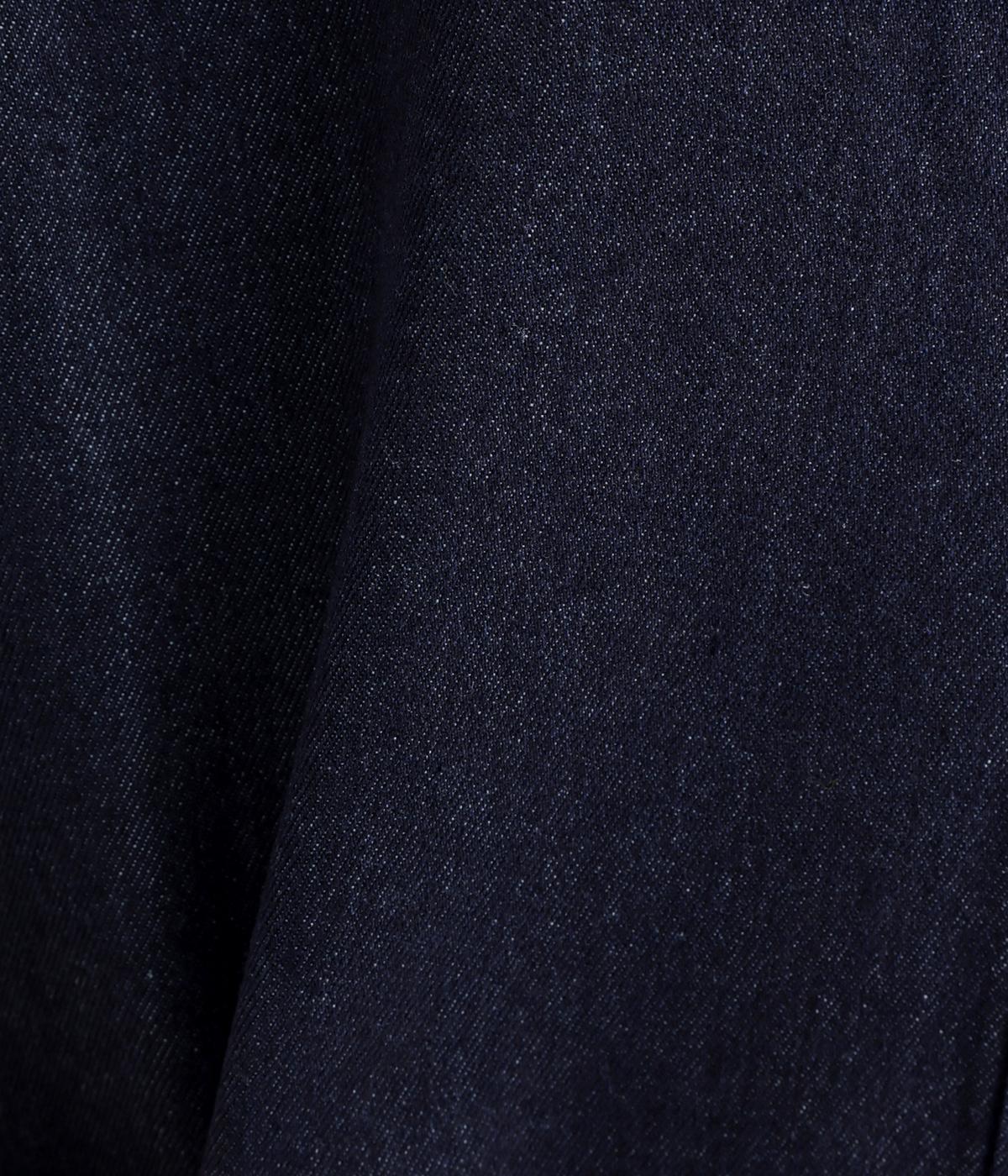 ほどよい厚みのコットン混デニムを使用した、しなやかな風合いの生地です。ハリ感がありつつもやわらかく、動きに合わせて自然になじみます。毎日の装いに心地よく寄り添う、軽やかな着心地です。
