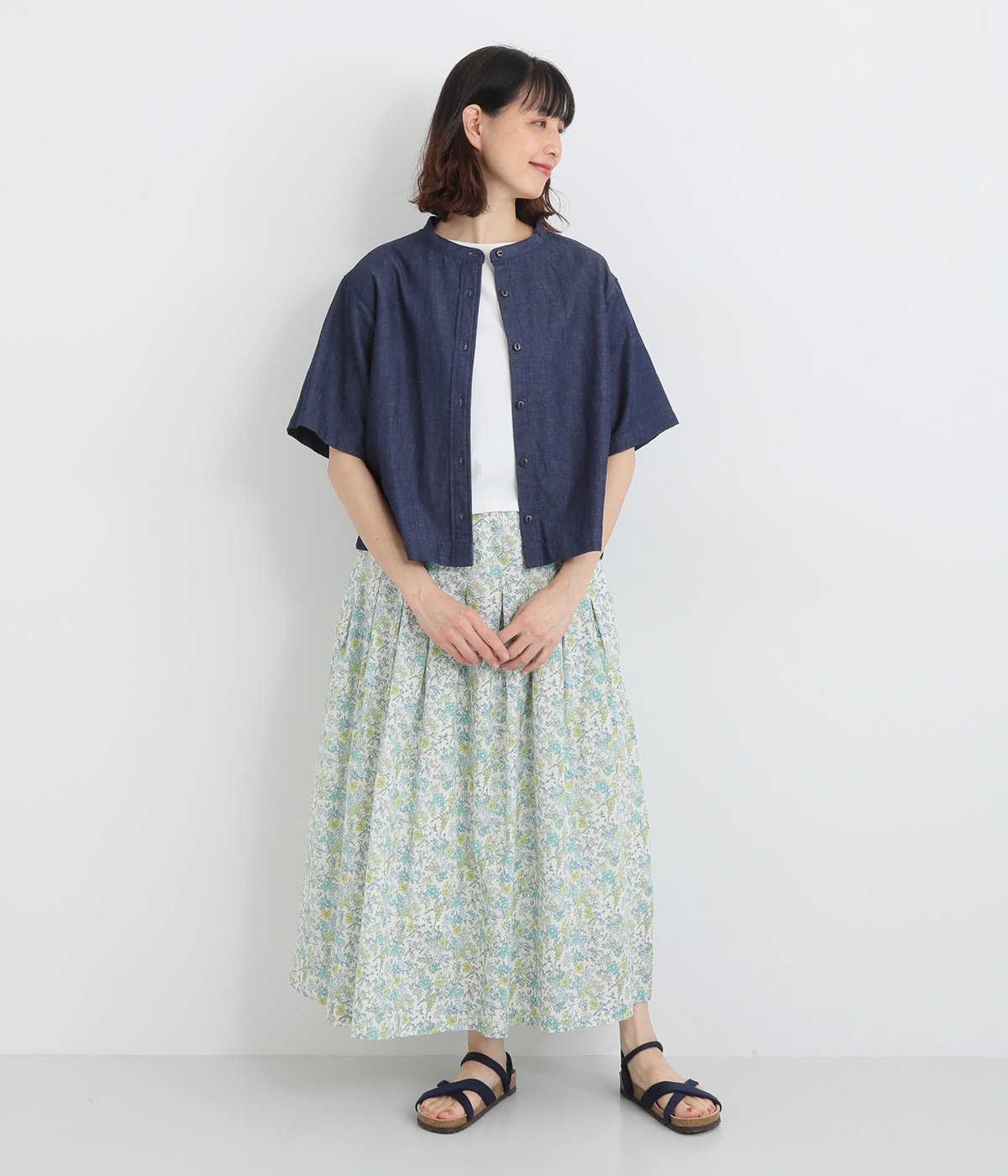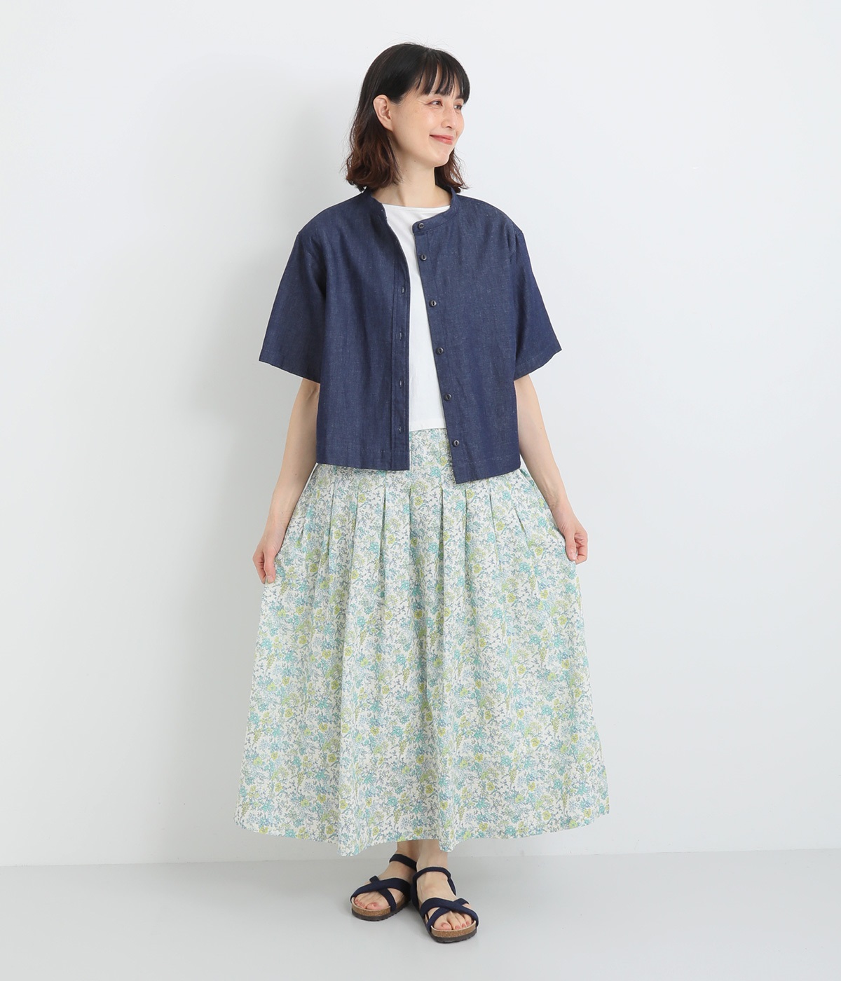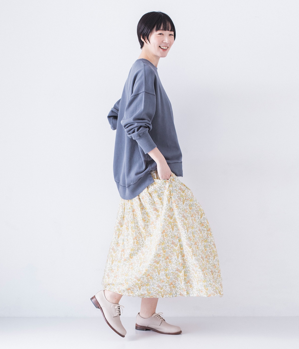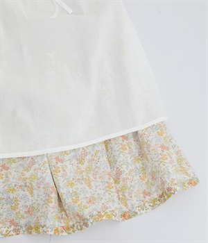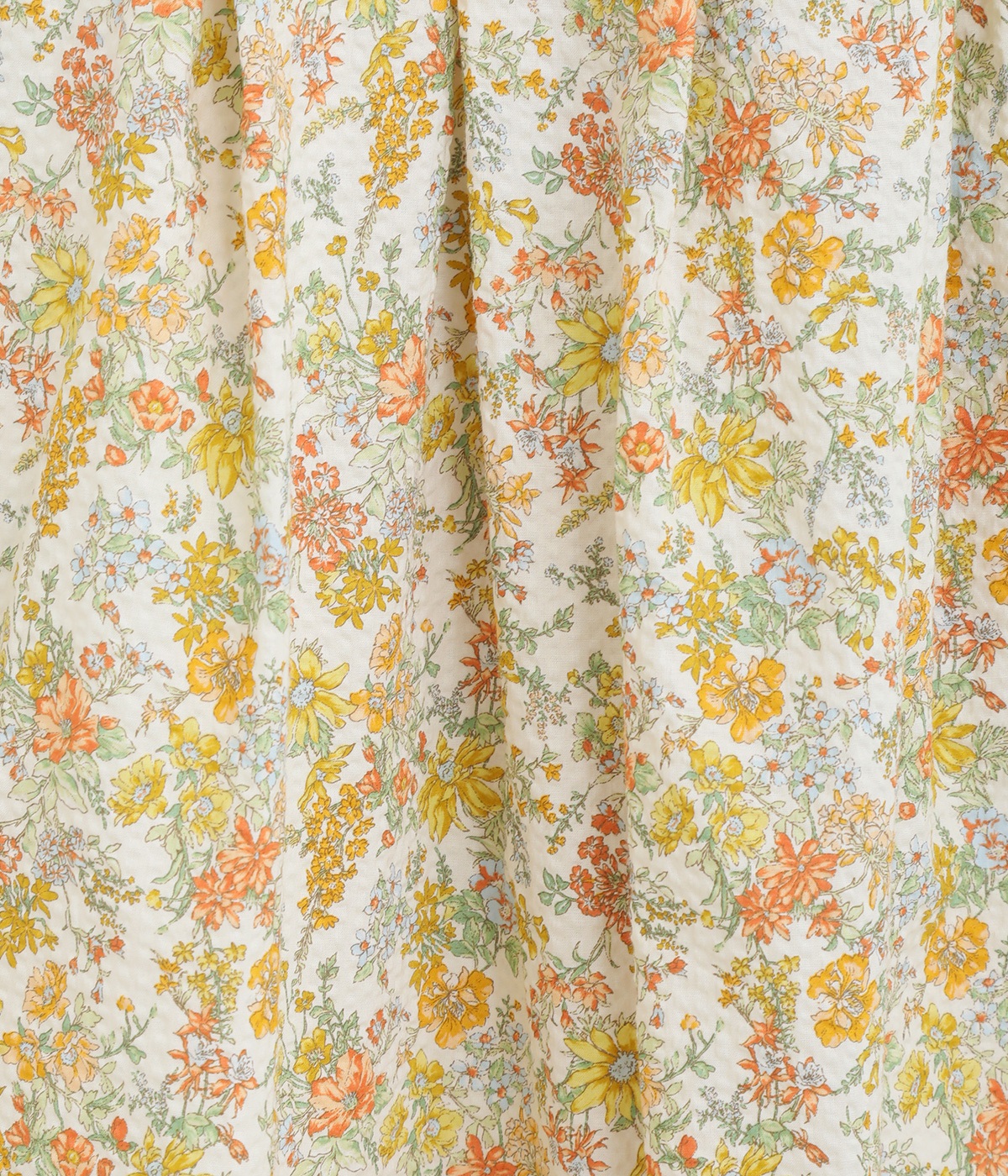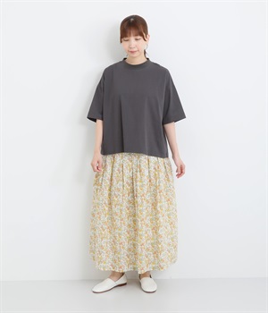 サッカー風の凸凹があるミラクルウェーブコットンを使用しています。国内における優秀な技術を活かして日本で生産された生地で、可憐な印象を与える小花プリイントをのせました。肌あたりのいい裏地をつけて着用感も◎。