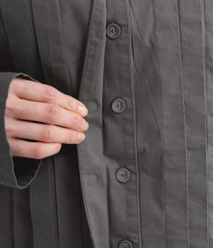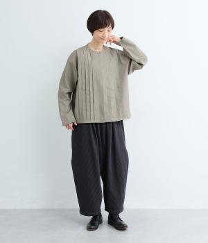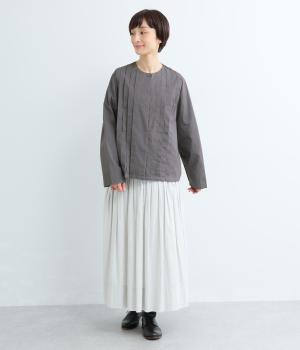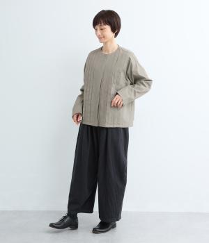 さらりとなめらかな肌ざわりが心地よい、コットン混のオックス生地を使用しました。ほどよいハリ感がありながら、ほのかにストレッチがきいているため、動きに合わせてしなやかになじみます。