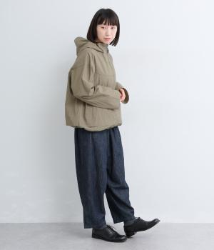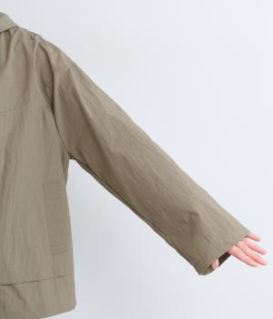 コットンにナイロンをまぜて速乾性良く、薄めの生地感で軽やかに仕立てました。細かなシワも表情の一部となったドライ&ナチュラルな質感が雰囲気よく仕上がっています。