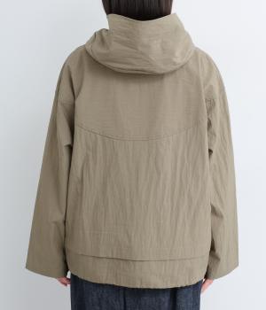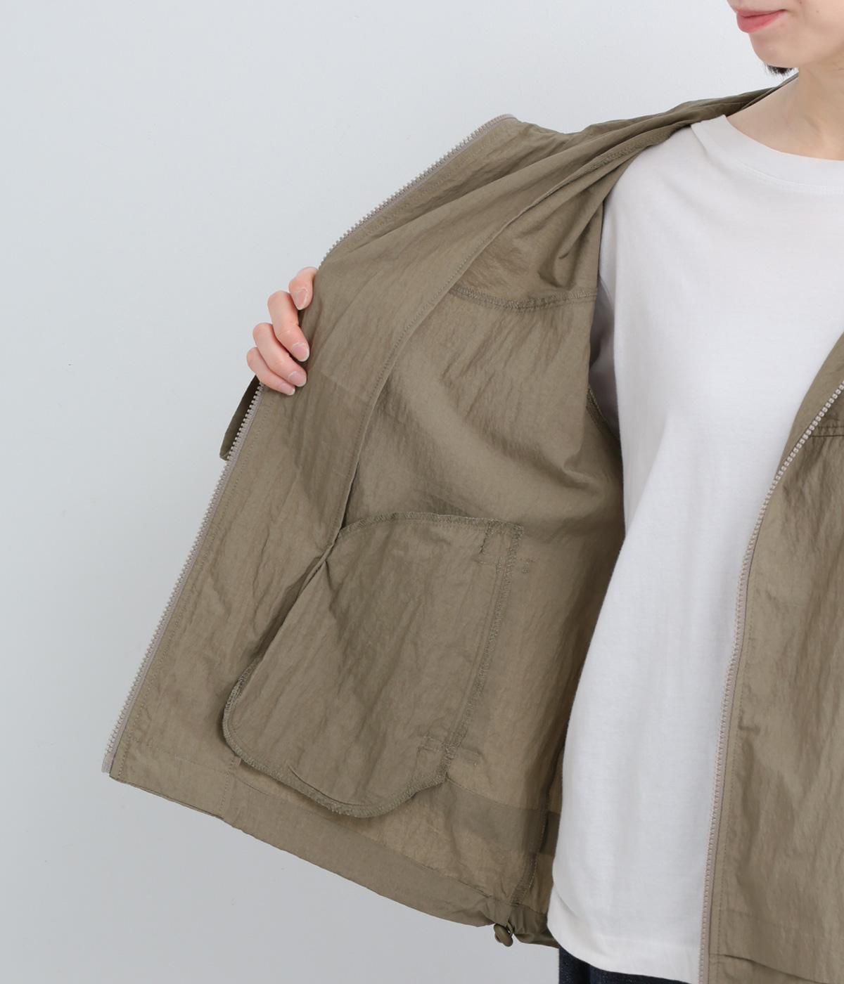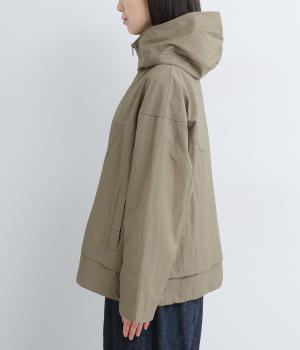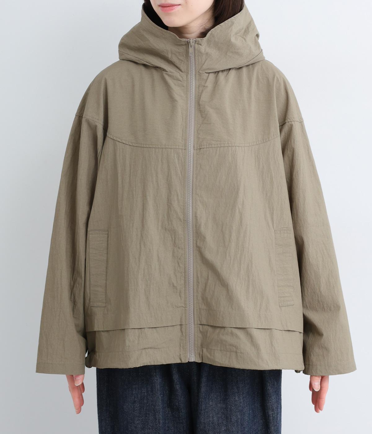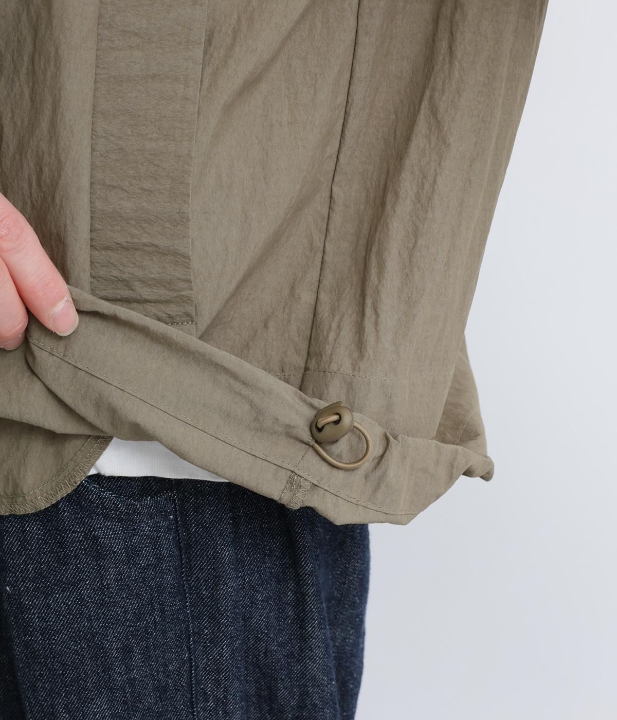 肌寒さのある季節の変わりめやアウトドアシーンなどで活躍するライトアウター。スタンドネックのフードつきでカジュアルに仕上げ、裾コードでシルエットのアレンジがたのしめるデザインに。シンプルで使い勝手が良く、こなれ感も運ぶ大人アイテムです。