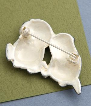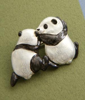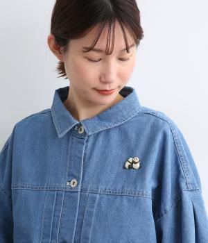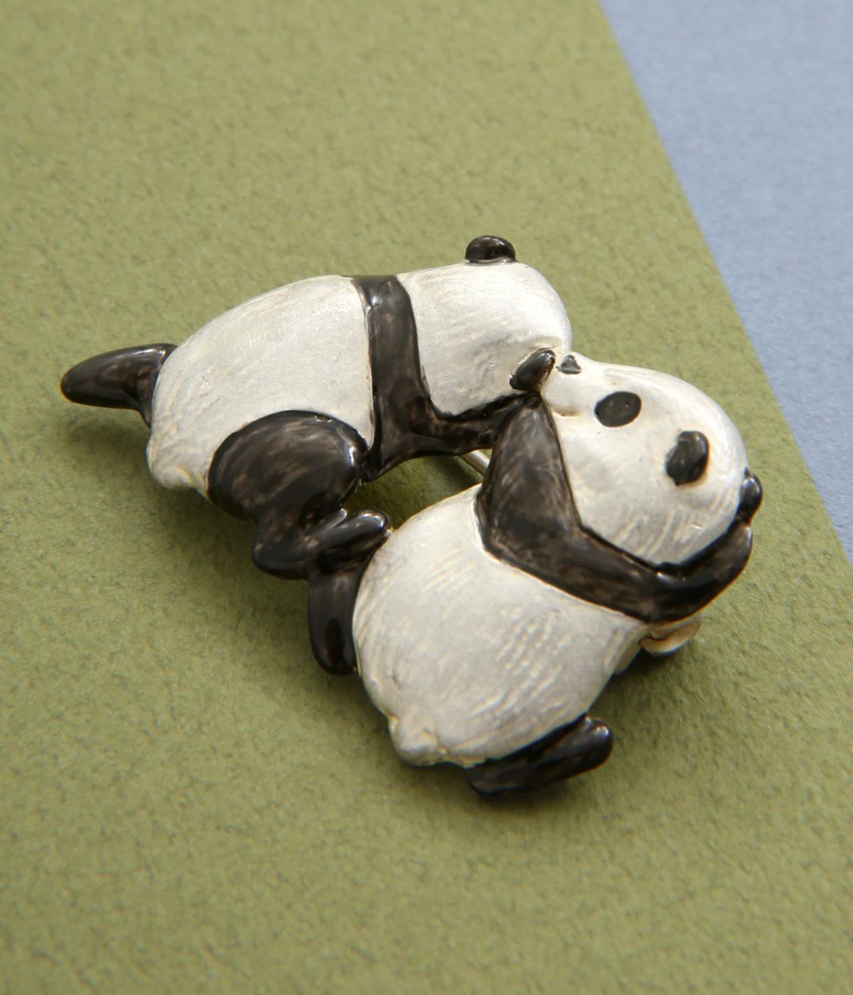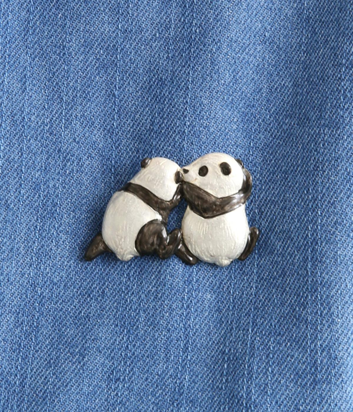 短い手足とコロンとしたフォルムががわいい、ちいさな子どもパンダをモチーフにしたブローチです。頭を寄せ合ったデザインは、こそこそと内緒話をしているようにも見えます。いつものシャツやジャケットに添えるだけで、コーディネートのアクセントになる、こだわりのつまったアイテムです。