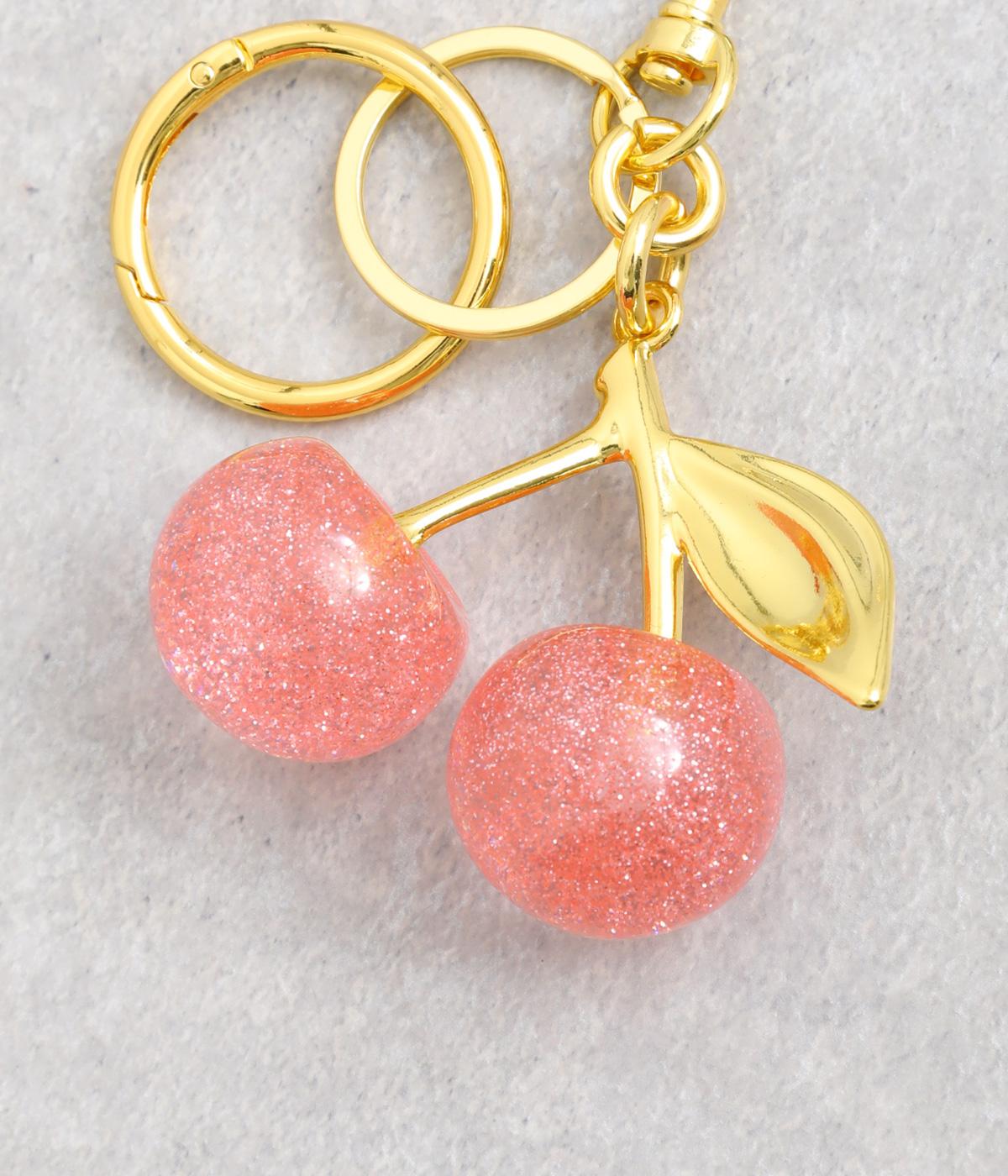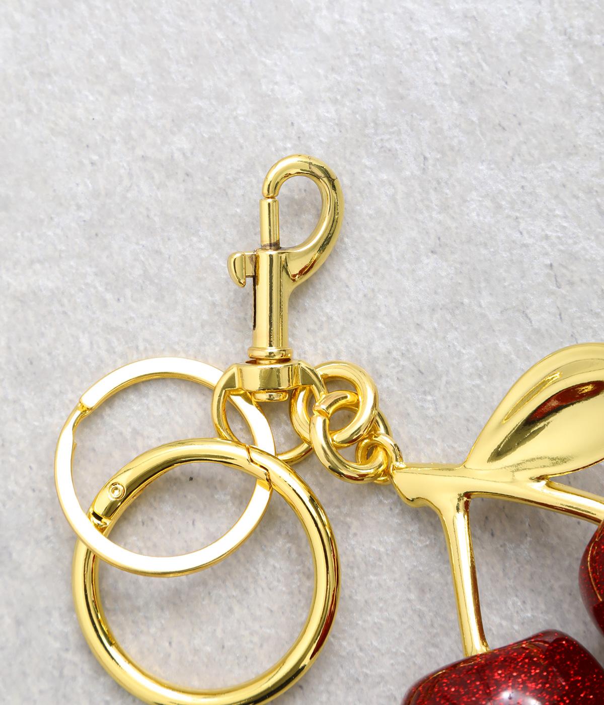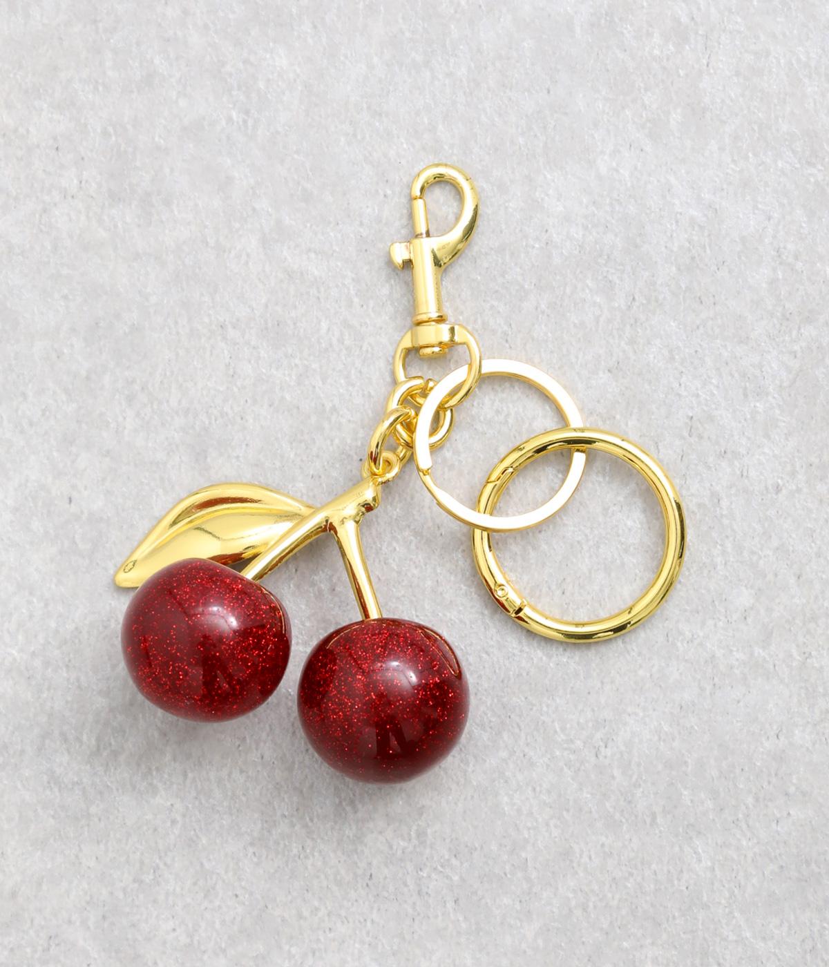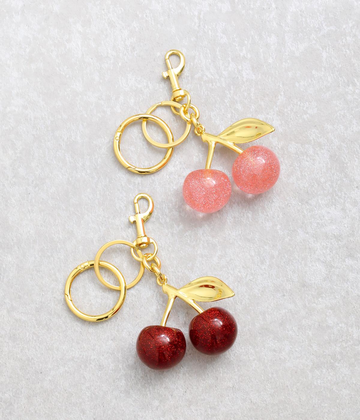 きらりと光るラメを閉じ込めた、さくらんぼモチーフのチャームです。ころんと立体的なフォルムがかわいらしく、バッグの持ち手につけるだけで存在感を放ちます。シンプルな装いに大人の遊び心を添えてくれるアイテムです。