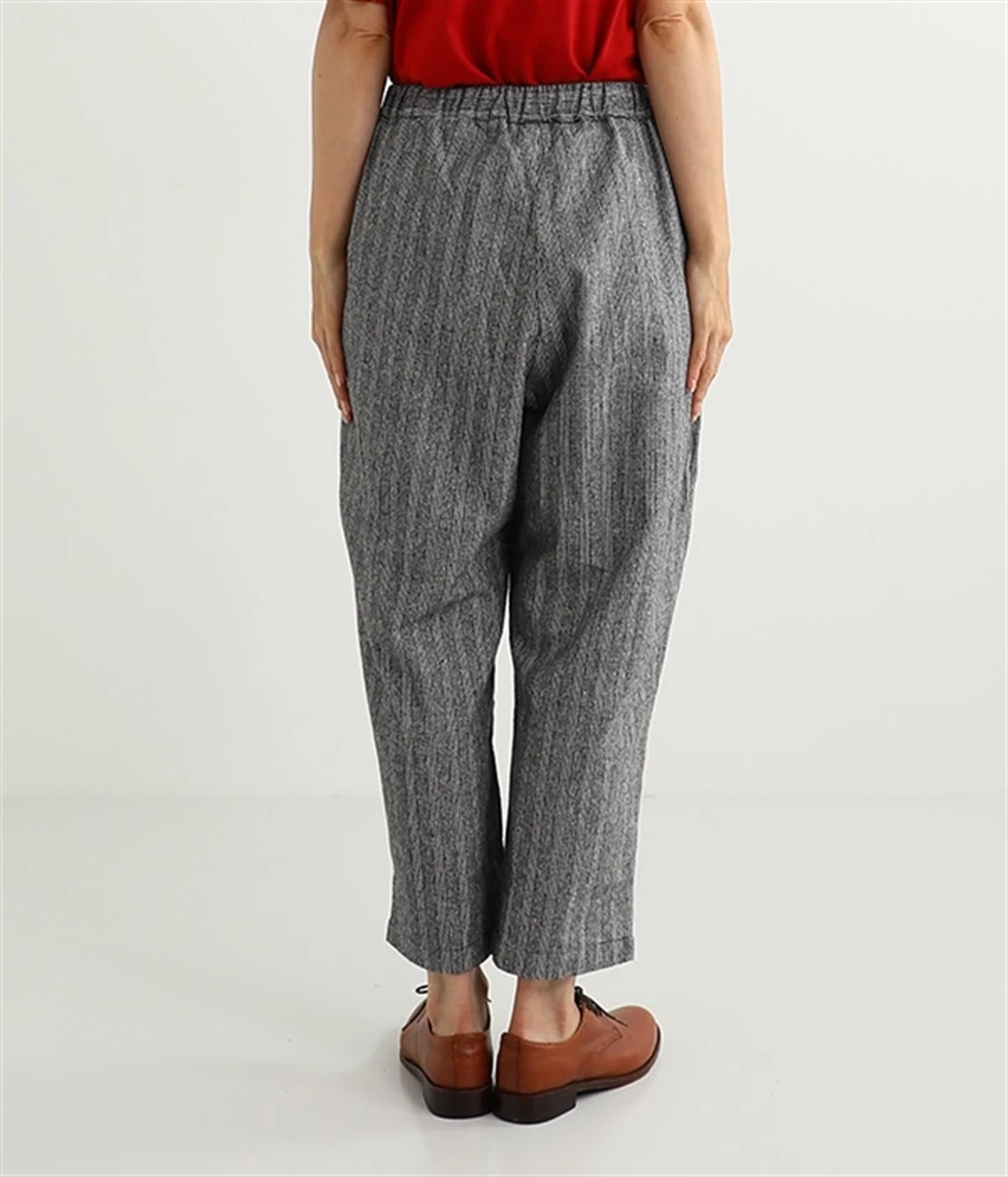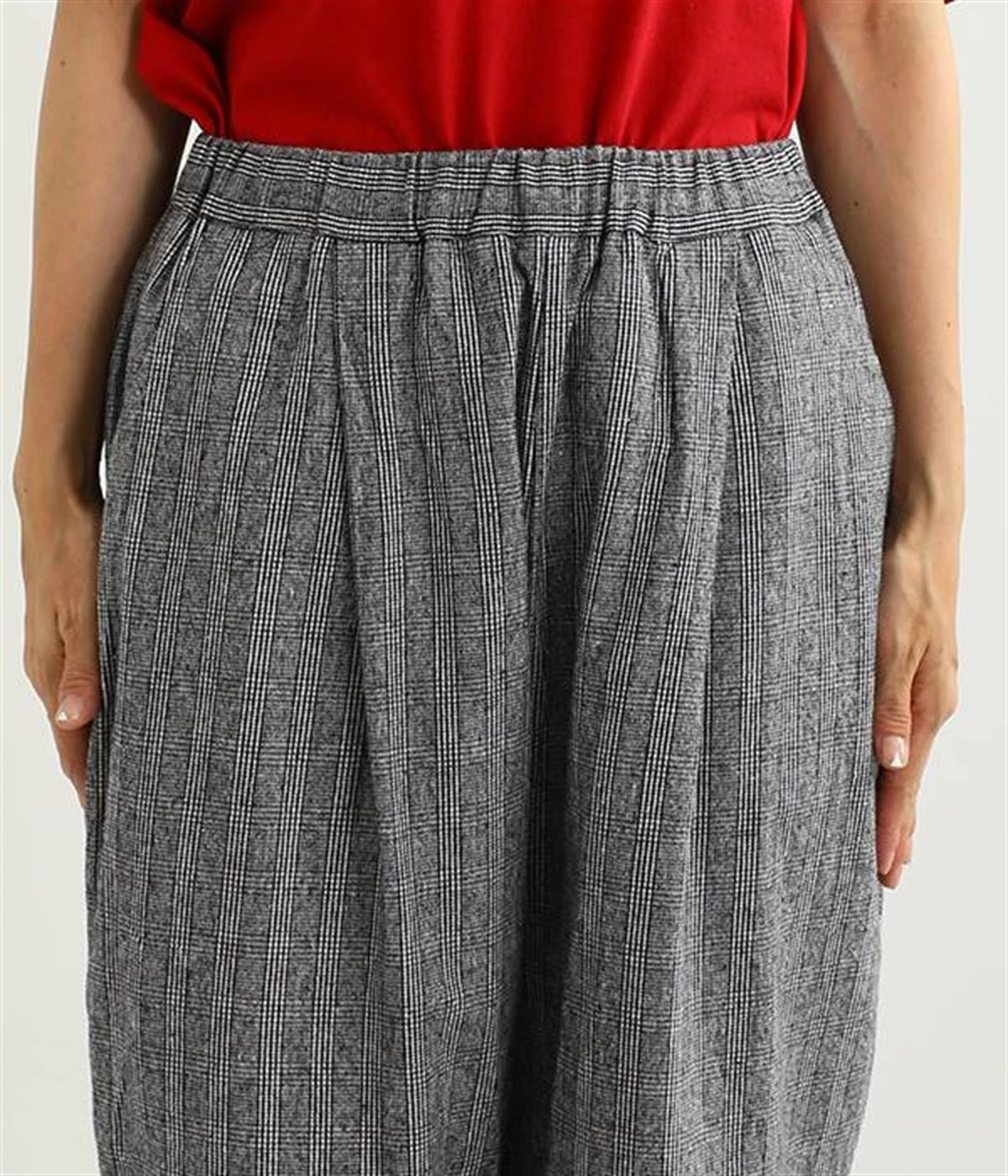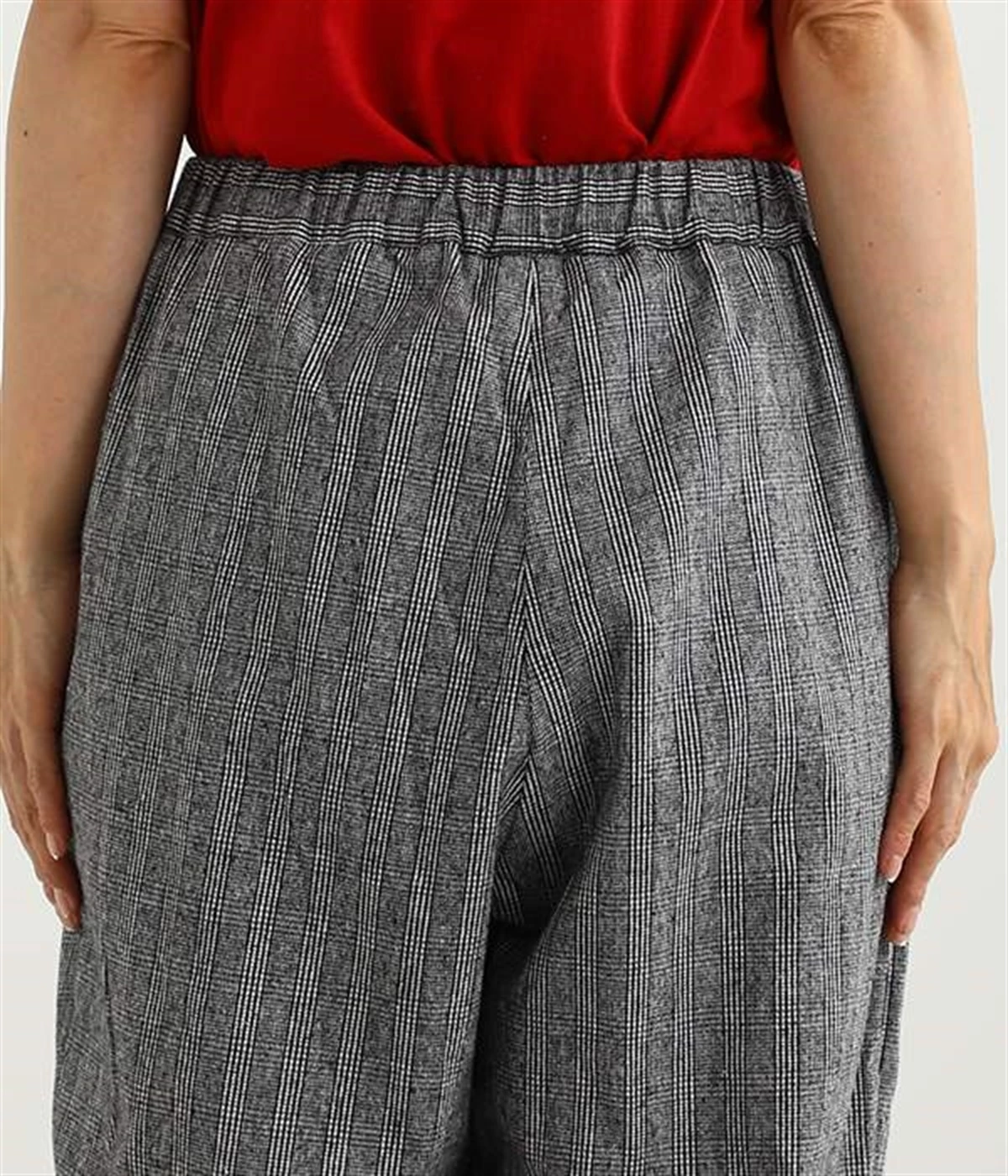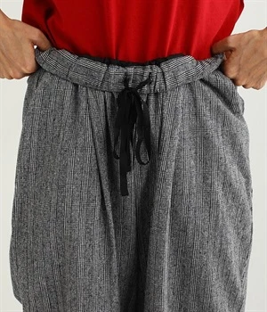 表面にうっすらと起毛加工を施したコットンビエラ生地で仕立てたパンツです。落ち着いて使いやすい色合いのチェック柄がポイント。ウエスト部分にタックの入ったテーパードシルエットにしているためはき心地よく、見た目はすっきりとした印象に仕上がります。ウエストはトップスをインしてもきれいに着こなせる後ろゴム仕様。