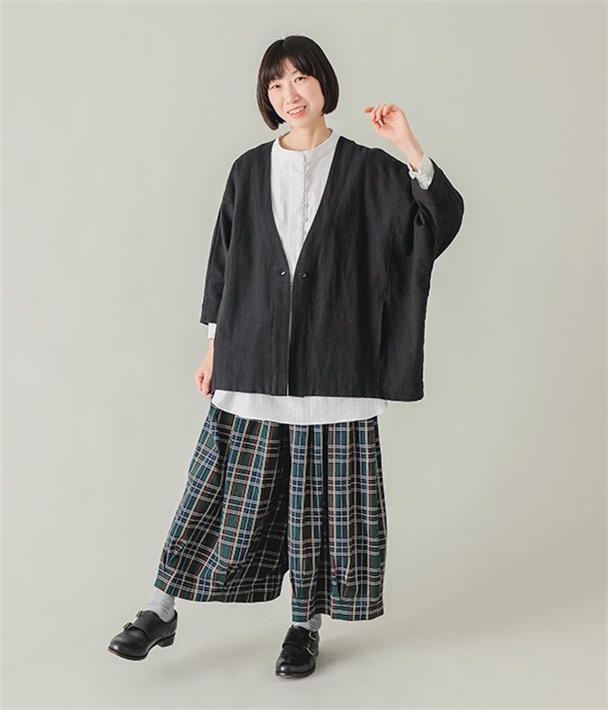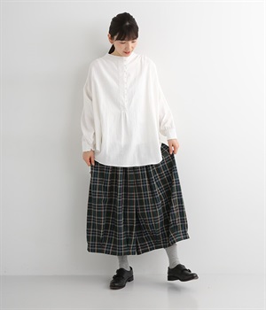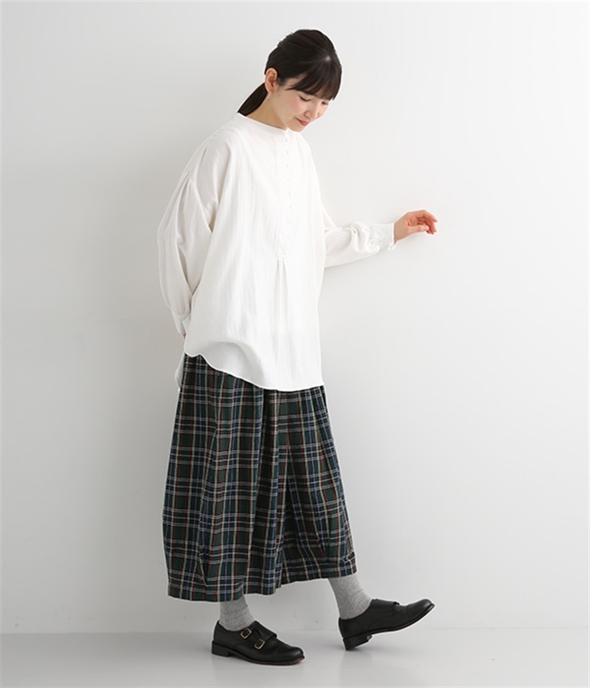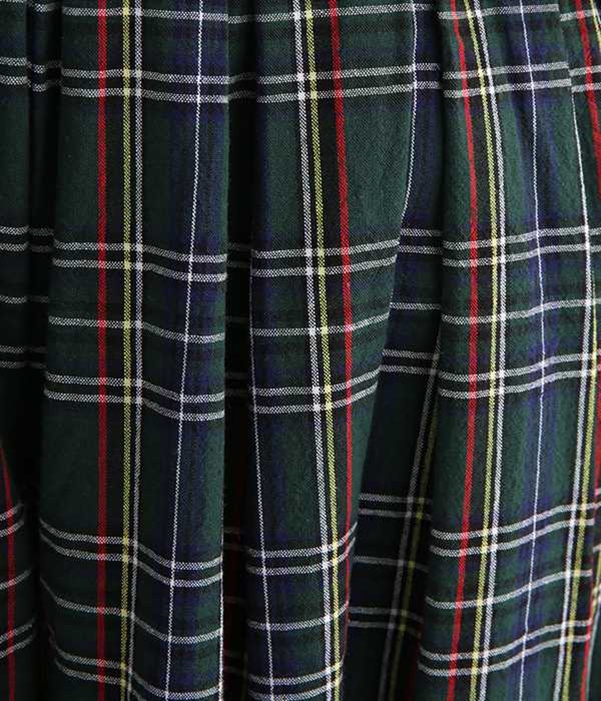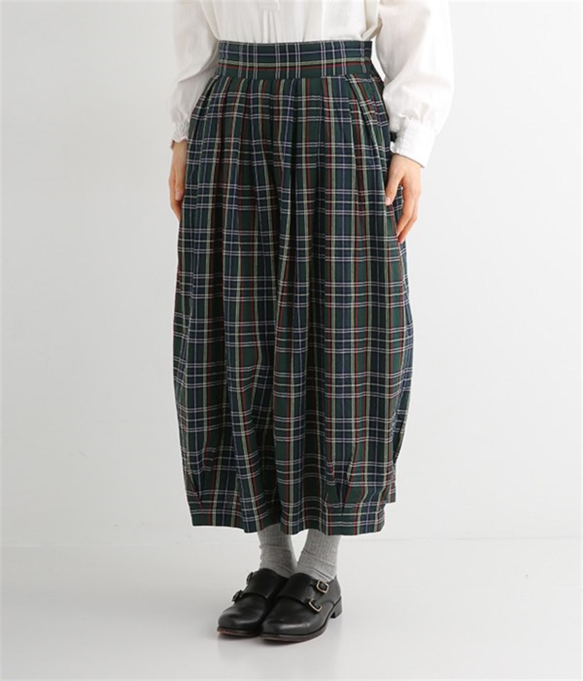 さらりとした風合いのコットンのオックスフォード生地を使用したパンツです。ウエストは後ろ側のみゴム仕様で、トップスの裾をインした着こなしにも対応。ウエスト下と裾にはタックを施し、こなれ感のあるシルエットに仕上げました。 トラッドなチェック柄がコーディネートのアクセントにぴったり。シンプルなニットやブラウスに合わせるだけでサマになります。
