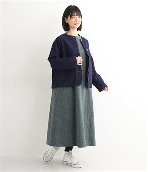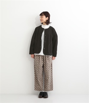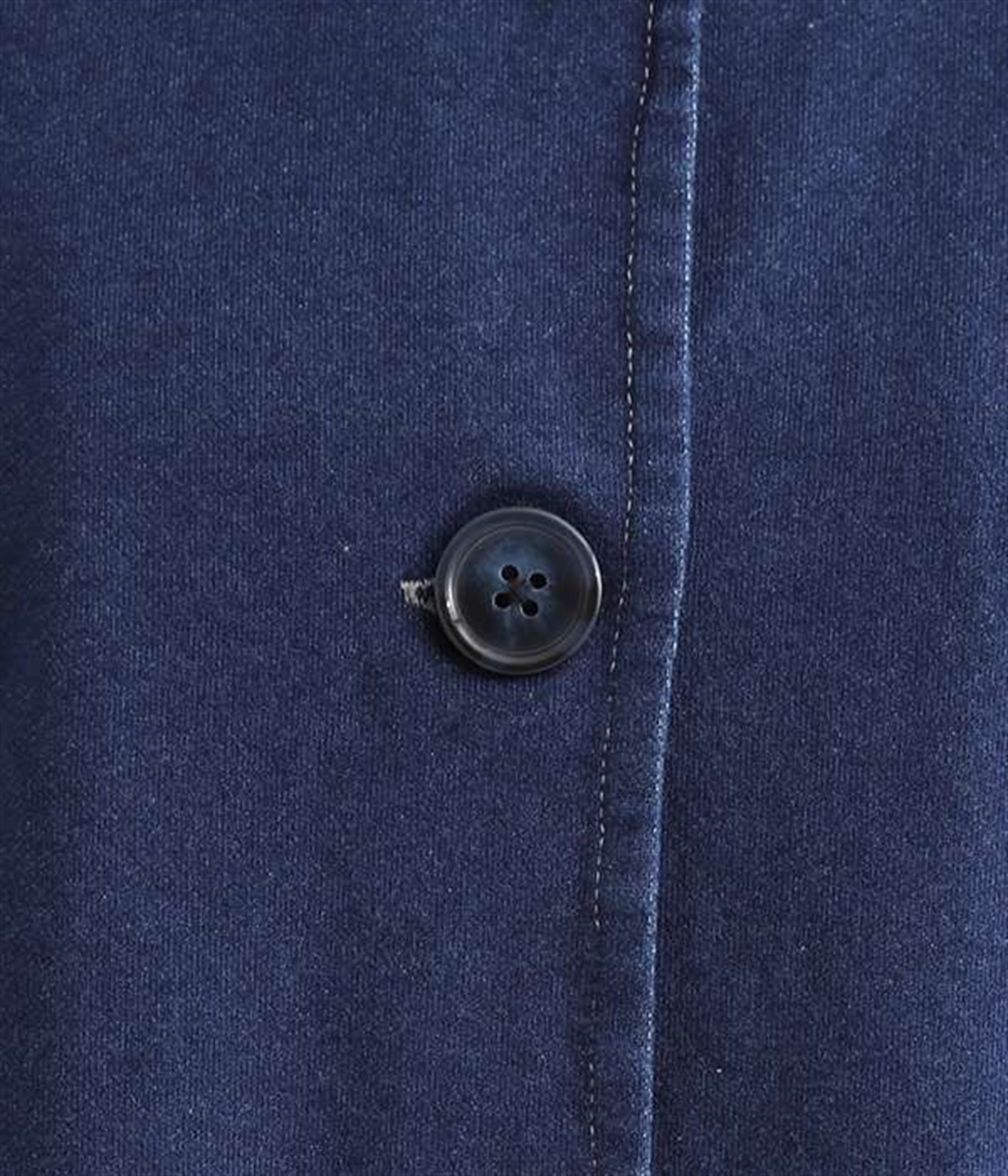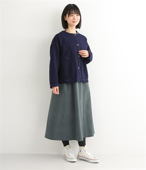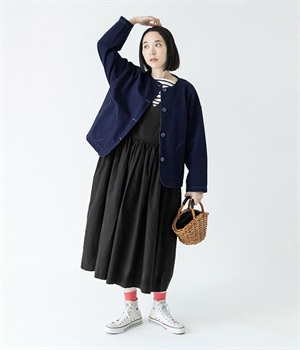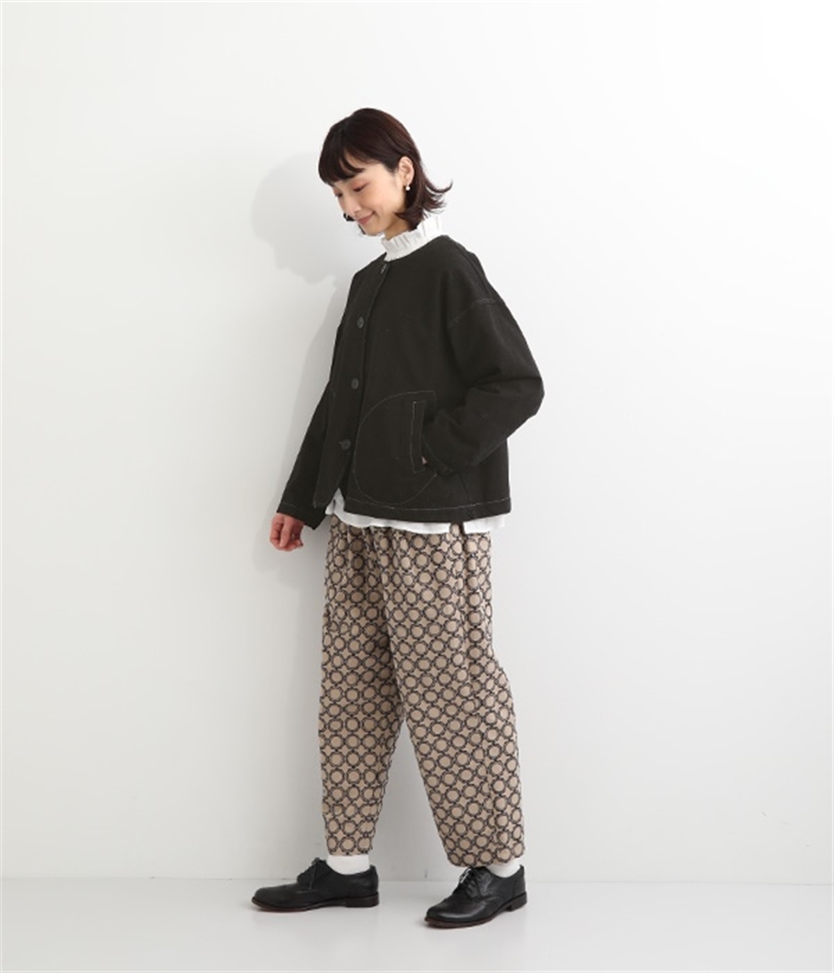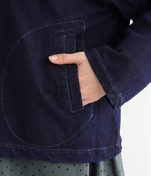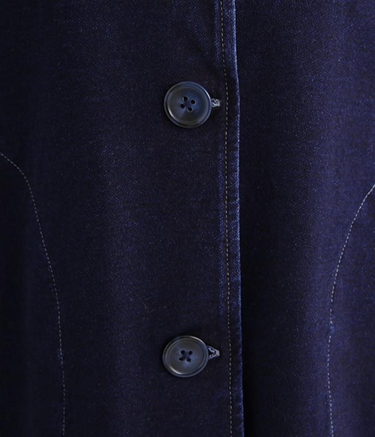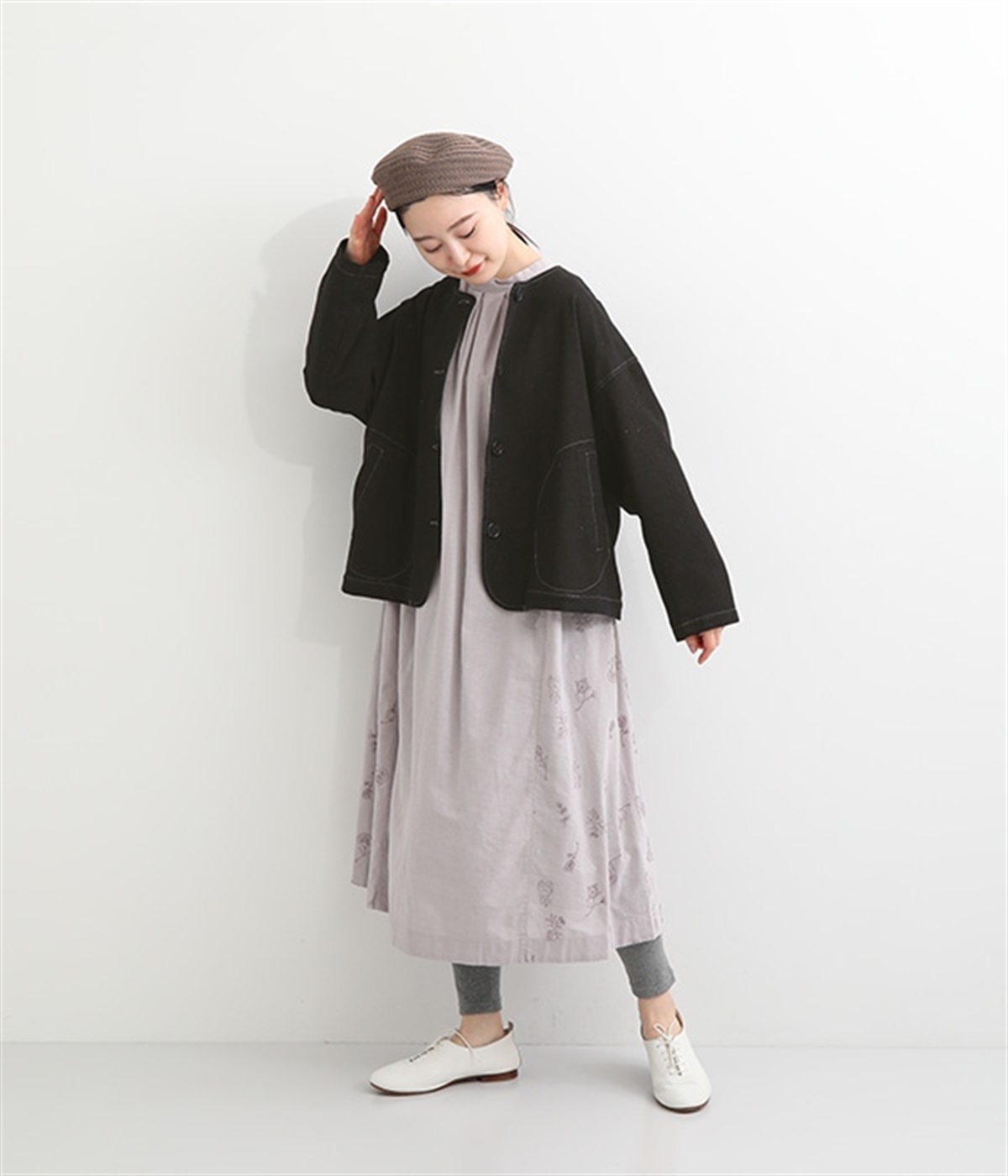 裏毛生地を使用したデニムジャケットです。ストレッチがきいているので動きやすく、ストレスフリーの着心地が楽しめます。顔まわりをすっきりと見せるノーカラーと、ポケットのステッチがポイント。タートルニットやフリルカラーのブラウスとの相性も抜群です。季節の変わり目にはもちろん、ストールやマフラーを合わせれば肌寒い日にも活躍します。