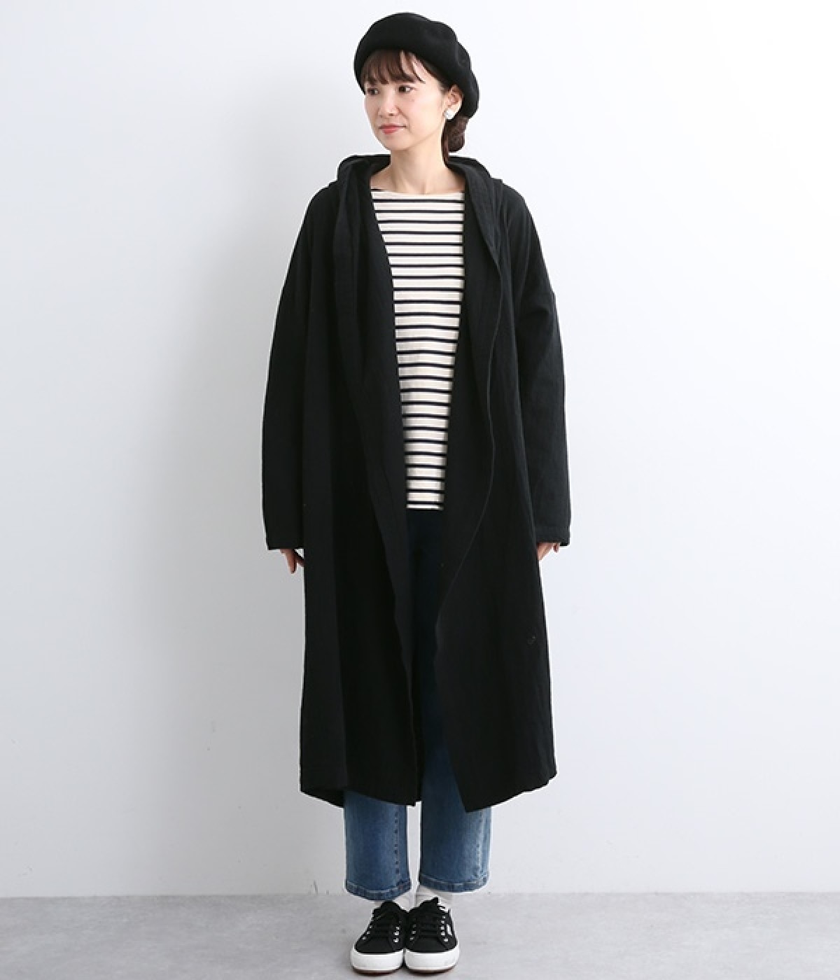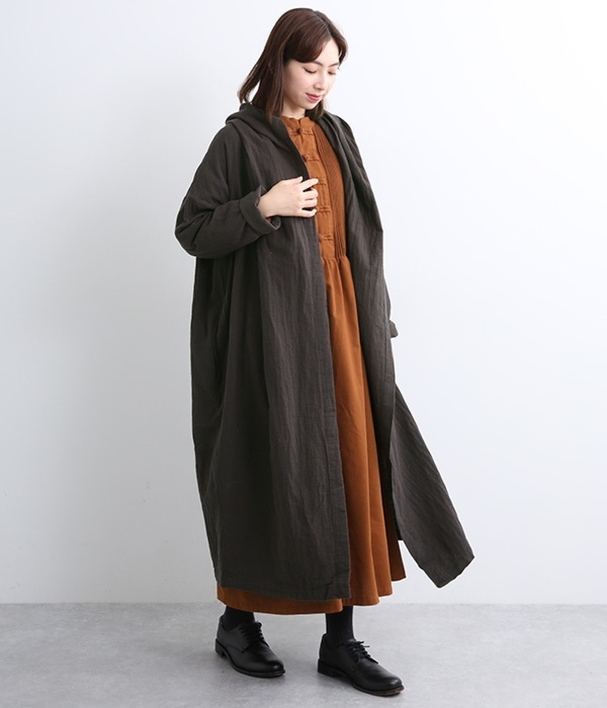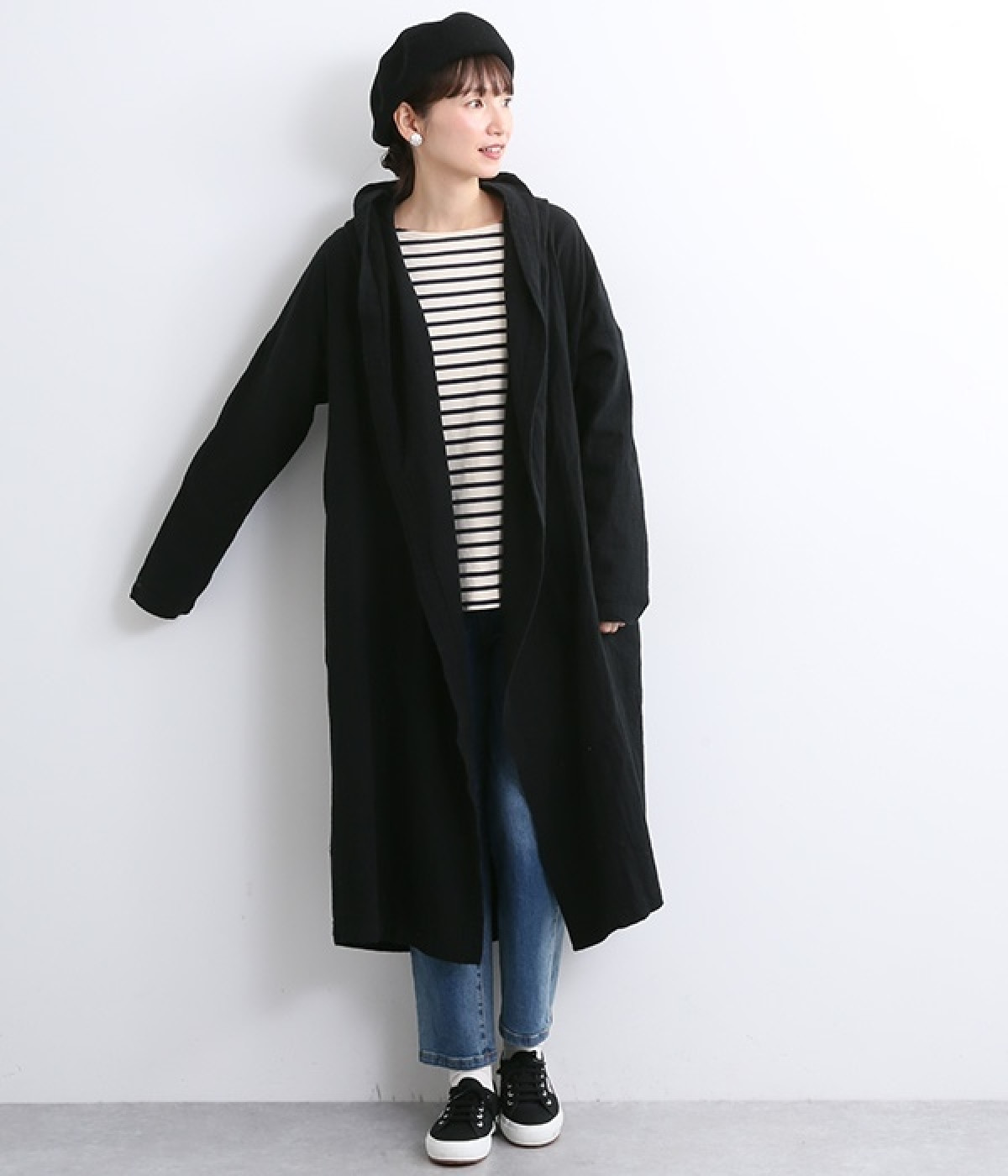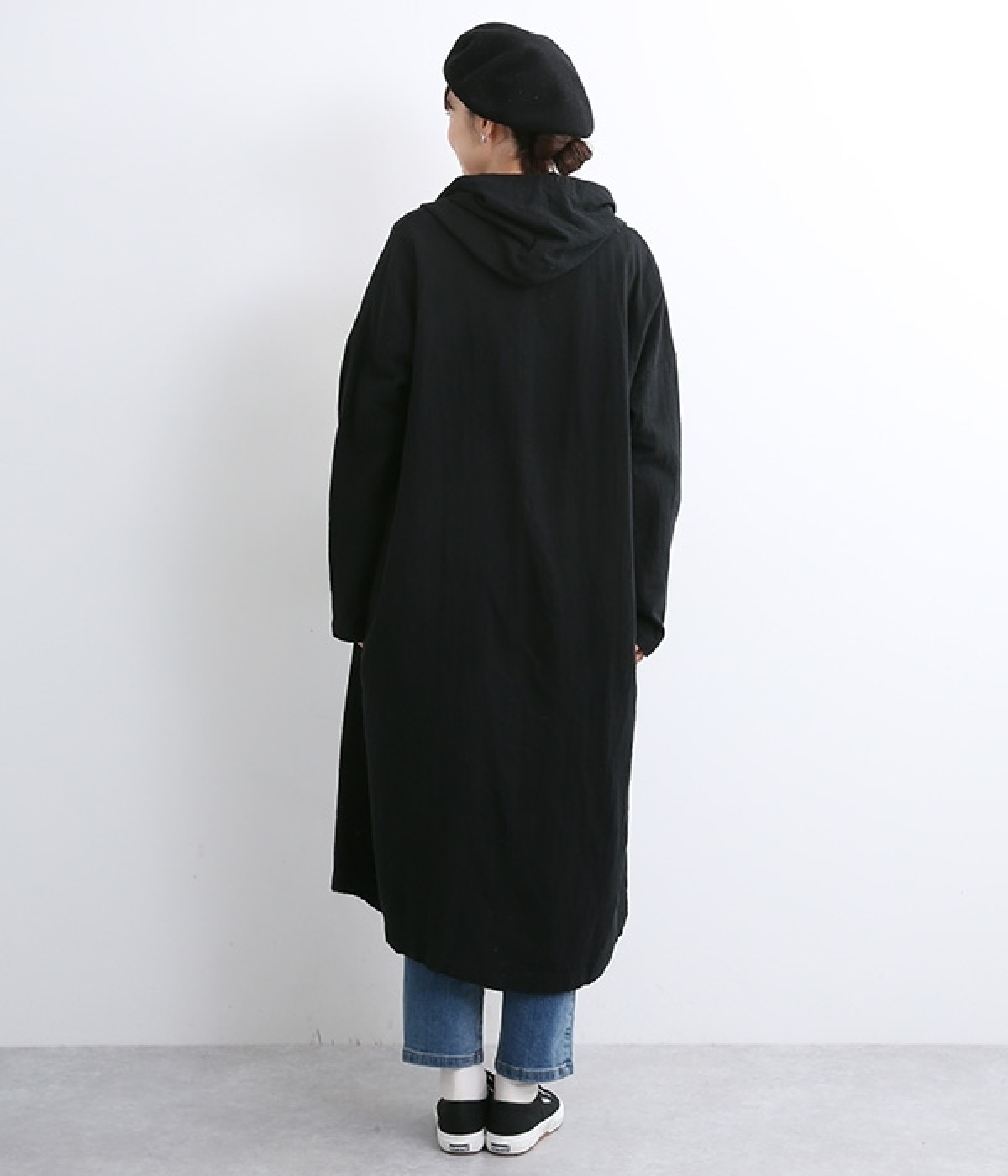 こなれ感がただようリラックスシルエットのフードつきコートです。保温性や通気性に優れた、ややハリのあるコットンリネン素材を使用。縦のラインを強調するロング丈が全体をすっきりと見せてくれます。ショールを掛けたような襟のドレープ感は、大人っぽいニュアンスがたっぷり。ボタンレスなのでカーディガン感覚で気軽に羽織れるライトアウターです。