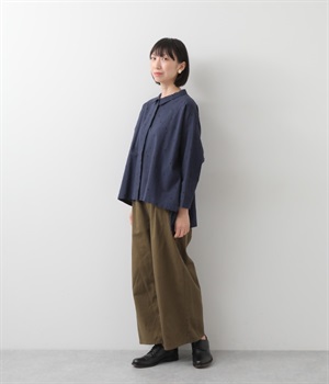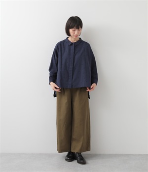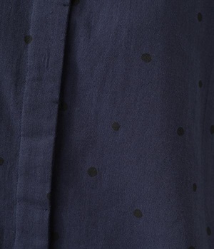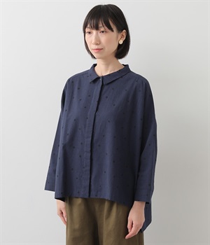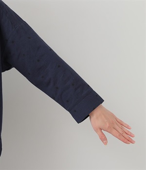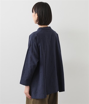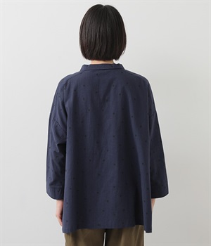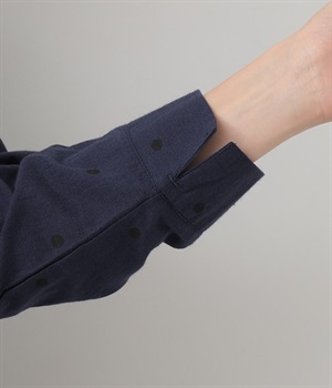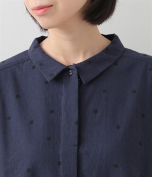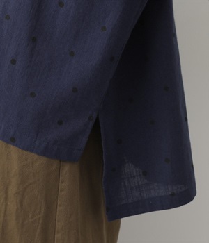 ゆらぎのある絶妙なバランスで配置された、人気のドット柄シャツ。ひとつひとつの間隔にこだわって描いた、あたたかみが伝わるオリジナル生地です。ほどよい厚みのあるコットン生地でシルエットがきれいに保たれ、気軽なお出かけスタイルもサマになります。柄の表情を活かすため前ボタンは比翼仕立てにしてシンプルに。後ろ裾を長くしているので、ボトムインせずにラフに着こなしてもニュアンスが出ておすすめです。