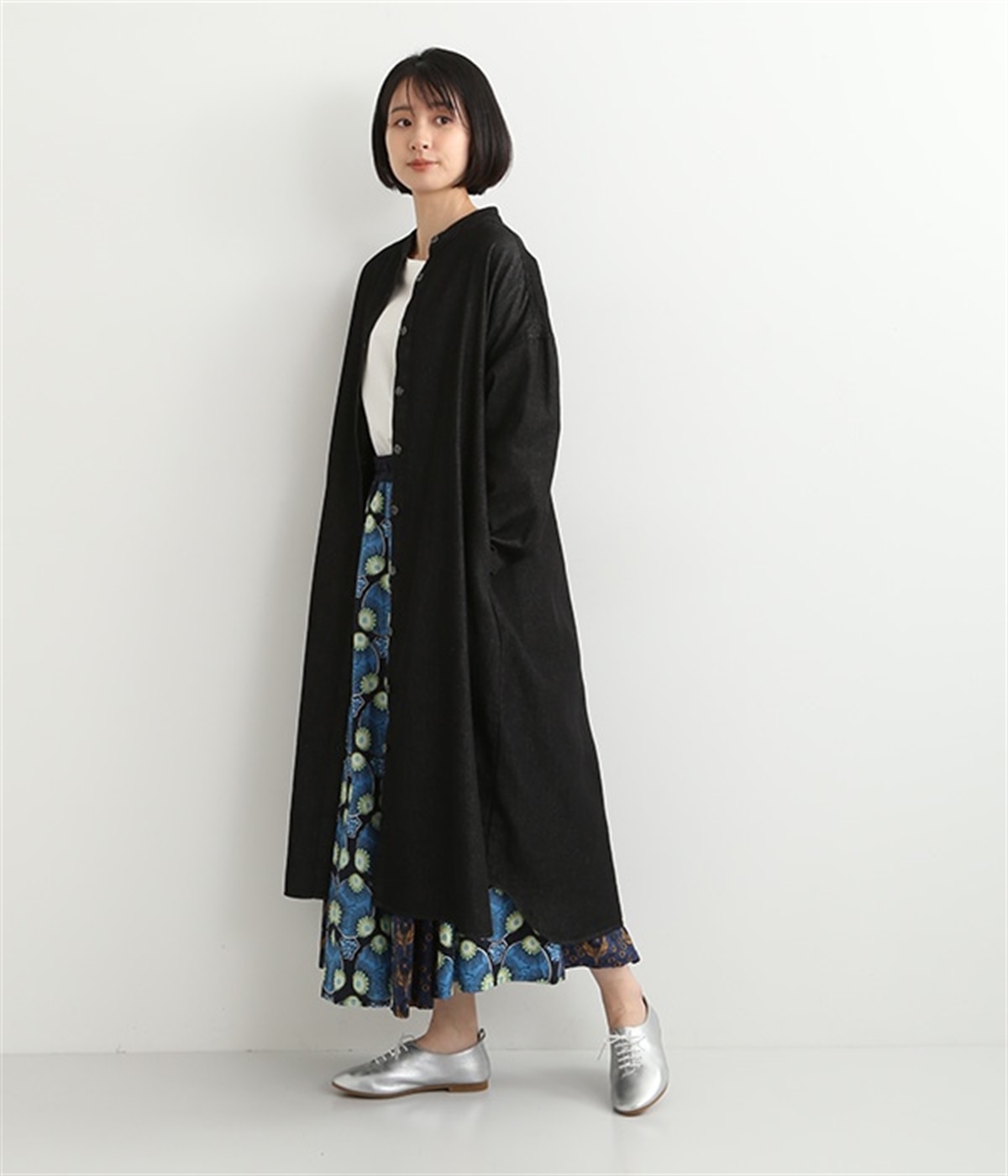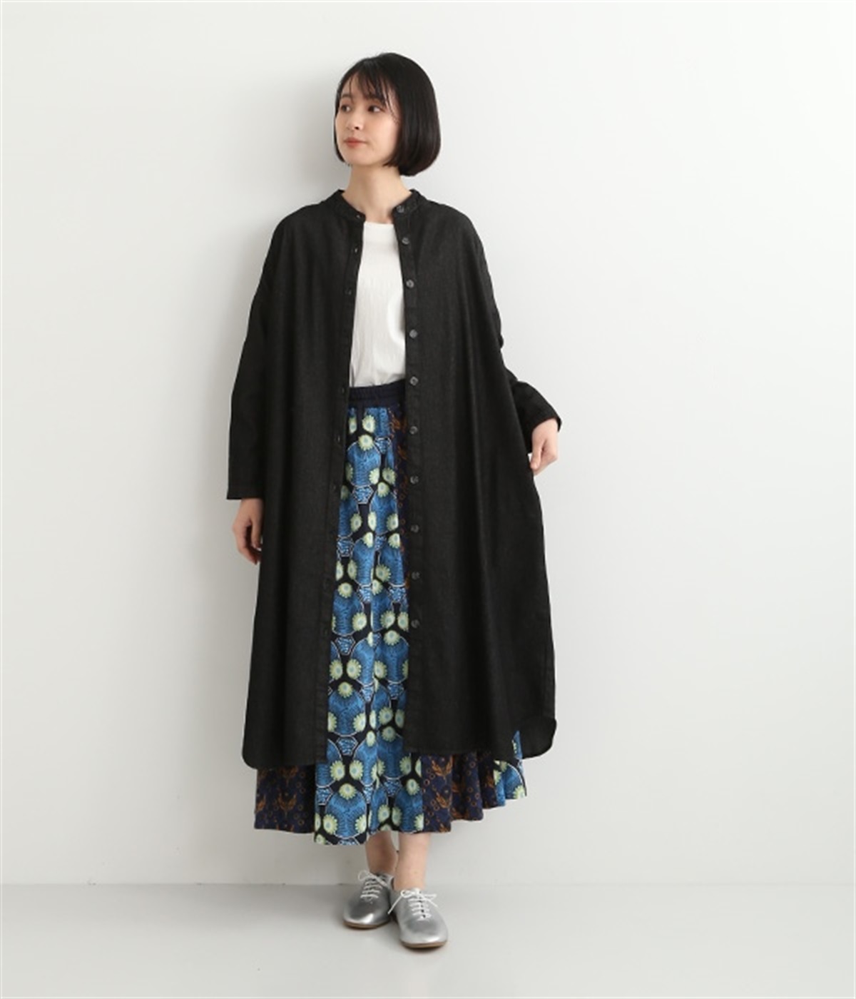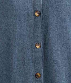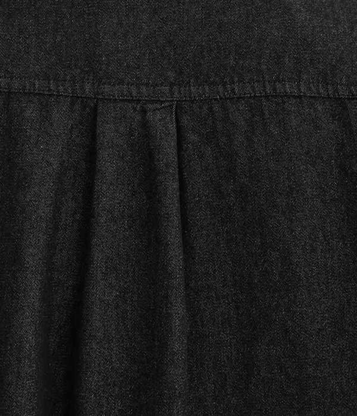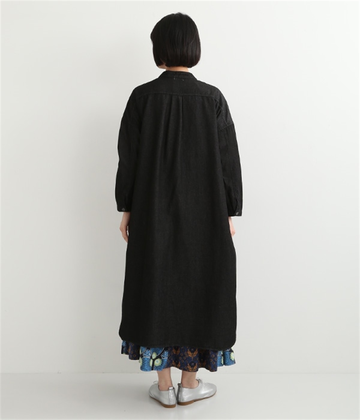 コットンのサラッとした風合いが特徴的なデニムワンピースです。首元はすっきりとしたバンドカラーに、べっ甲柄のボタンがアクセントになった前開きタイプ。身幅も広くゆったりと着ることができます。前開きで羽織として取り入れるのもおすすめで、様々な着こなしでロングシーズン活躍しそうです。