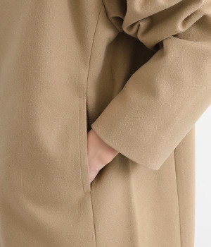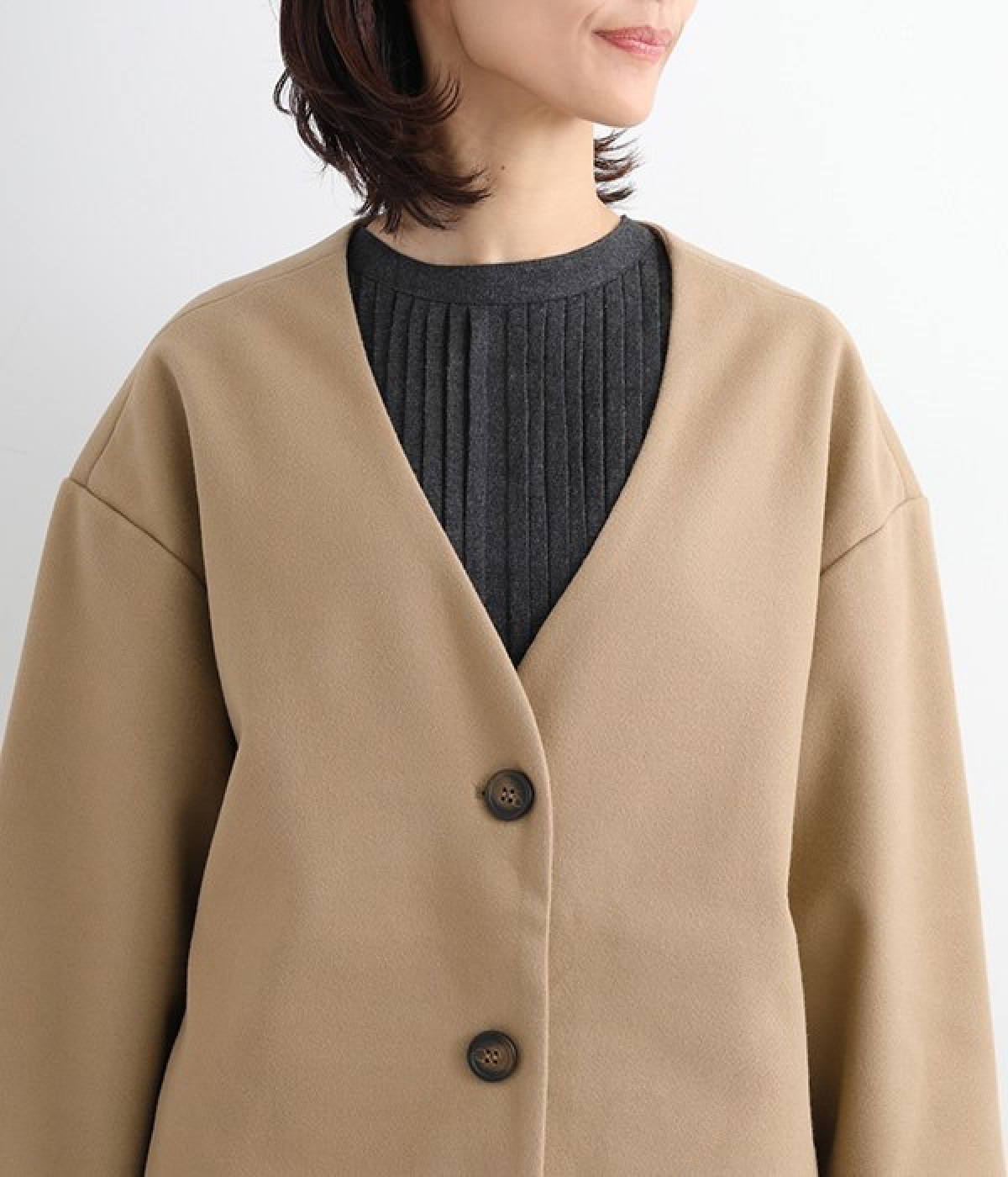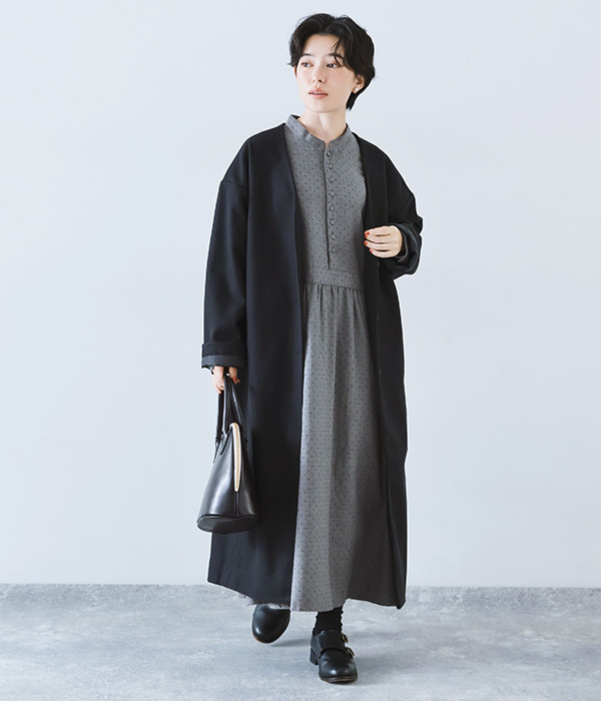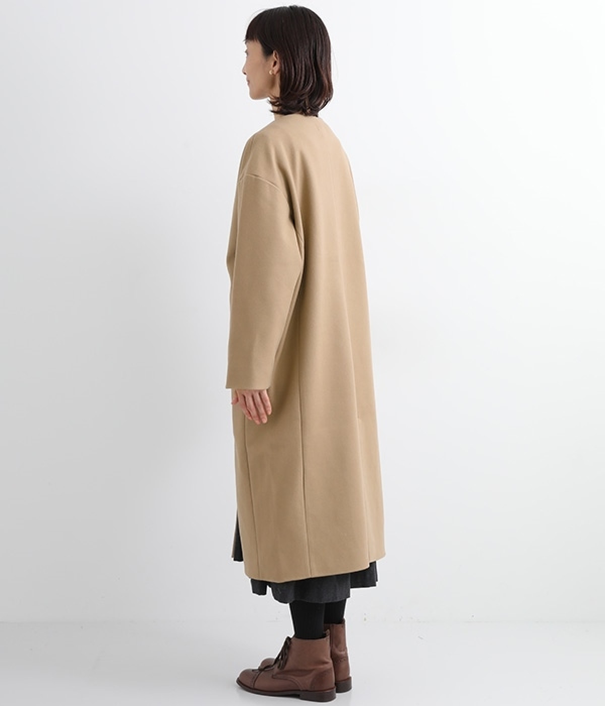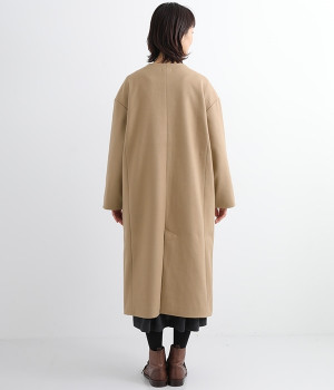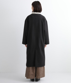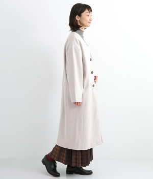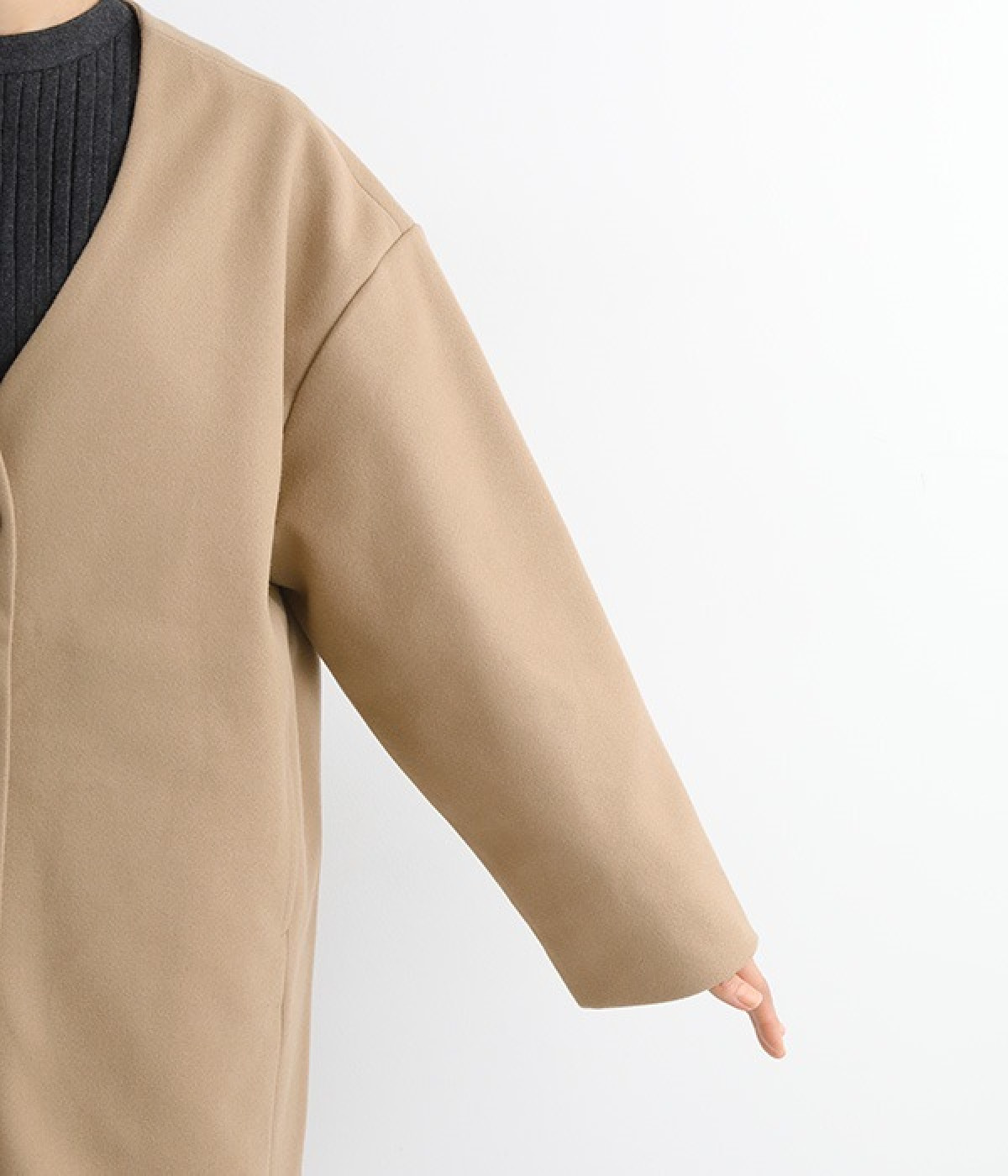 あたたかみのあるウールの風合いに寄せたロングコート。タテのラインを引き立てるストレートシルエットは、カジュアルだけでなくきれいめの装いにもぴったりです。深めのV開き、バックスリットなどロング丈でも開放的に見せる要素を盛り込みました。ボディにも袖にもインナー生地とのすべりを促す裏地をセット。ボリュームのあるマフラーやスヌードも合わせやすい、Vカラーデザインです。