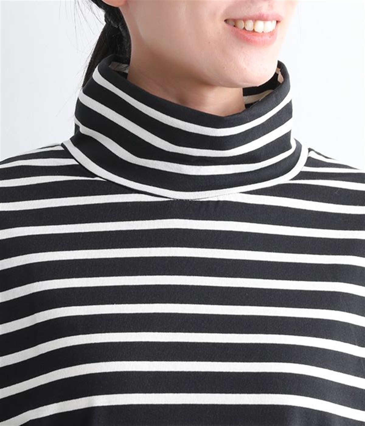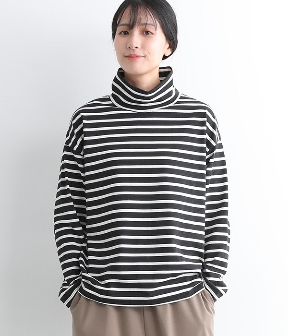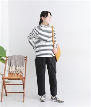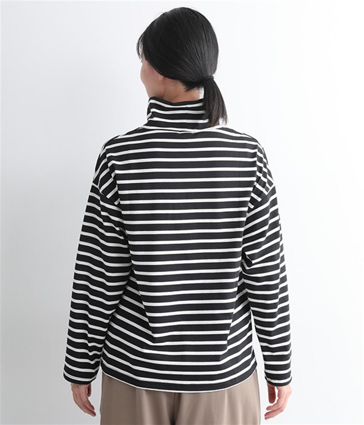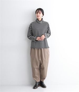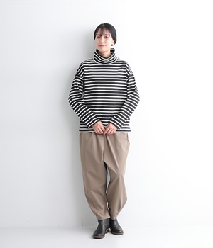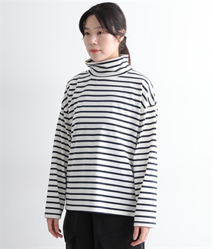 やわらかくナチュラルな質感のコットン混生地で仕立てたプルオーバー。ハイネックはゆったりとしたサイズ感にして、肌に直接触れにくいようにデザインしています。やや肩落ちしたラインやワイドな身幅と、ストレスフリーな着心地を意識。薄地で着まわしやすいので単体で主役使いはもちろんのこと、重ね着にも使えるオールマイティな一枚です。