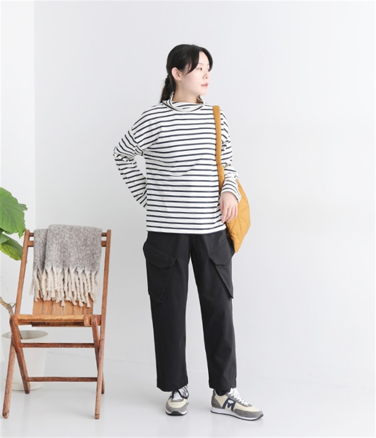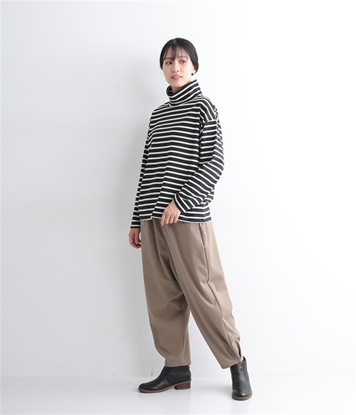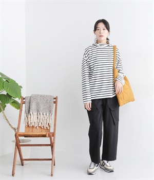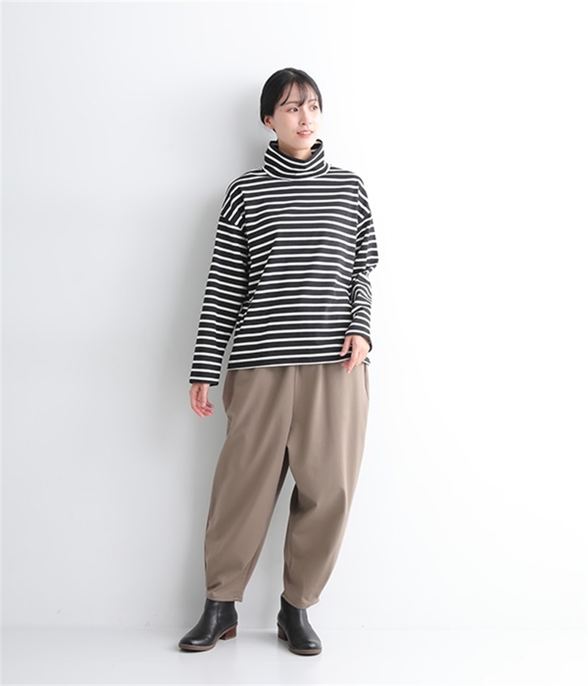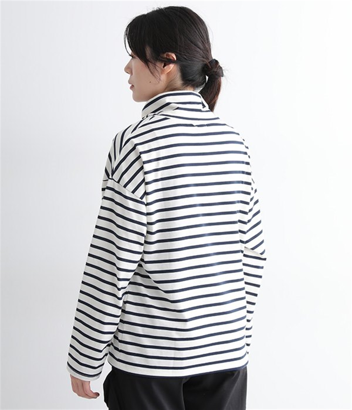 やわらかくナチュラルな質感のコットン混生地で仕立てたプルオーバー。ハイネックはゆったりとしたサイズ感にして、肌に直接触れにくいようにデザインしています。やや肩落ちしたラインやワイドな身幅と、ストレスフリーな着心地を意識。薄地で着まわしやすいので単体で主役使いはもちろんのこと、重ね着にも使えるオールマイティな一枚です。