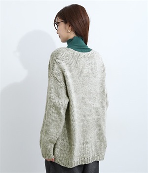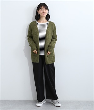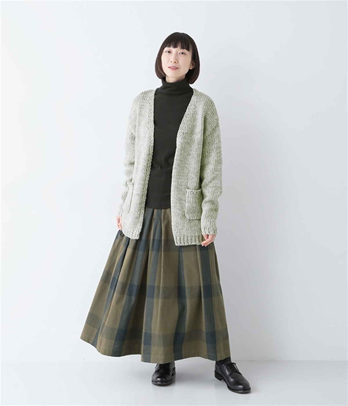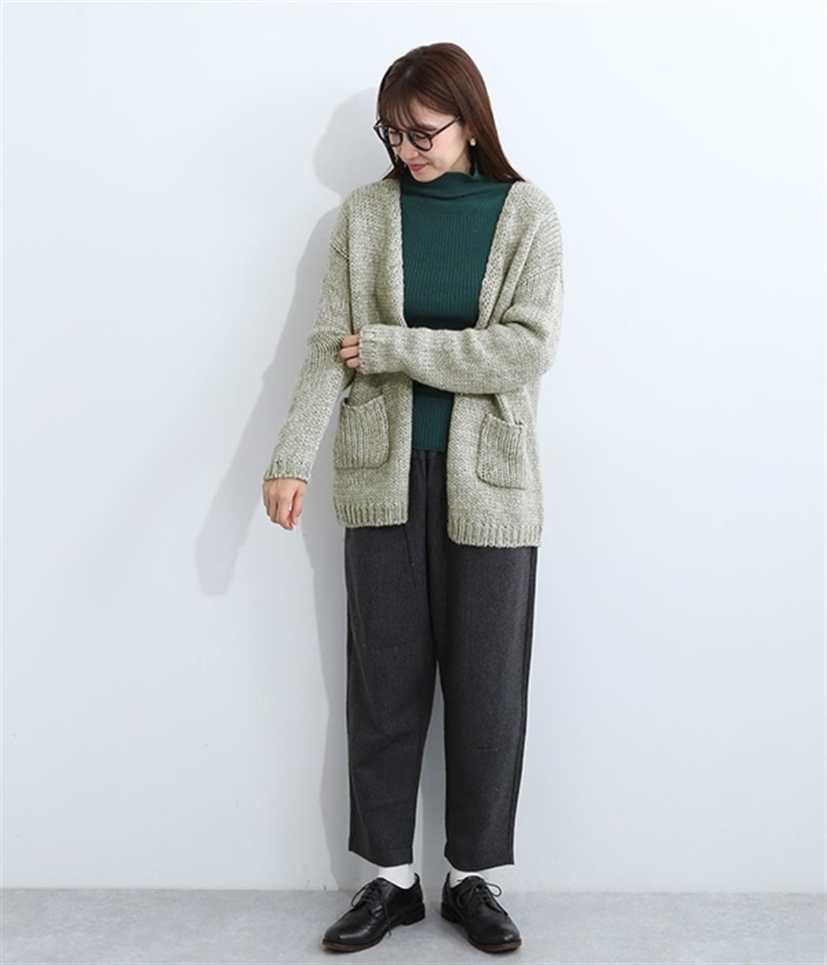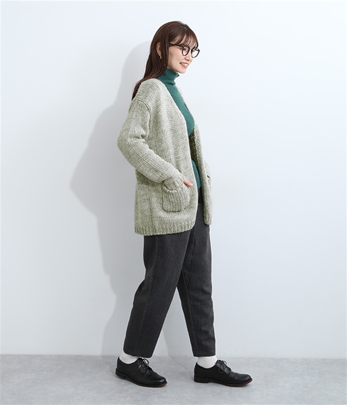 スラブヤーン特有の節を感じ、ナチュラルな風合いが楽しめるニットカーディガン。体をそっと包み込むような、やわらかくあたたかみのある着心地です。目が詰まっていないざっくり感が特徴で、ニットスタイルにカジュアルさを持たせたいときにおすすめ。フロントはボタンのない開放的なデザインでさっと羽織れ、おでかけだけでなくおうちでの防寒対策用にも◎。左右に添えたパッチポケットも細かな手まわり品を入れるのに便利です。