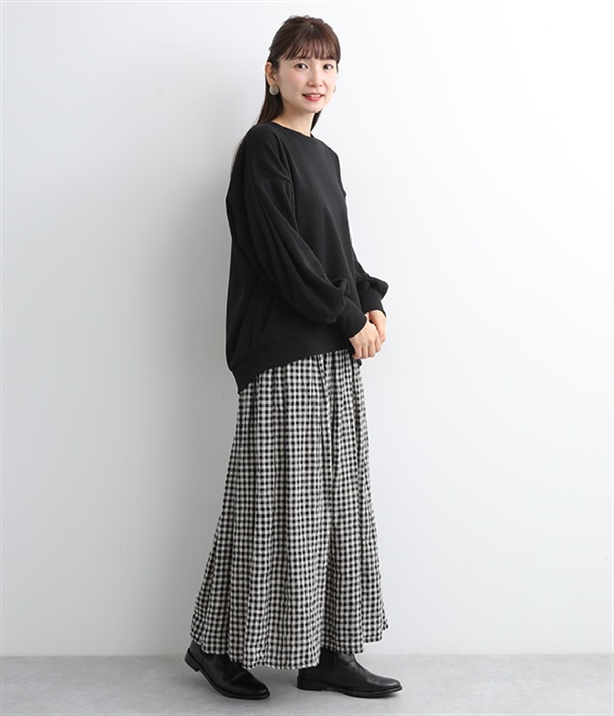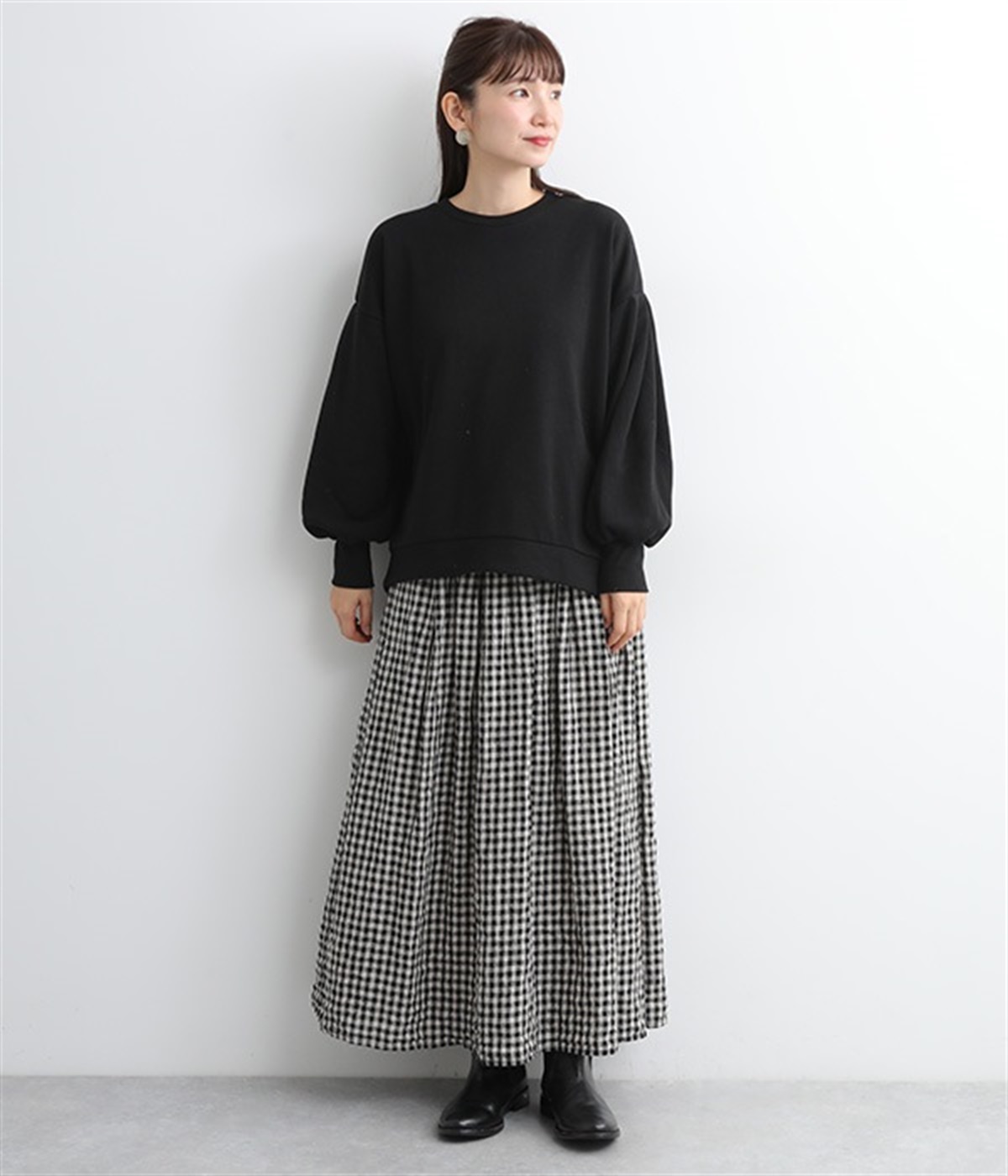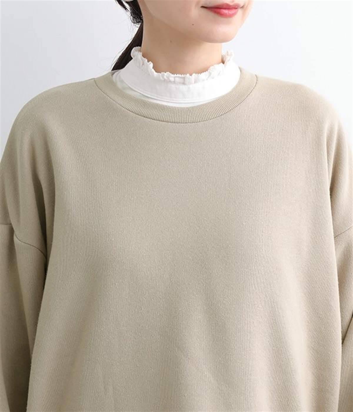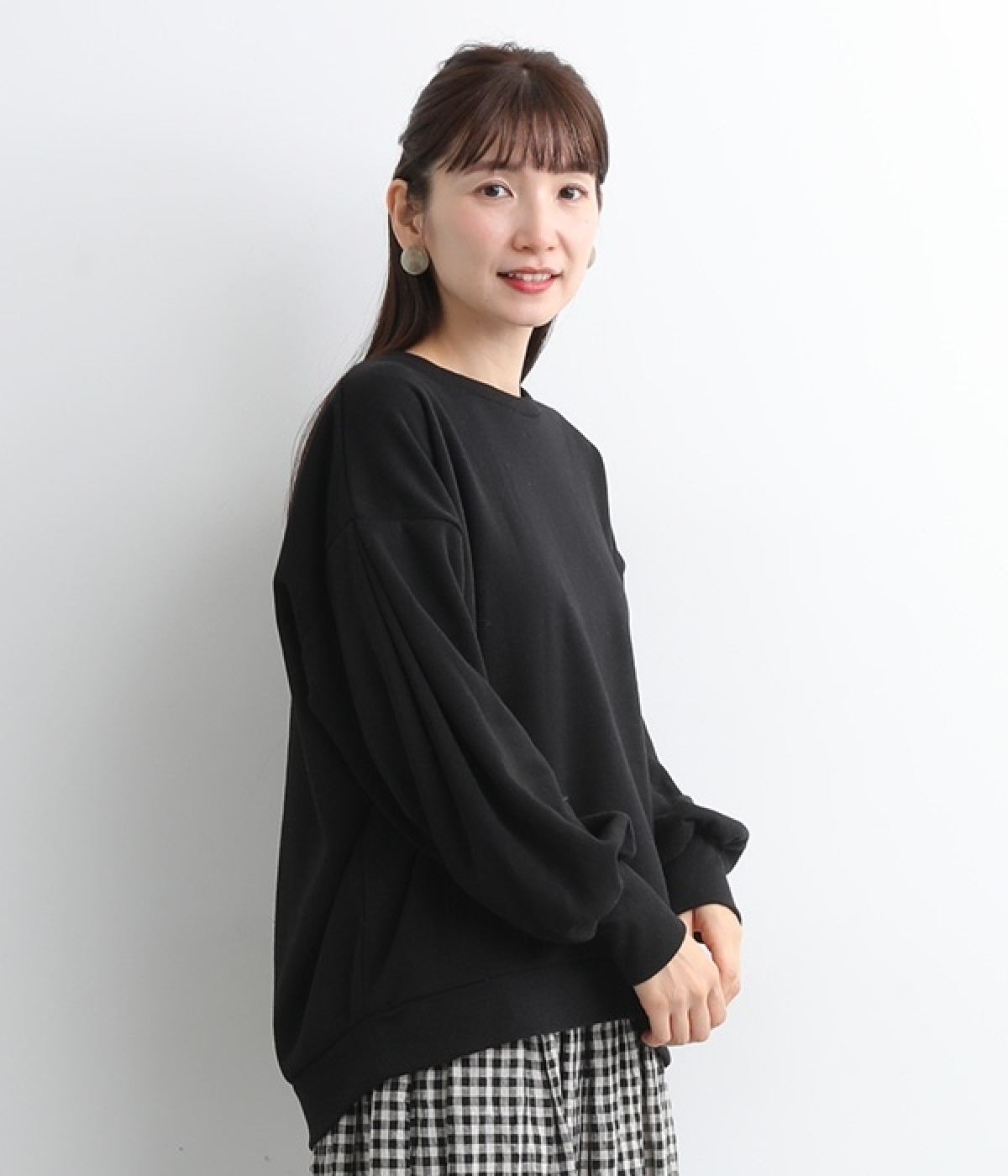 裏起毛加工を施した、あたたかくやさしい肌触りのプルオーバーです。バルーンスリーブがポイントで、カジュアルなスウェット生地にかわいらしさを添えています。ほどよい厚みとハリがあり、シルエットがすっきりと出るのもうれしいポイント。合わせるボトムを選ばない形でさまざまなコーディネートに活躍してくれます。