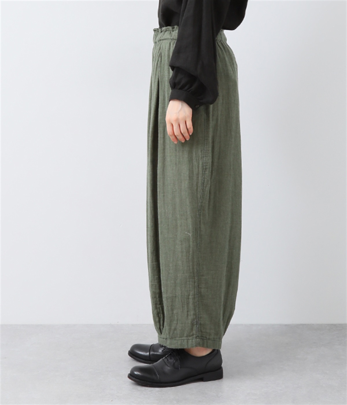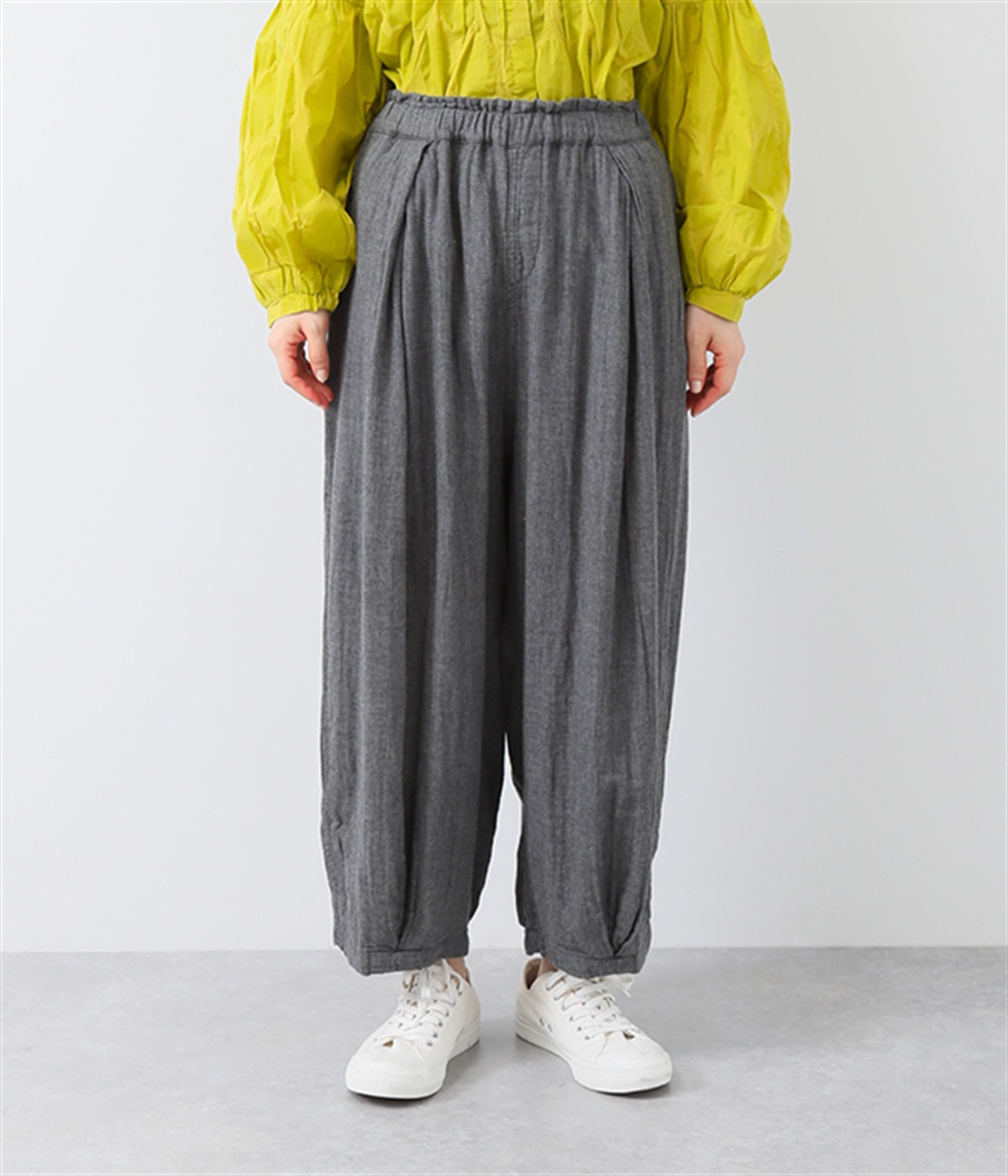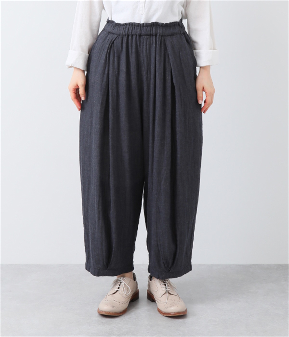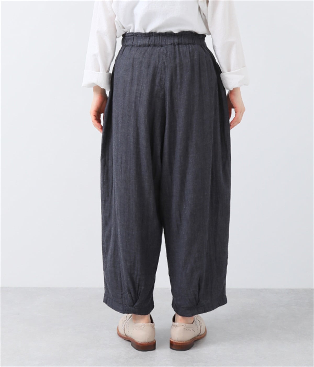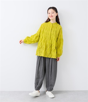 裾タックでシルエットを絞ったコクーンシルエット