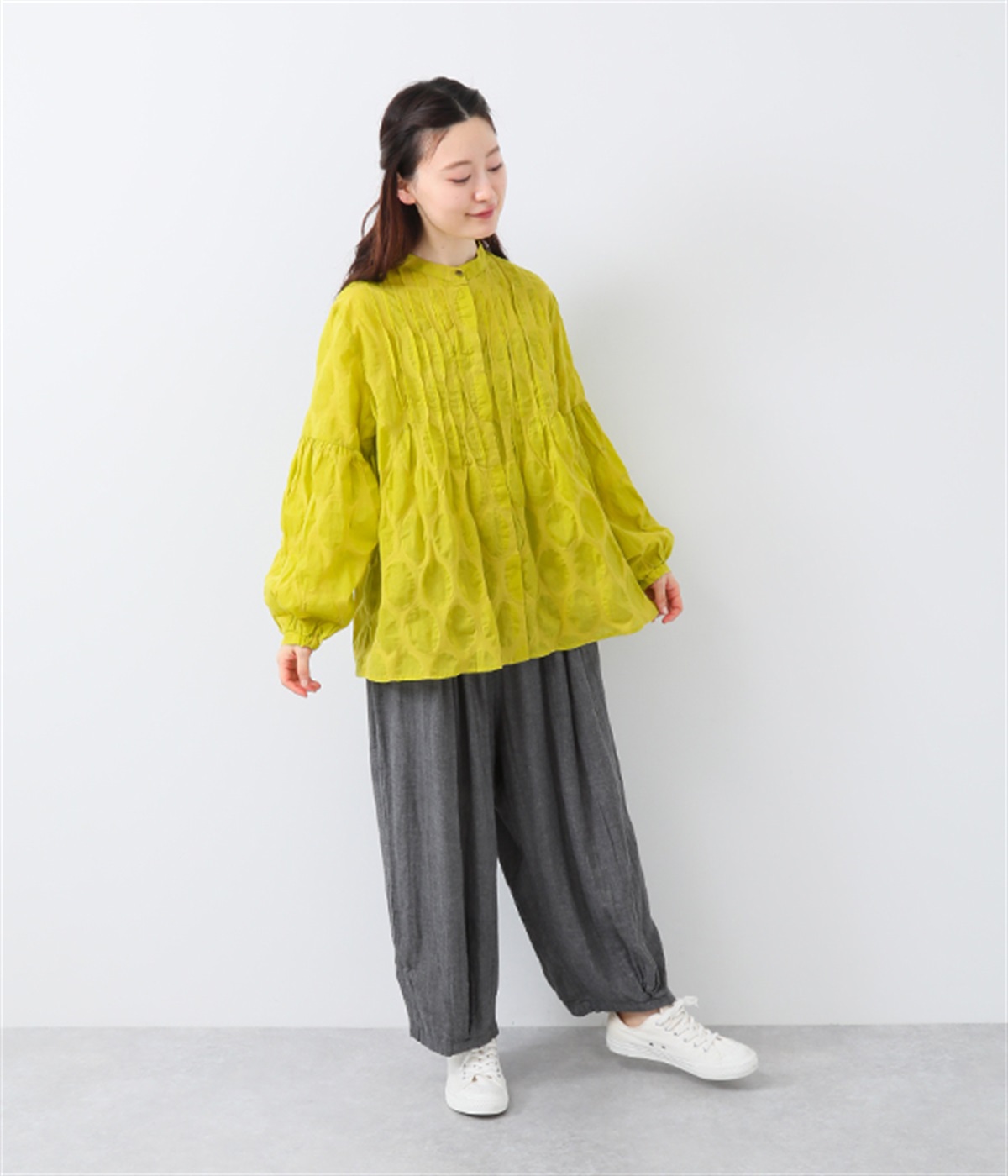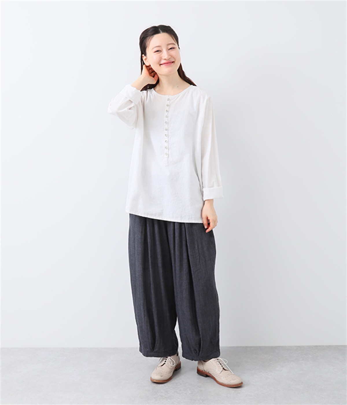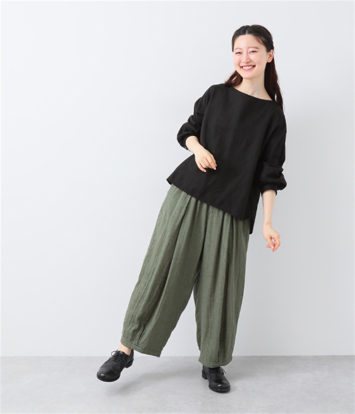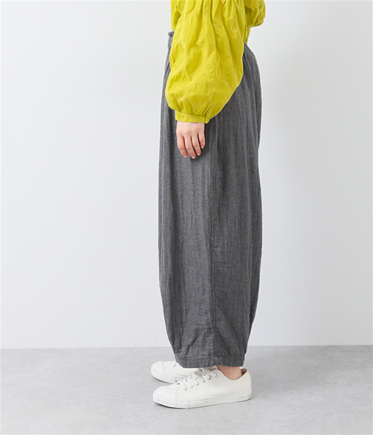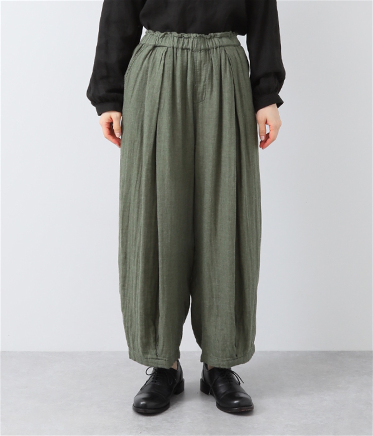 裾タックでシルエットを絞ったコクーンシルエット