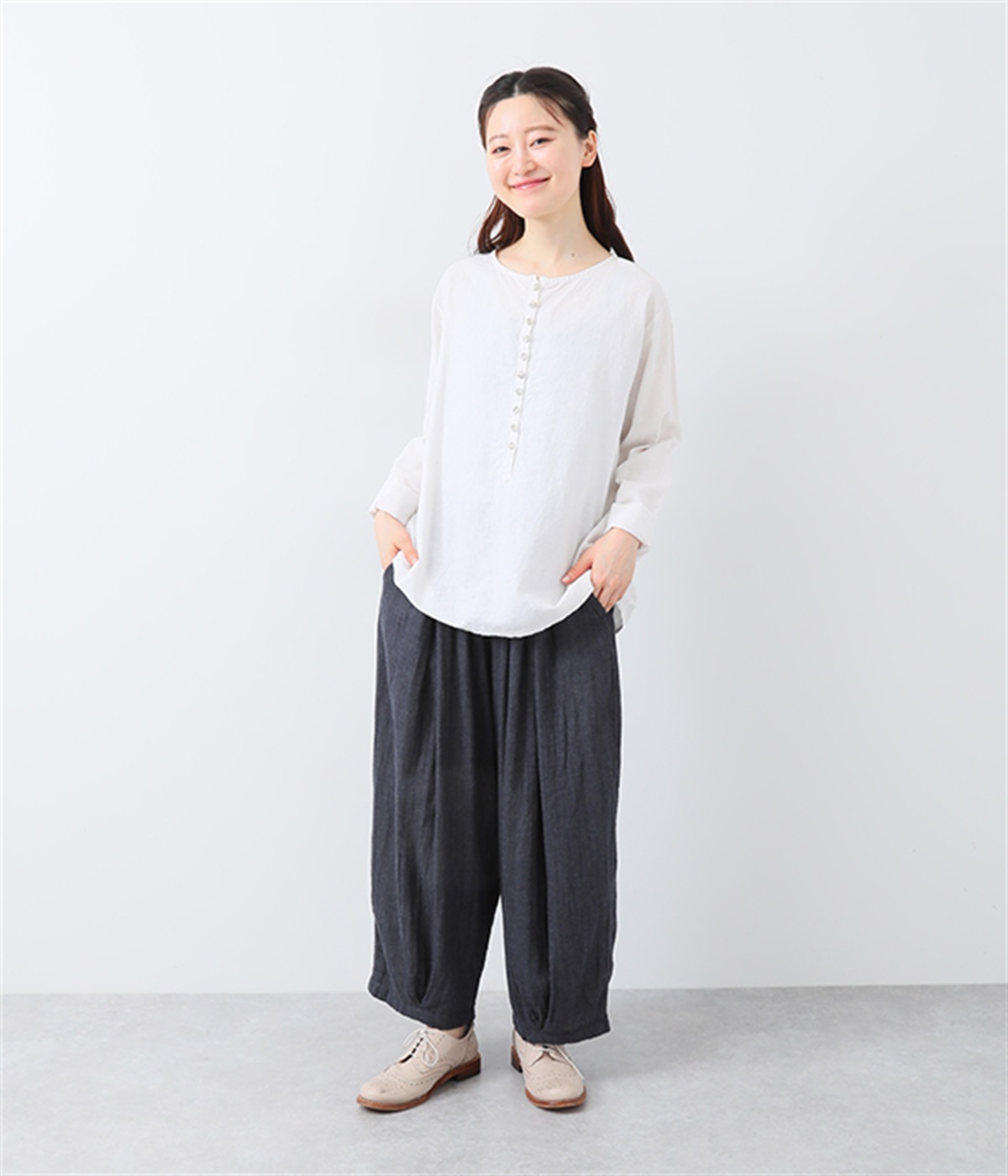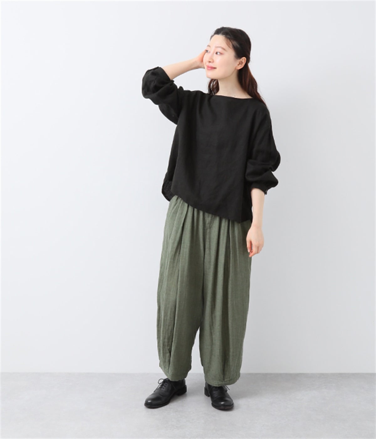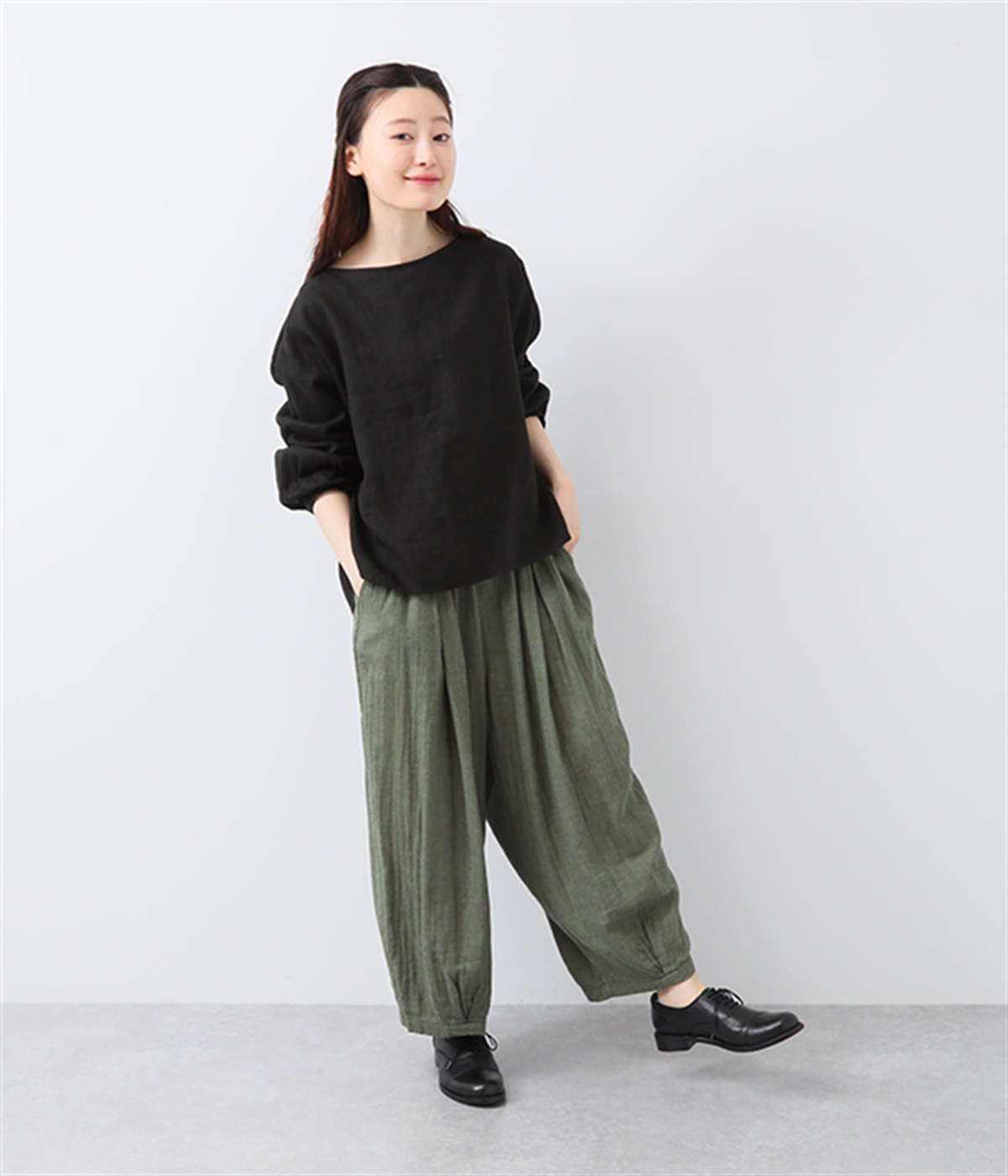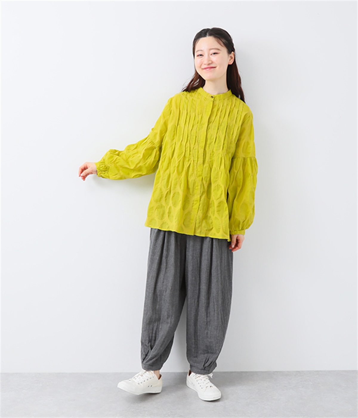 裾タックでシルエットを絞ったコクーンシルエット