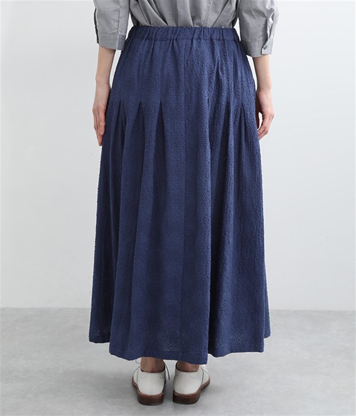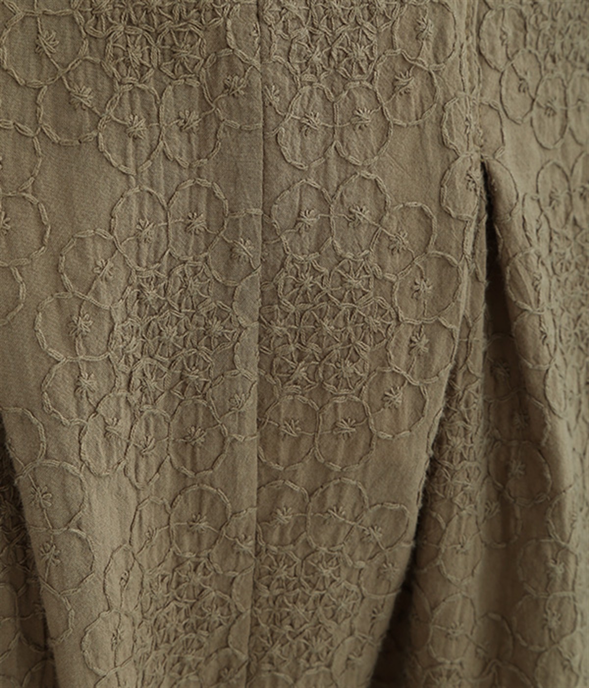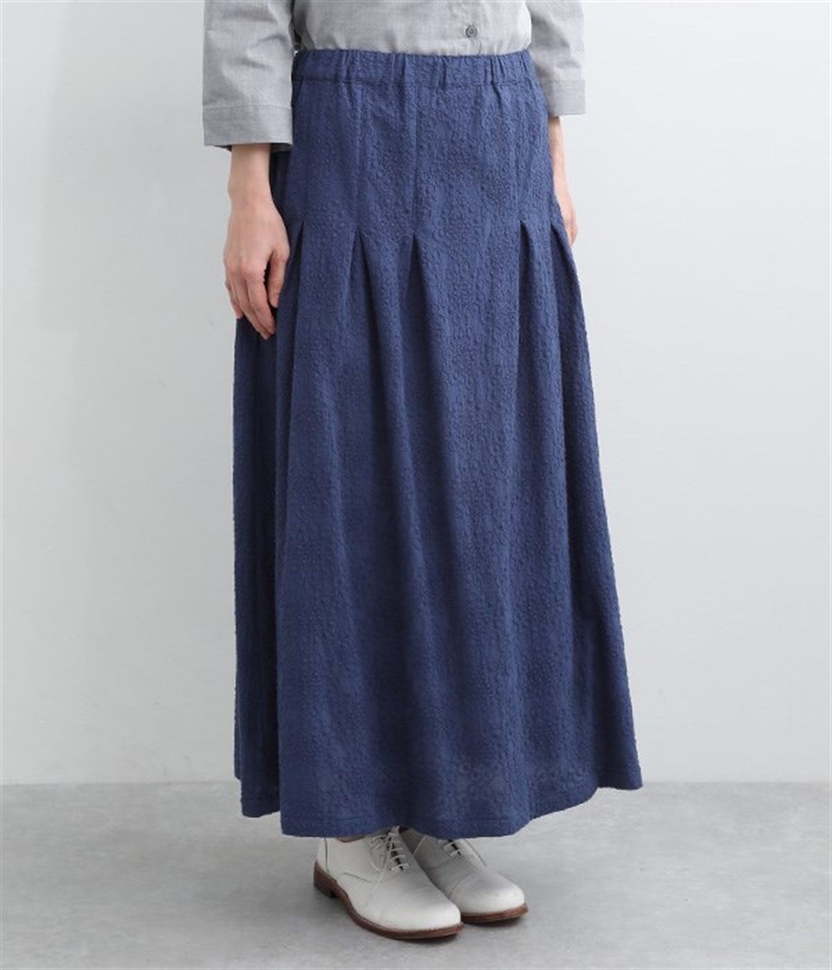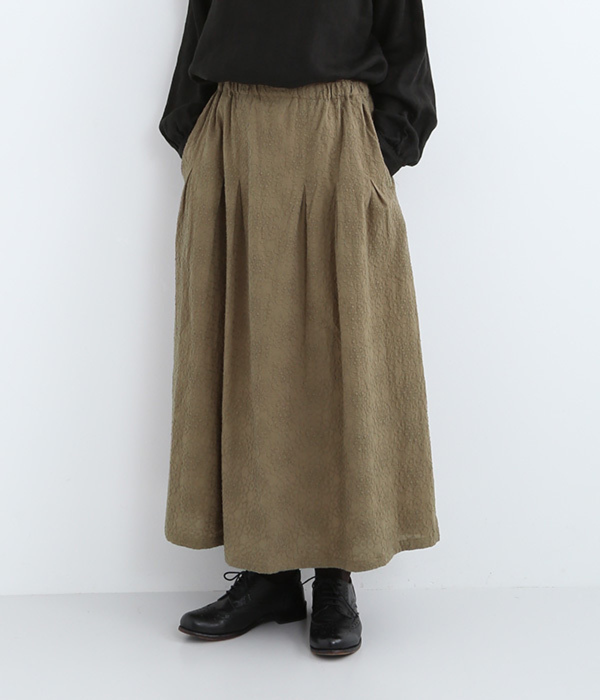 同色糸でほどこした花刺繍を全面にちりばめた表情たっぷりのコットンスカート。腰まわりをすっきり見せる長めのタックをあしらい、裾に向かってきれいなAラインの広がりを描いています。総ゴム仕様のウエストは着脱をアシストし、ストレスの少ない快適な穿き心地。内ひもを備え、フィットの調整が可能です。デイリー使いにはもちろん、ちょっとしたお出かけシーンにも華を添えてくれる一枚です。