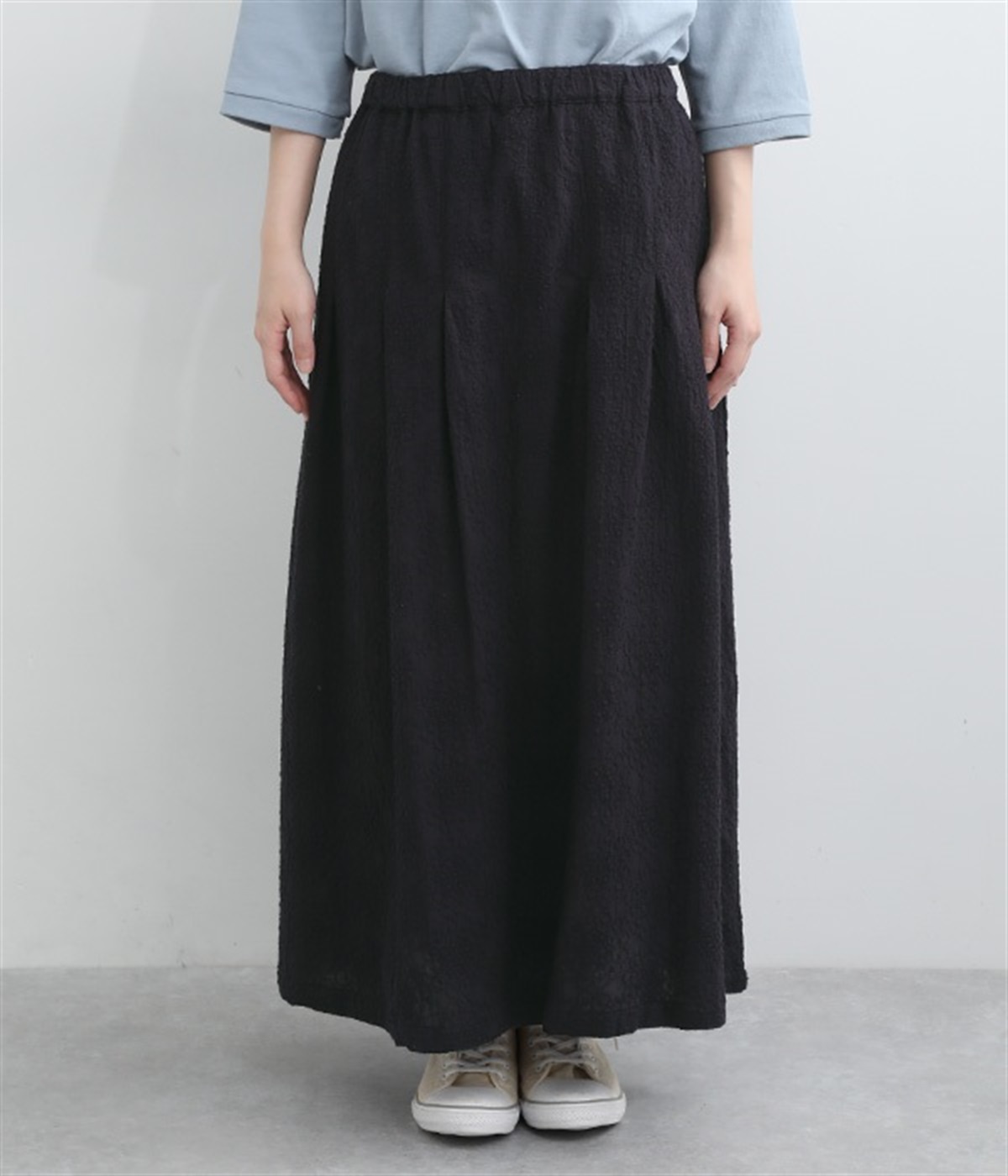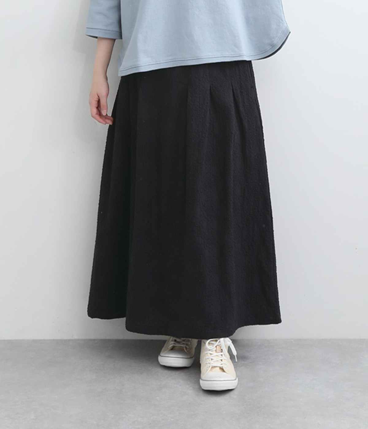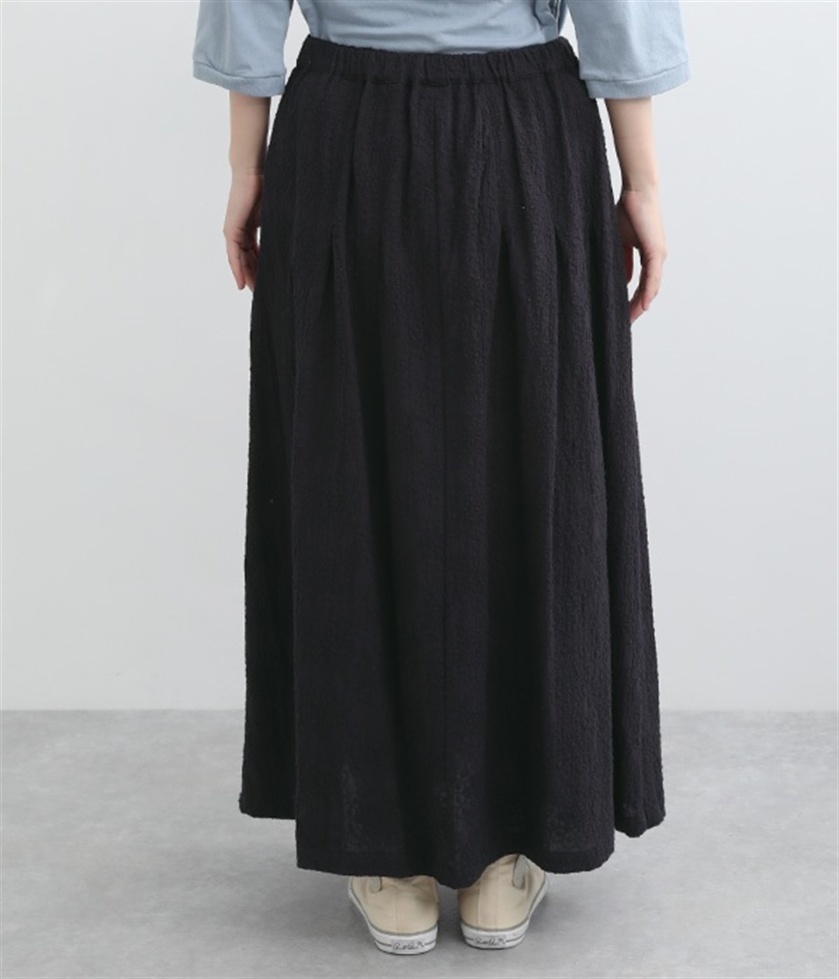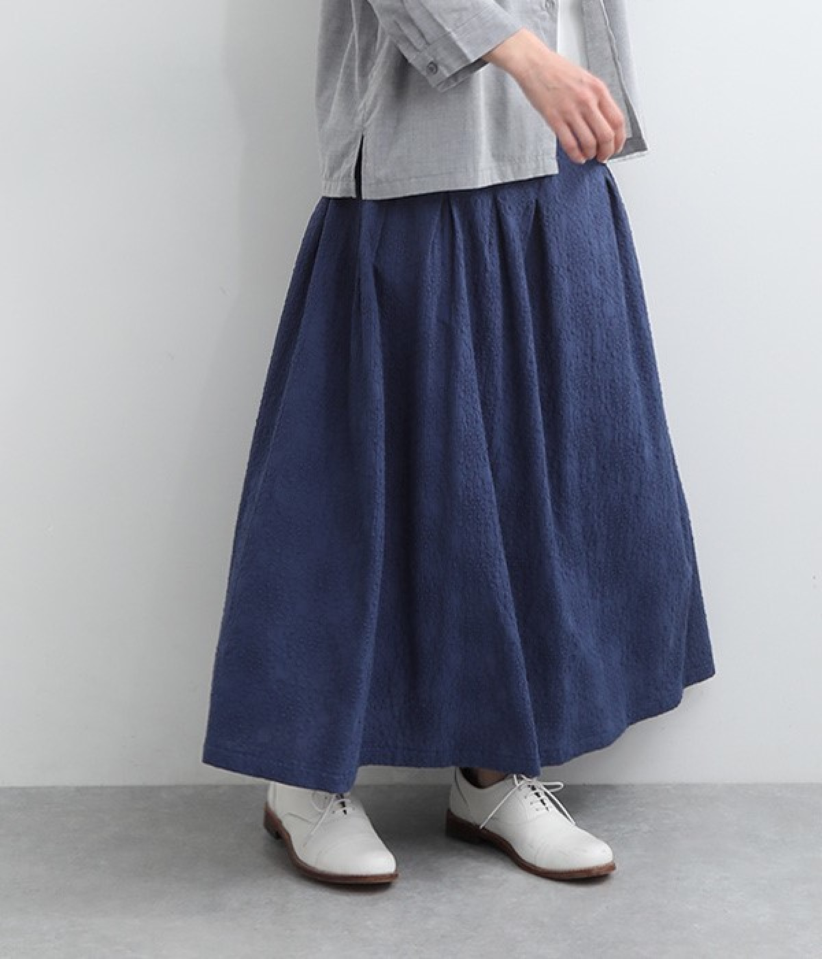 同色糸でほどこした花刺繍を全面にちりばめた表情たっぷりのコットンスカート。腰まわりをすっきり見せる長めのタックをあしらい、裾に向かってきれいなAラインの広がりを描いています。総ゴム仕様のウエストは着脱をアシストし、ストレスの少ない快適な穿き心地。内ひもを備え、フィットの調整が可能です。デイリー使いにはもちろん、ちょっとしたお出かけシーンにも華を添えてくれる一枚です。