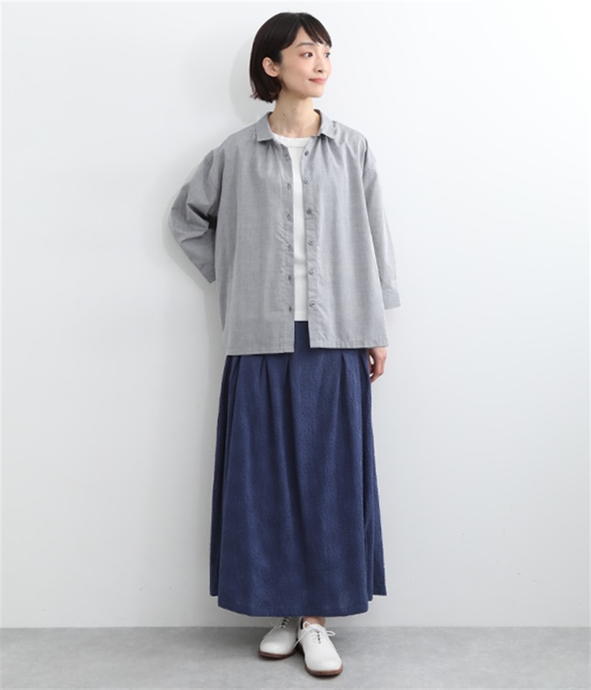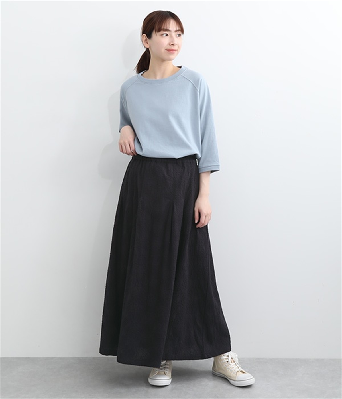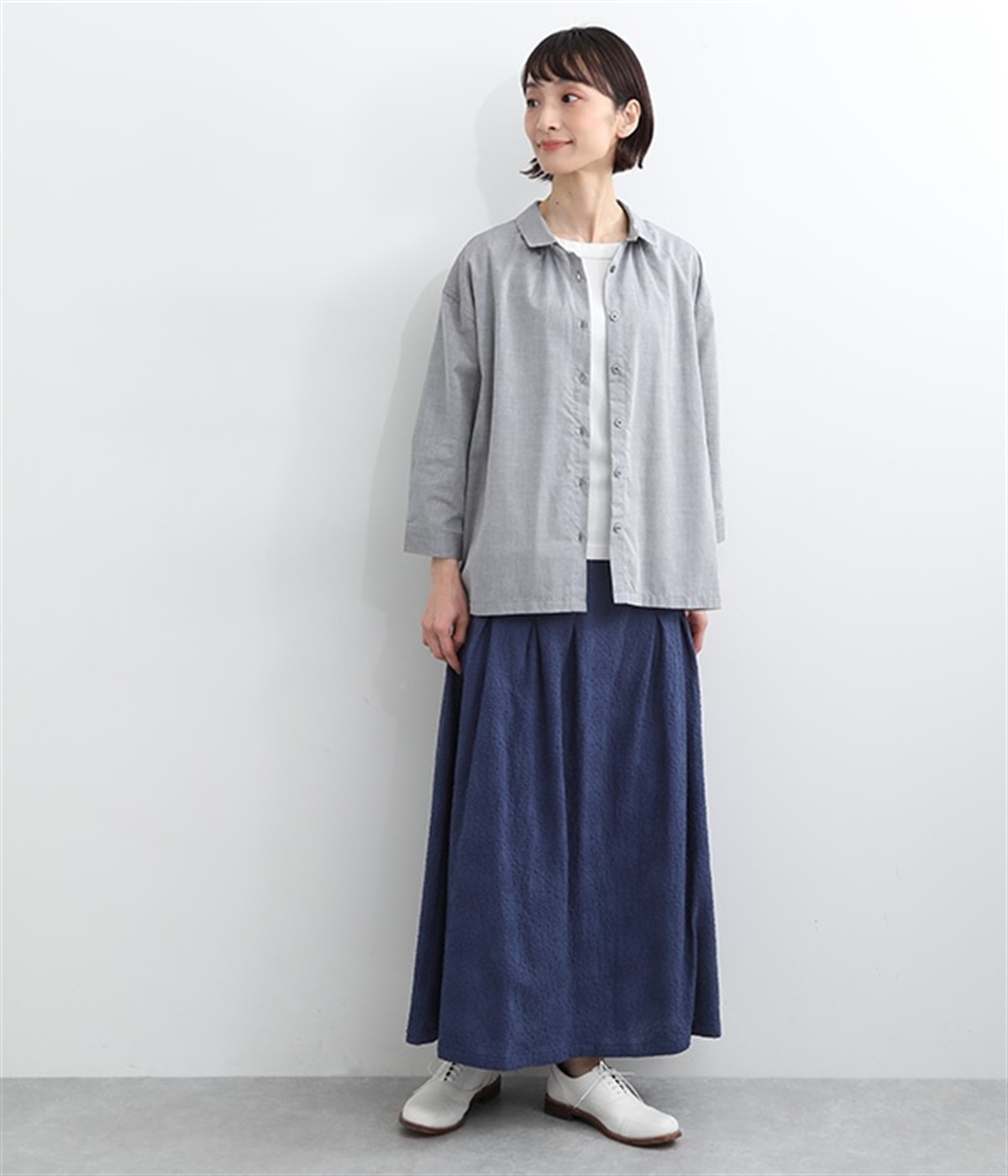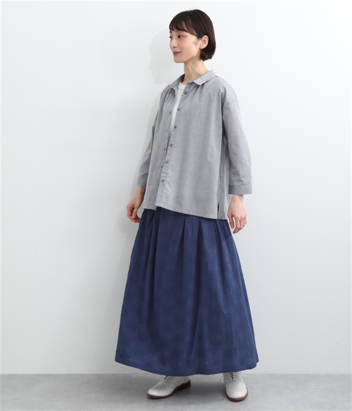 同色糸でほどこした花刺繍を全面にちりばめた表情たっぷりのコットンスカート。腰まわりをすっきり見せる長めのタックをあしらい、裾に向かってきれいなAラインの広がりを描いています。総ゴム仕様のウエストは着脱をアシストし、ストレスの少ない快適な穿き心地。内ひもを備え、フィットの調整が可能です。デイリー使いにはもちろん、ちょっとしたお出かけシーンにも華を添えてくれる一枚です。