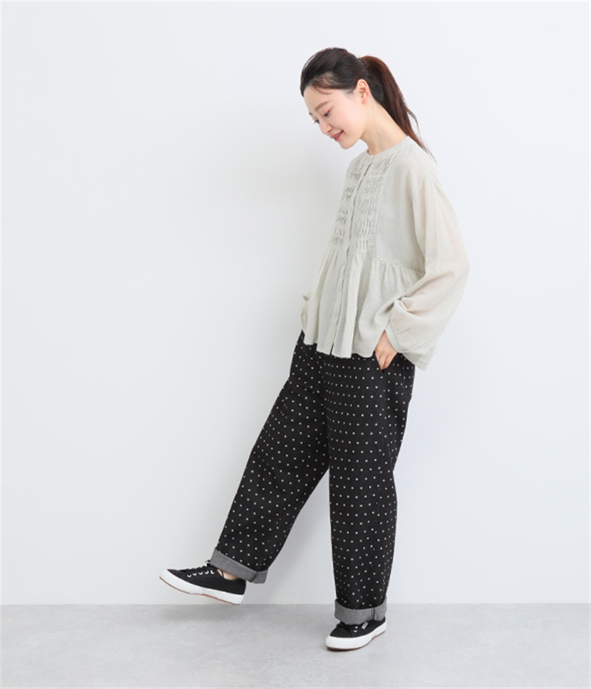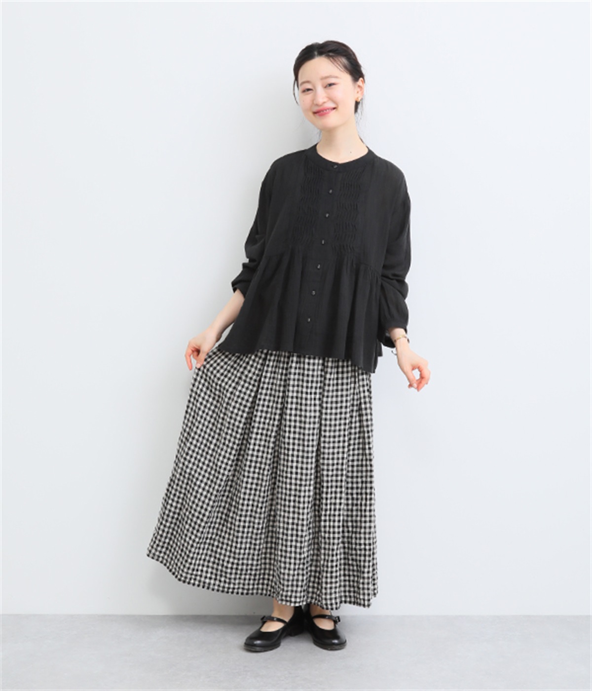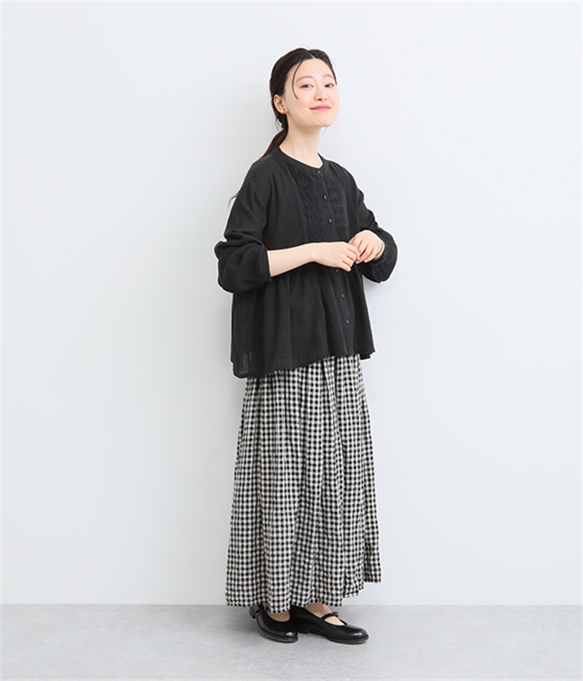腰まわりが目立ちにくく、ゆったりと着こなせるのが◎