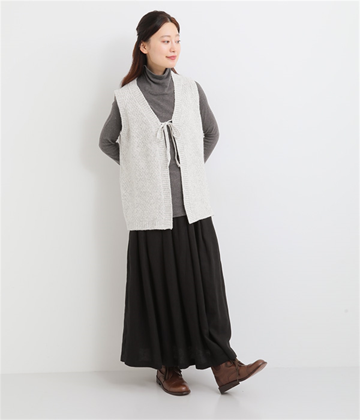カノコ編みですっきりとしたスタイリングに