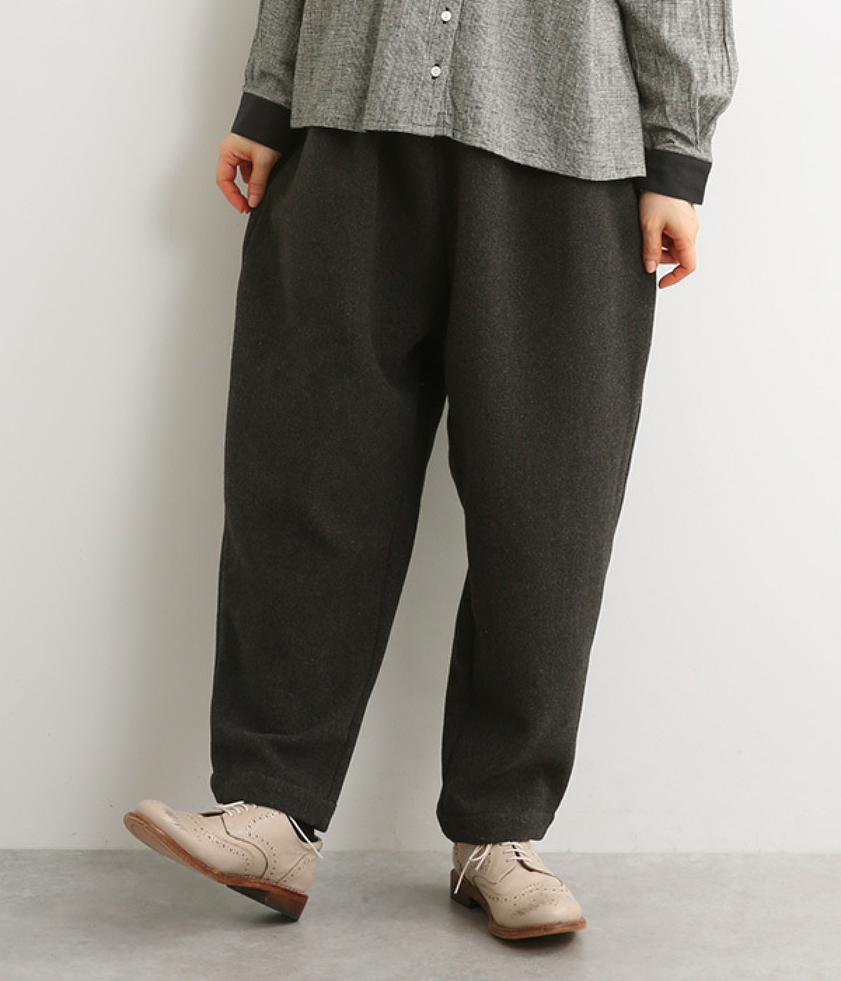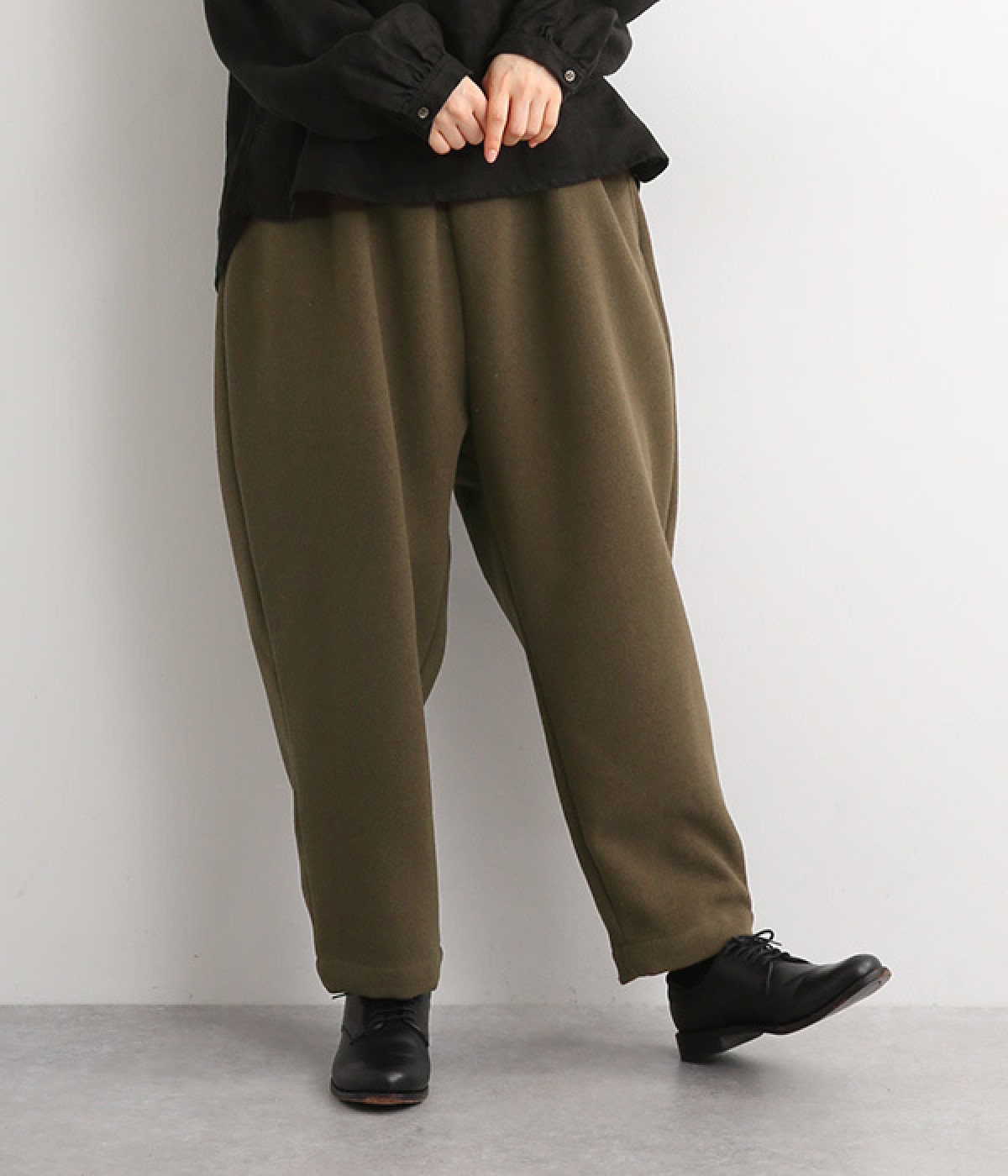 落ち感の出るシルエットが、リラクシーながらも上品な雰囲気に