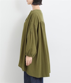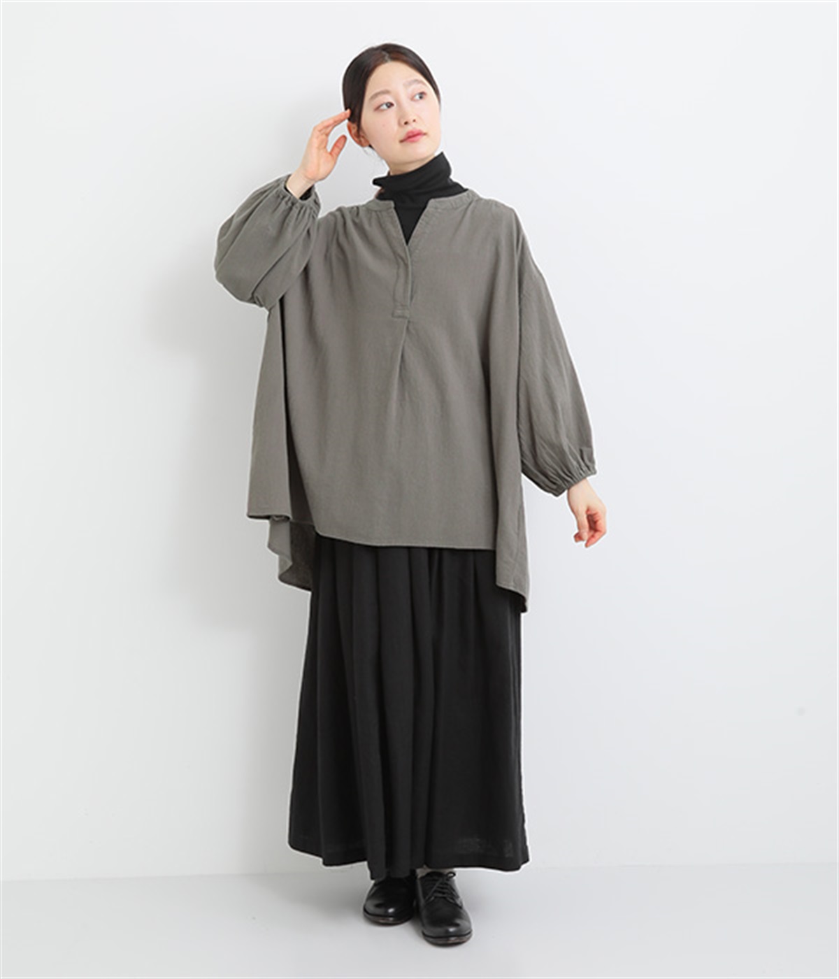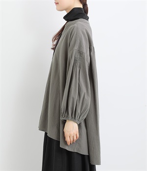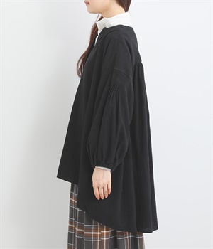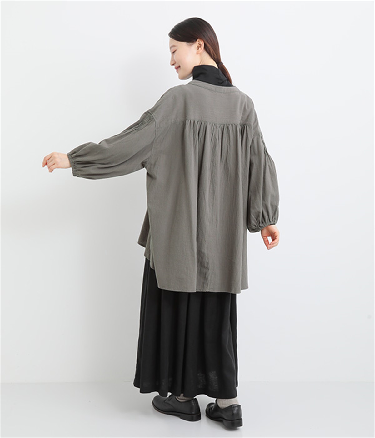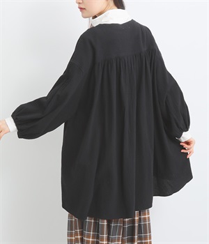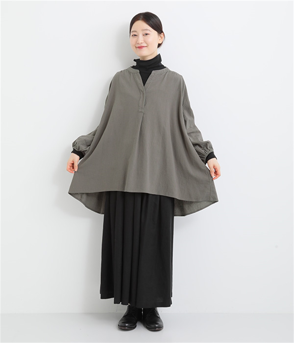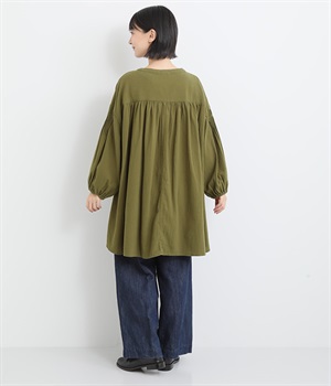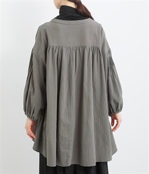 ゆとりのあるシルエットは、後ろギャザーでよりふんわりボリューミーに