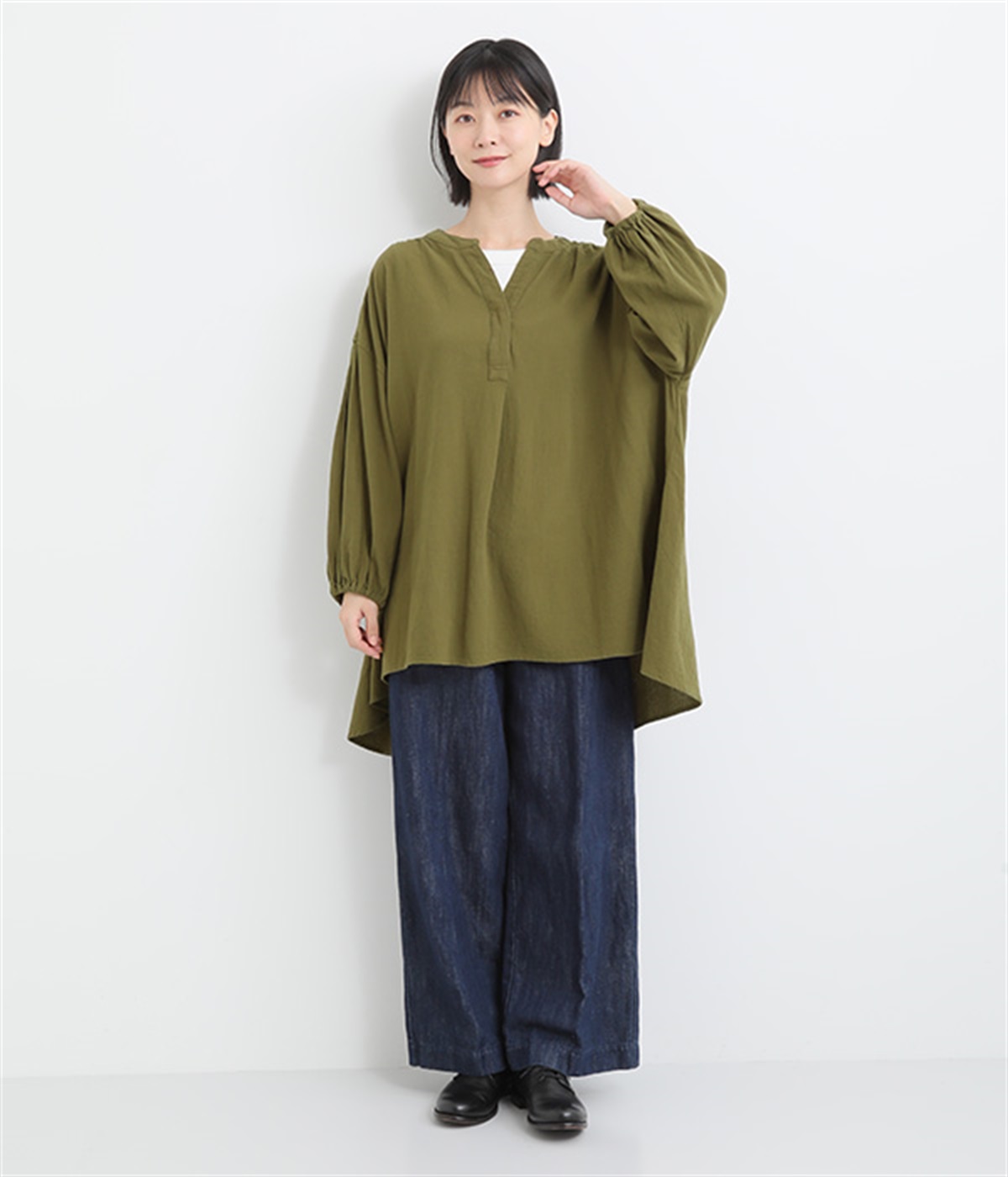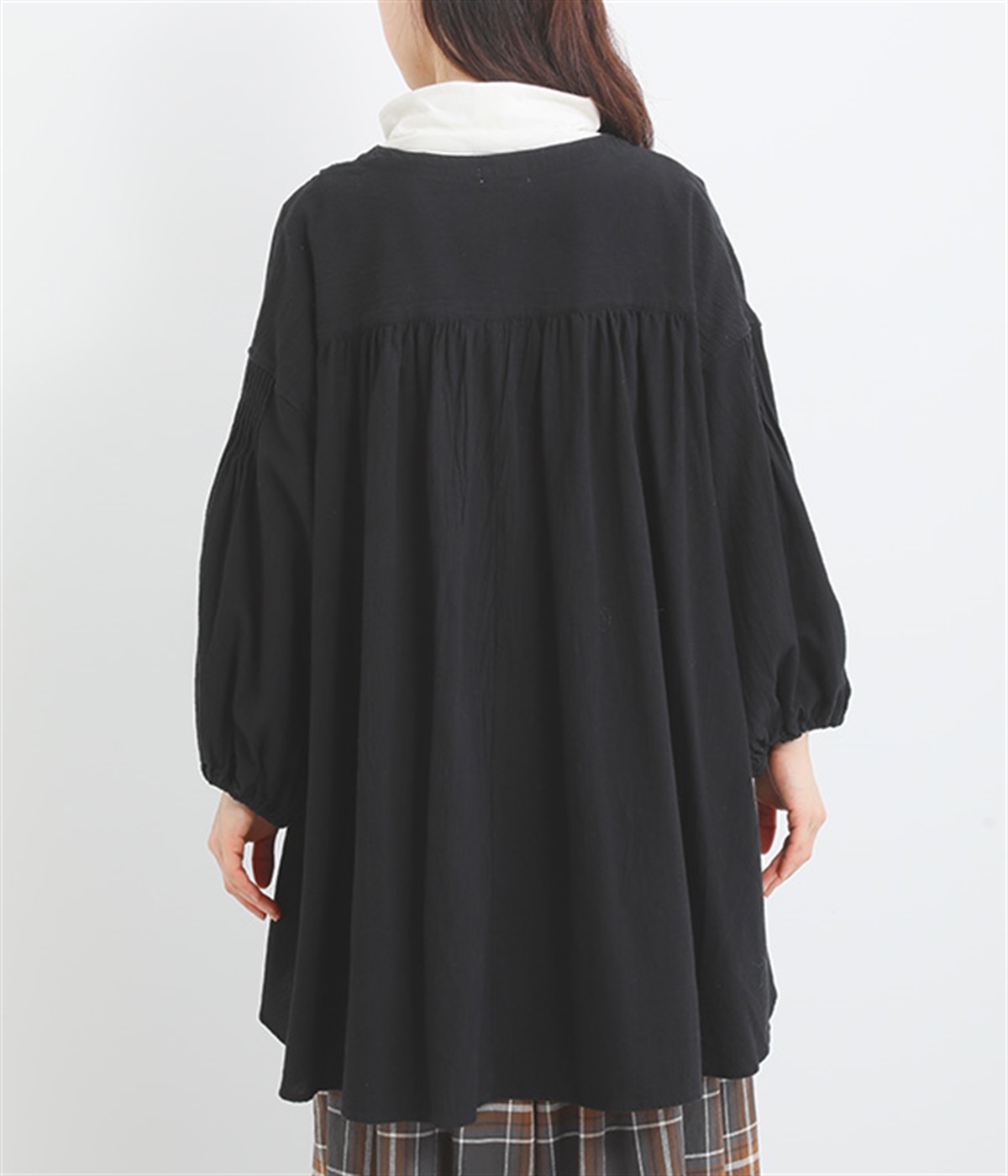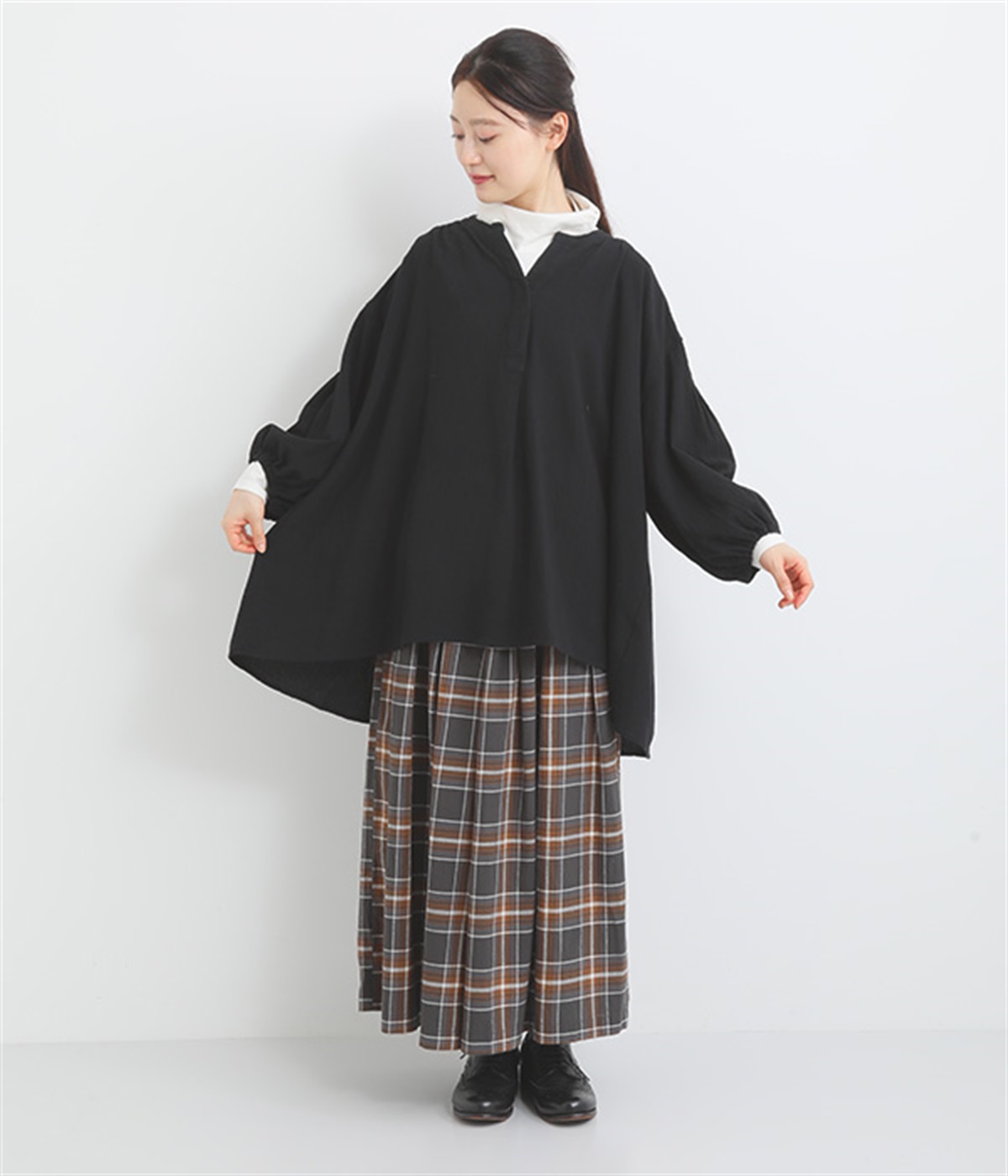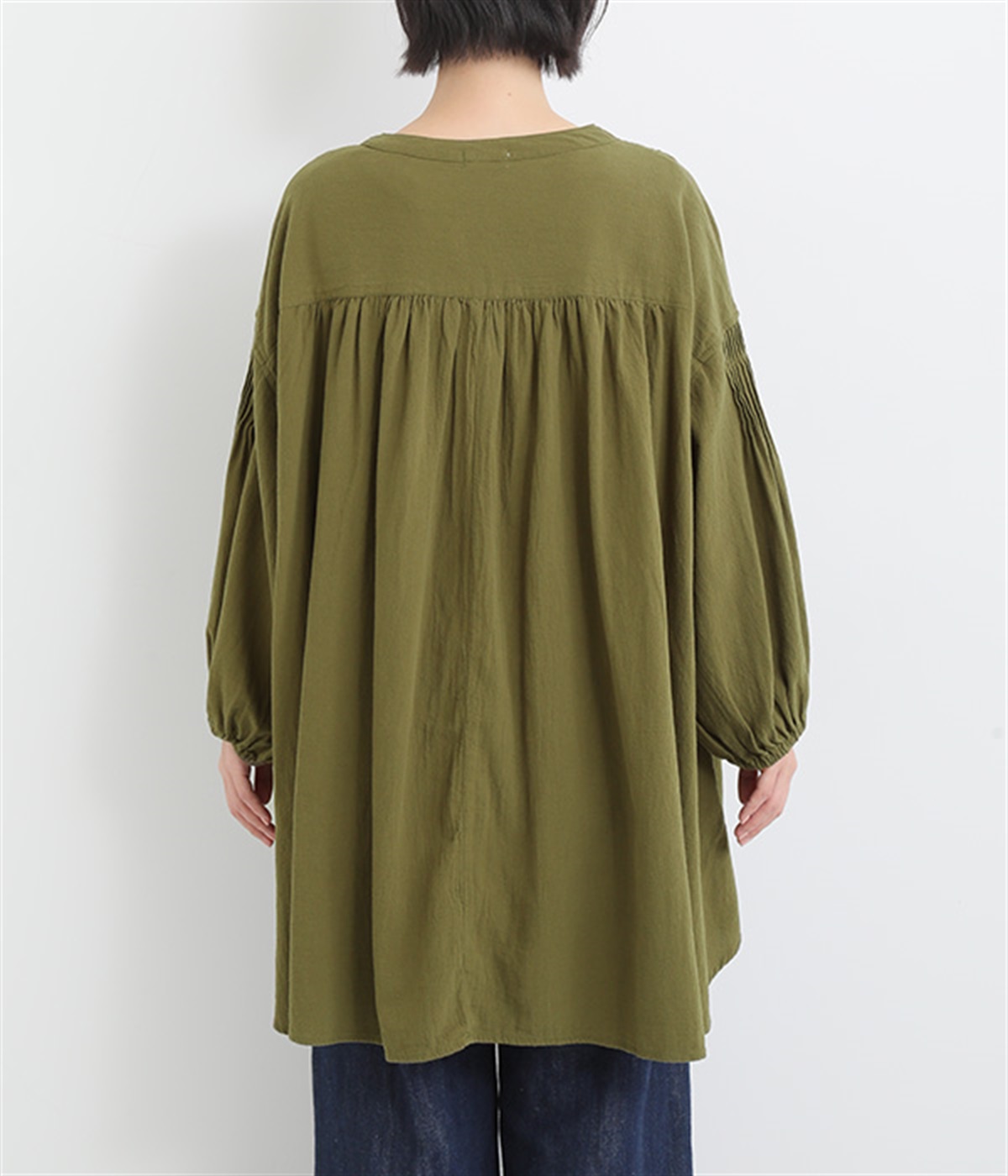 ゆとりのあるシルエットは、後ろギャザーでよりふんわりボリューミーに