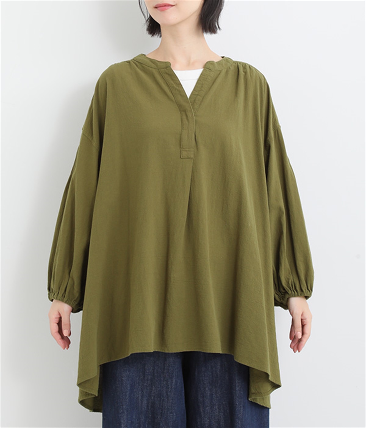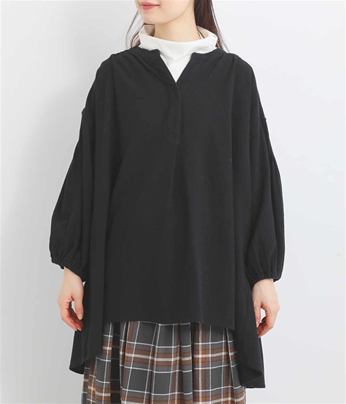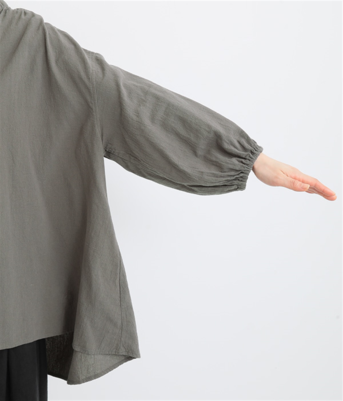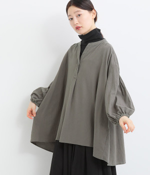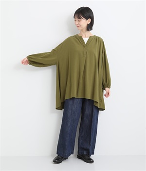 ゆとりのあるシルエットは、後ろギャザーでよりふんわりボリューミーに