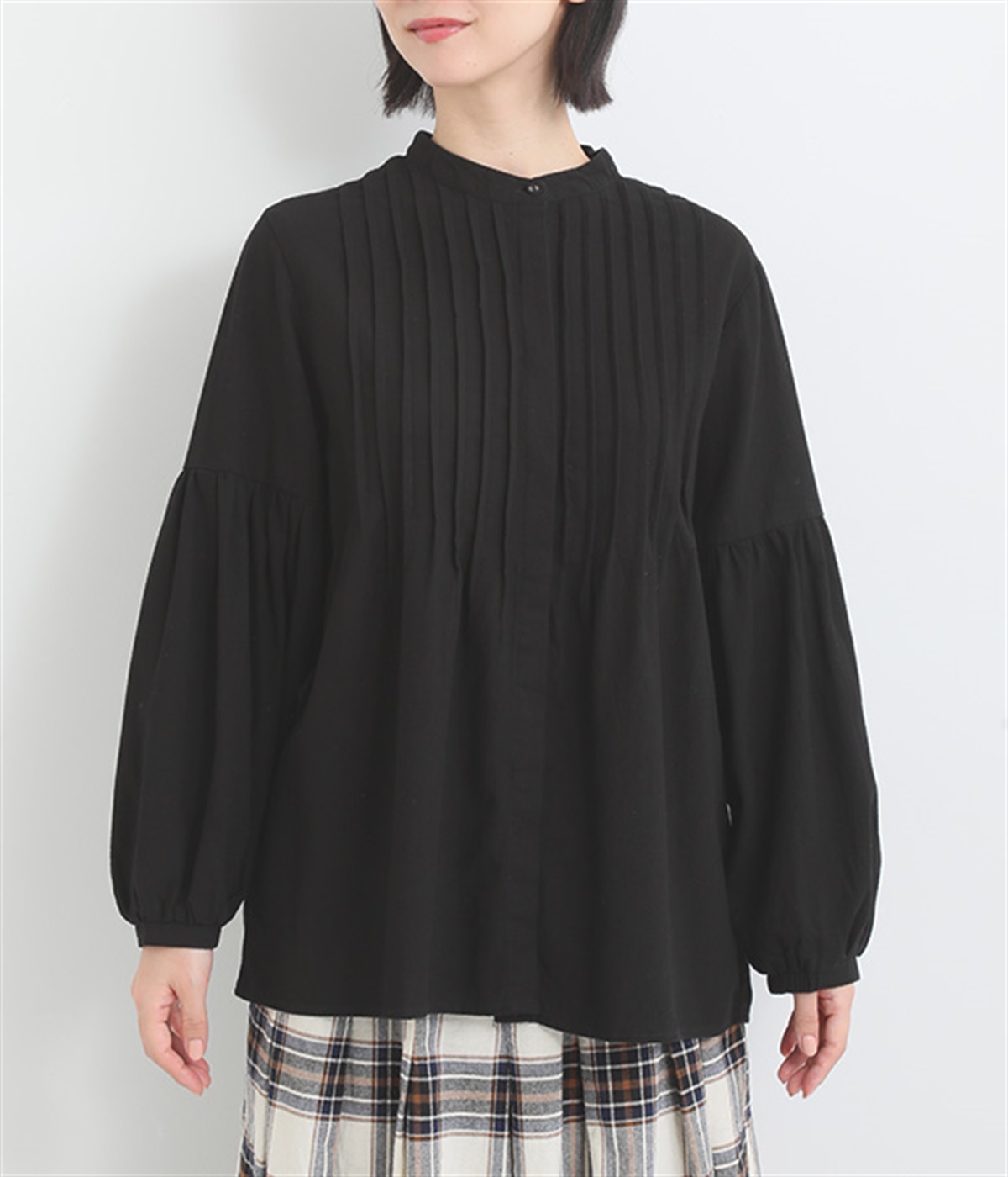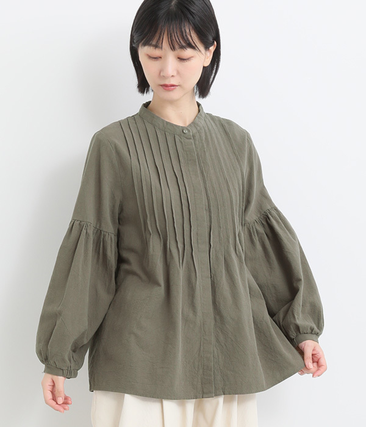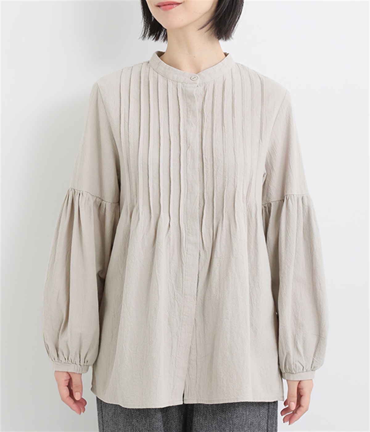 コンパクトな顔まわりを演出するバンドカラー