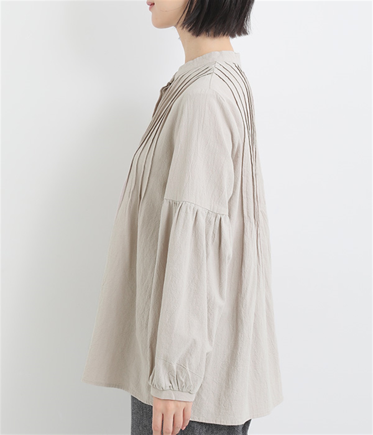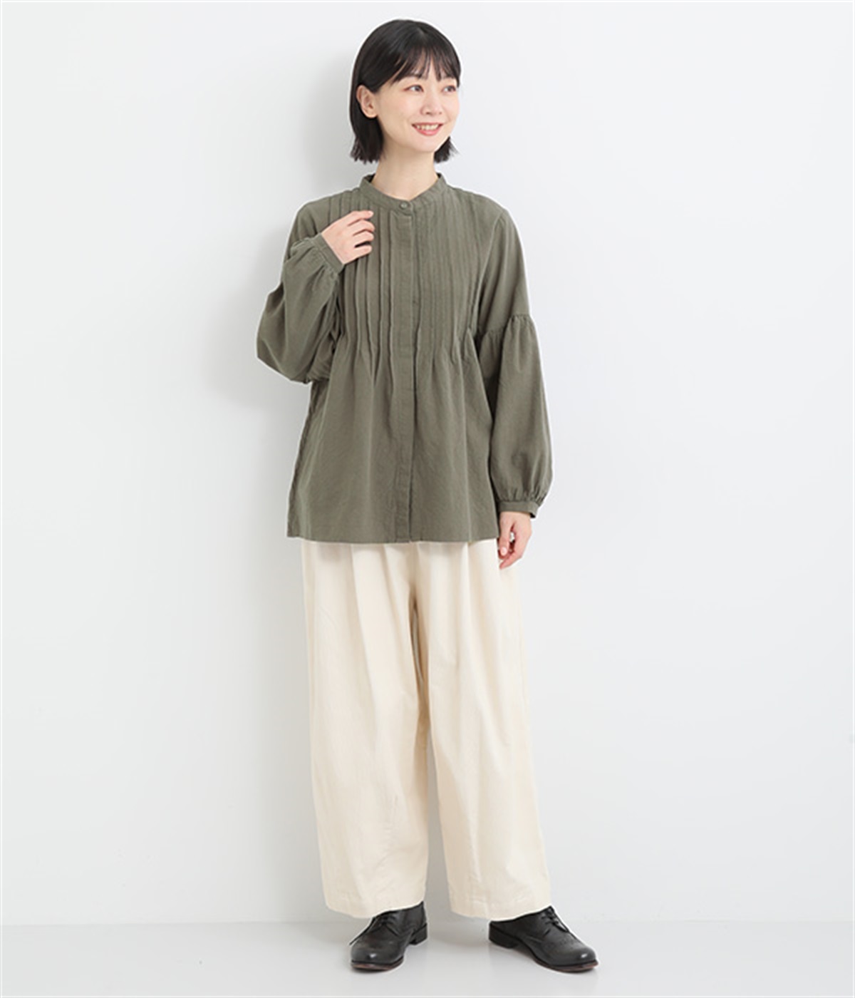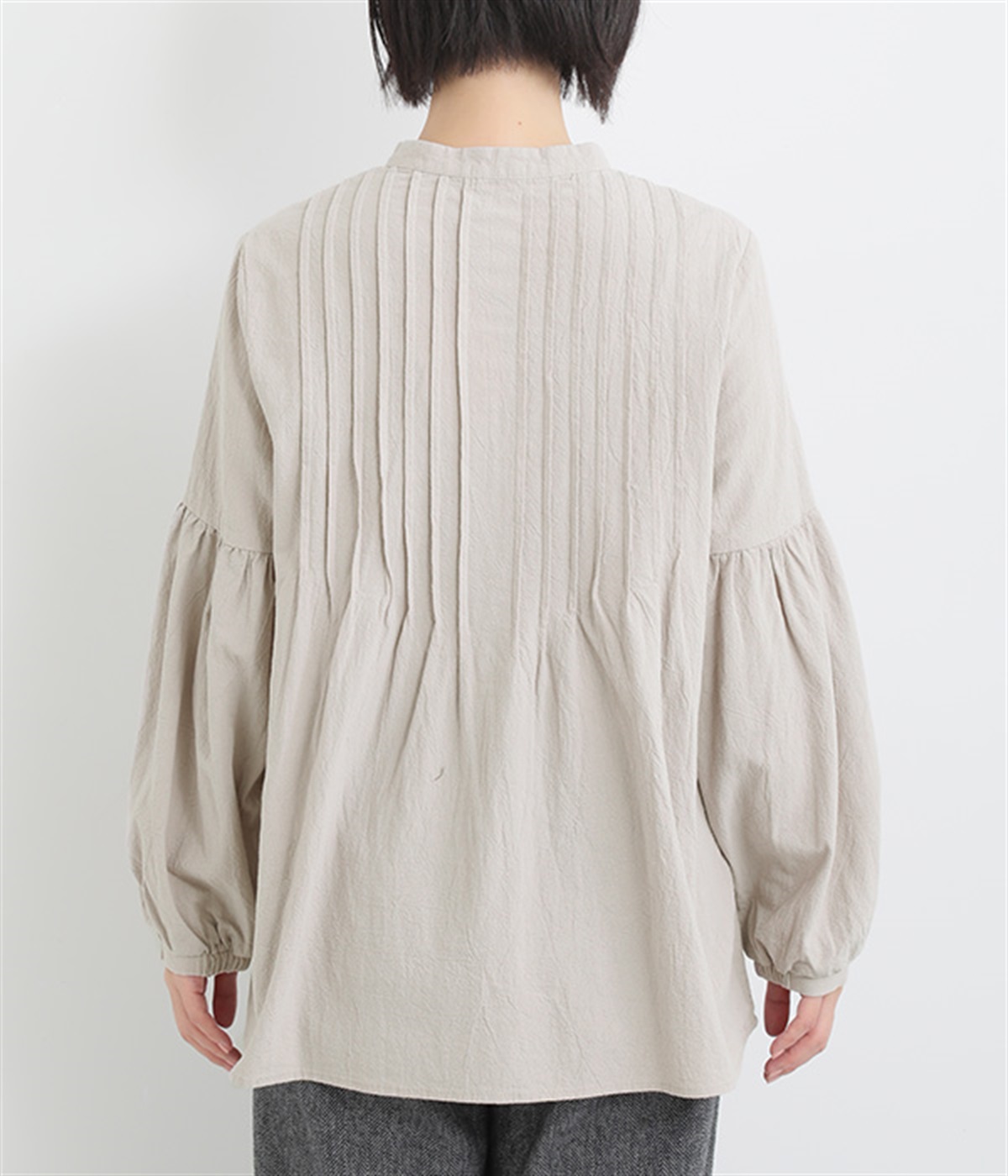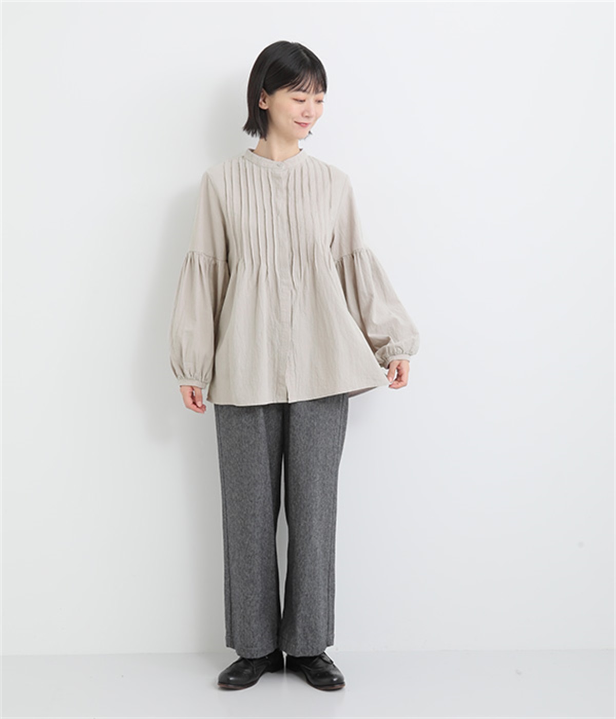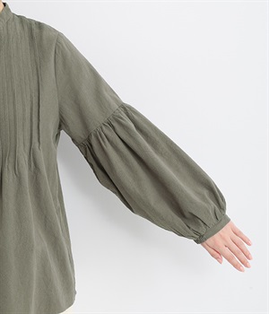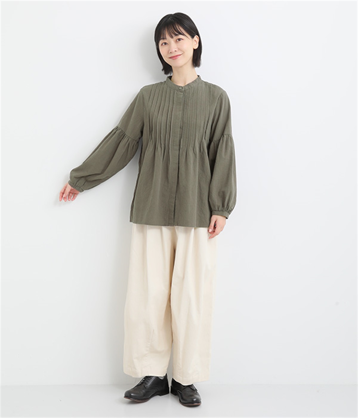 大胆なドロップショルダーとふんわりスリーブが好相性