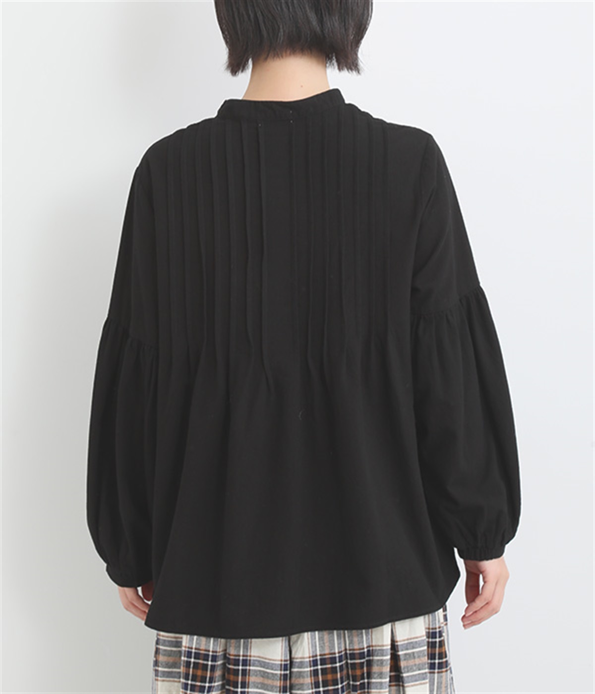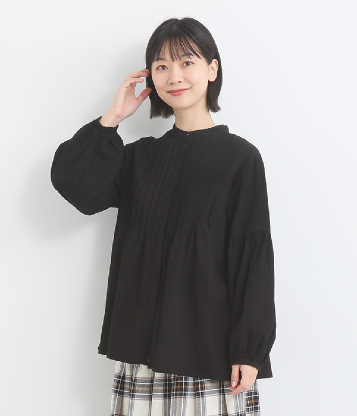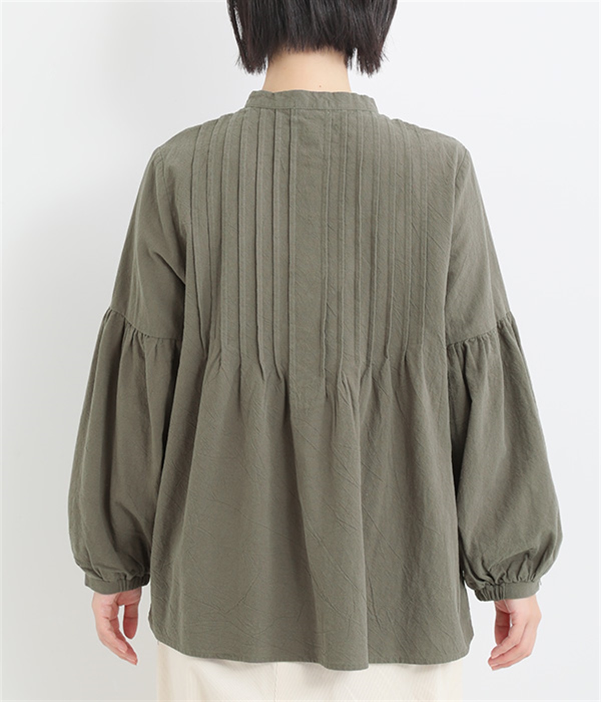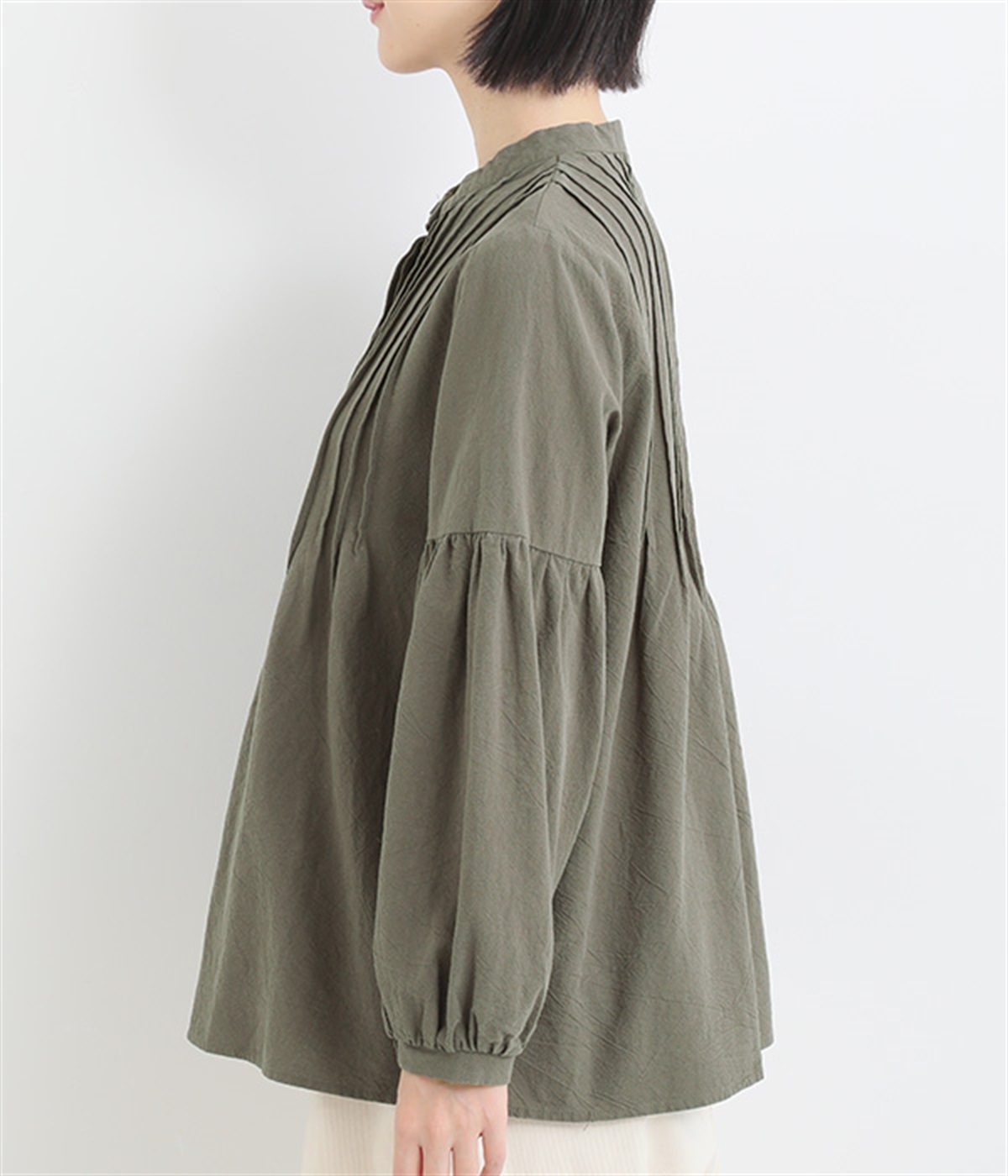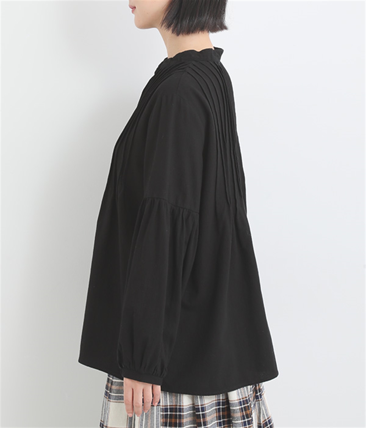 大胆なドロップショルダーとふんわりスリーブが好相性